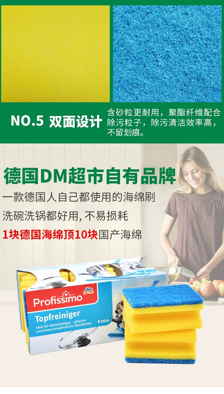 【中欧班列5盒】德国dm抹布现货Profissimo双面洗碗海绵擦百洁布清洁刷6个/盒