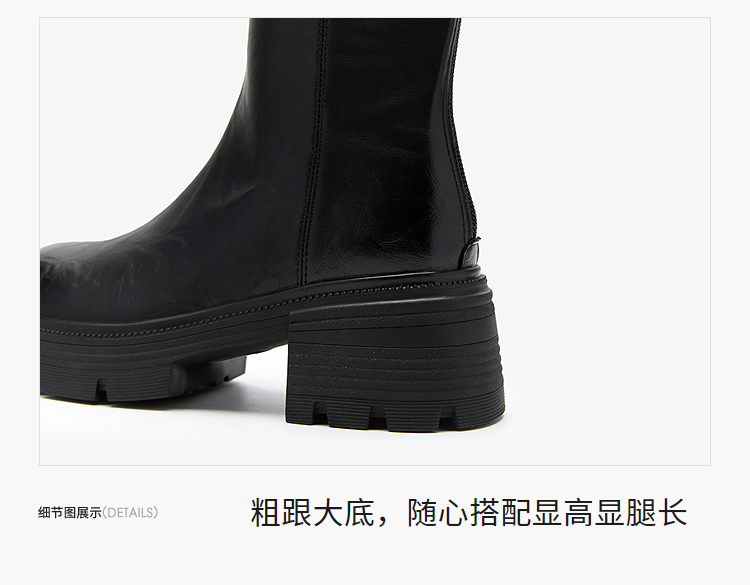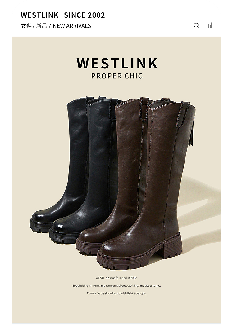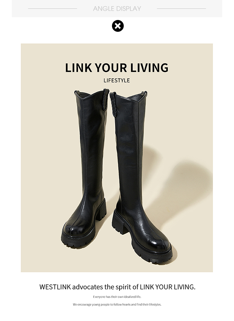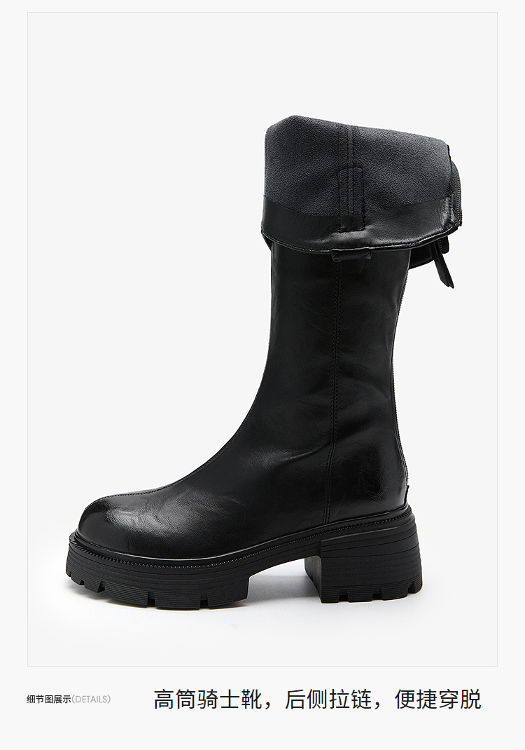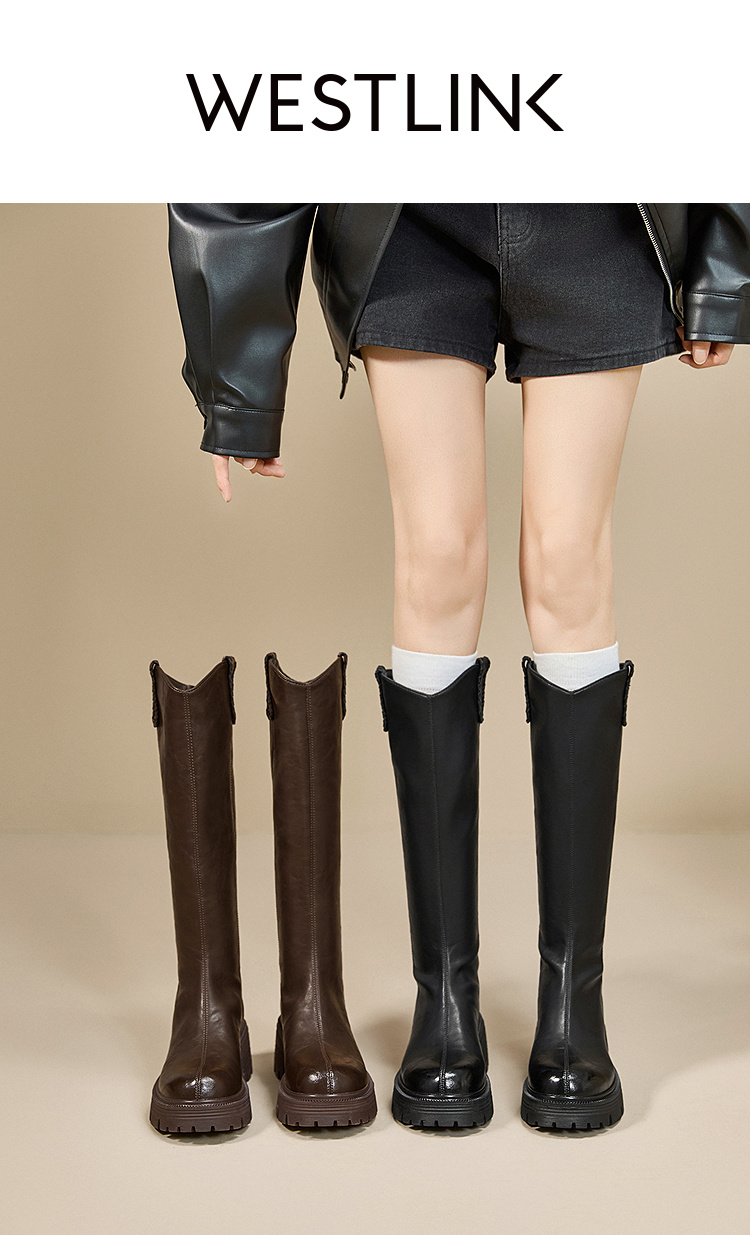 西遇厚底长筒靴女新款秋冬V口百搭圆头瘦瘦靴高筒骑士长靴子V2257271