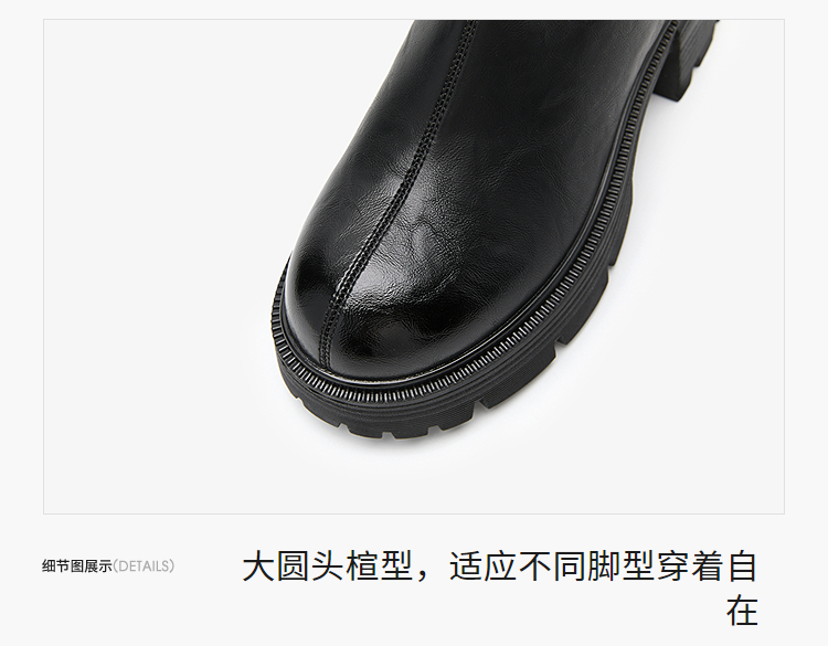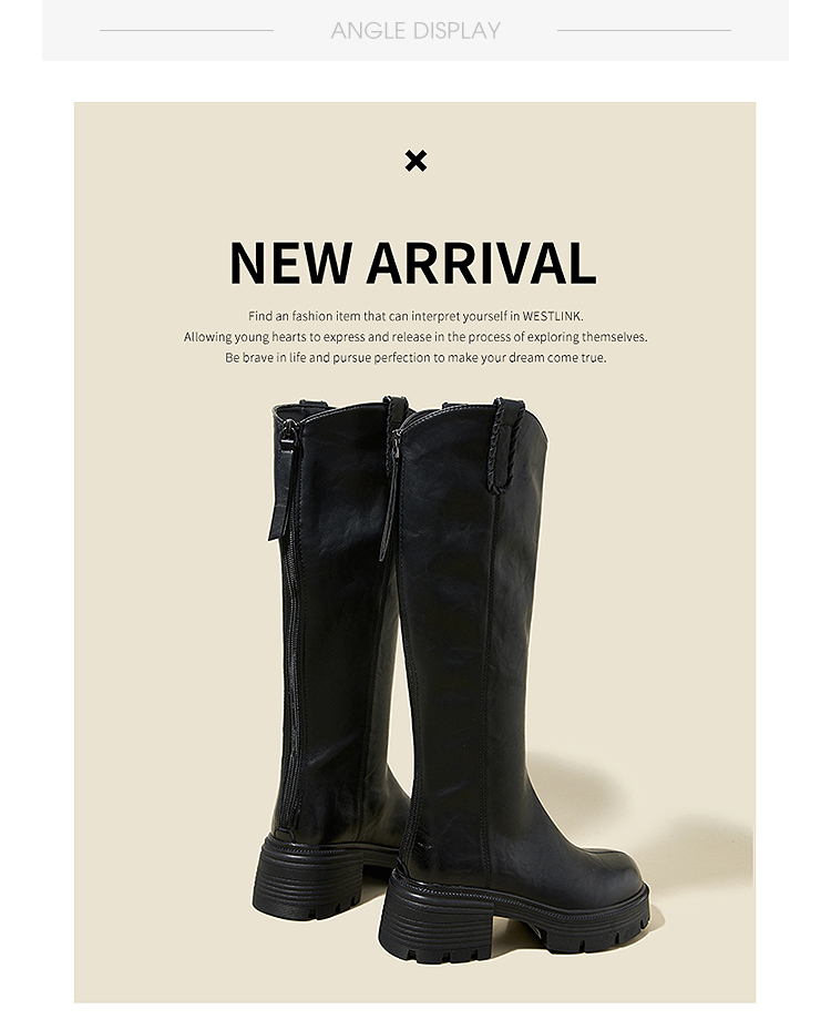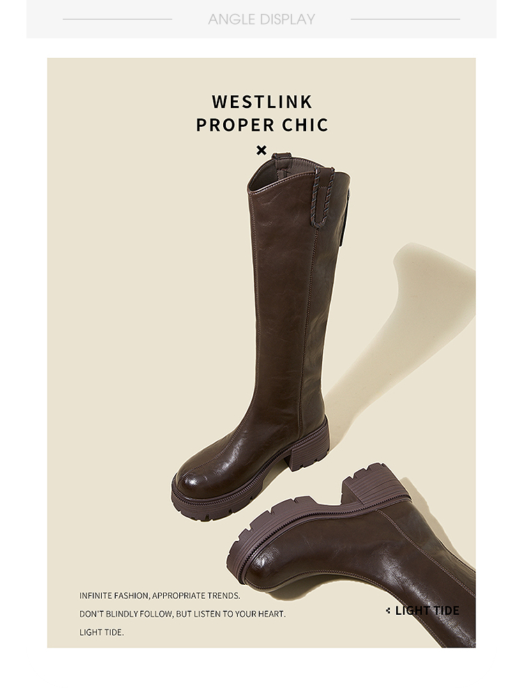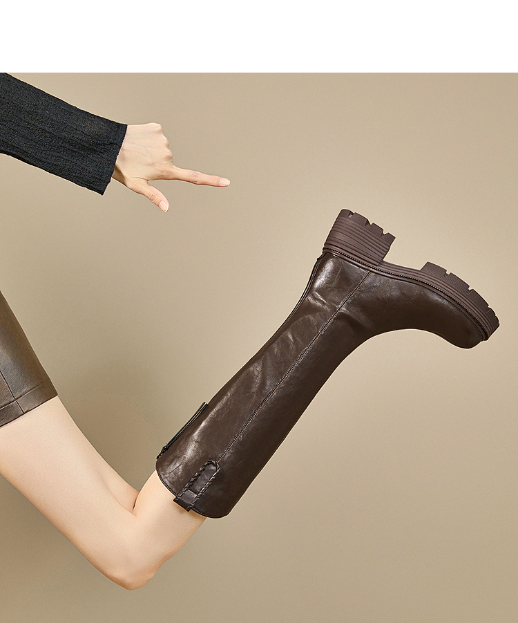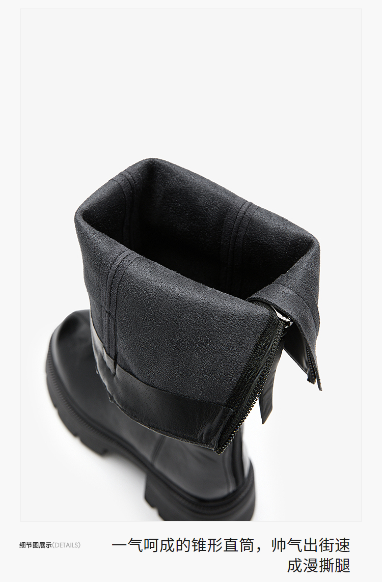 西遇厚底长筒靴女新款秋冬V口百搭圆头瘦瘦靴高筒骑士长靴子V2257271