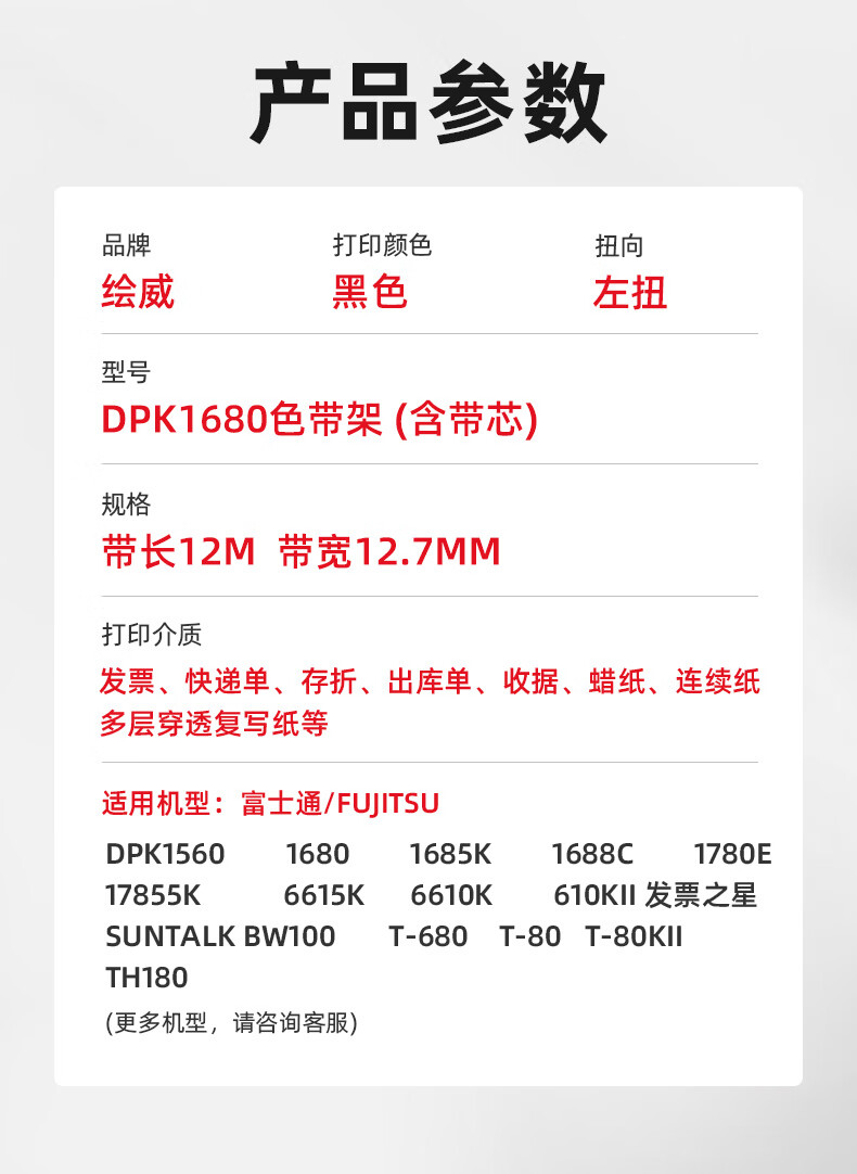 绘威DPK1680色带架适用富士通FUJITSU DPK1560 1685K 1780E 610KII DPK6610K 发票之星 针式打印机色带