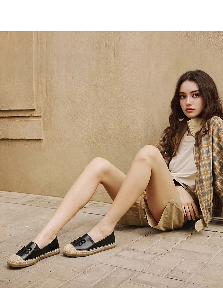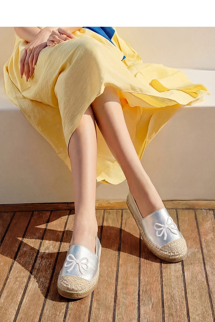 西遇渔夫鞋女2026春季新款一脚蹬蝴蝶结刺绣厚底百搭休闲圆头单鞋V0066330