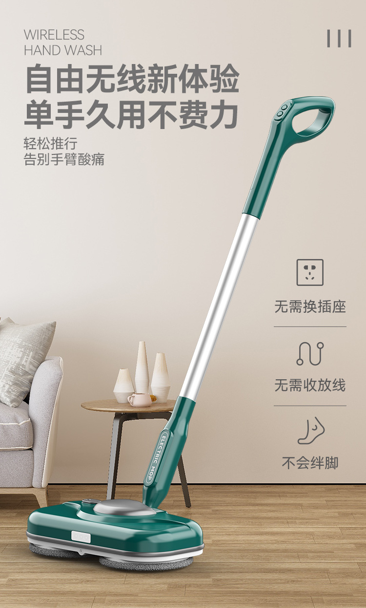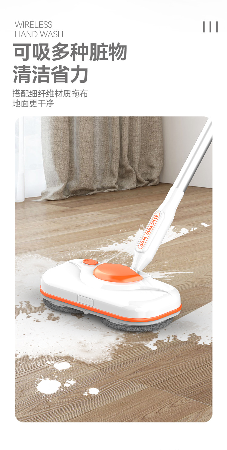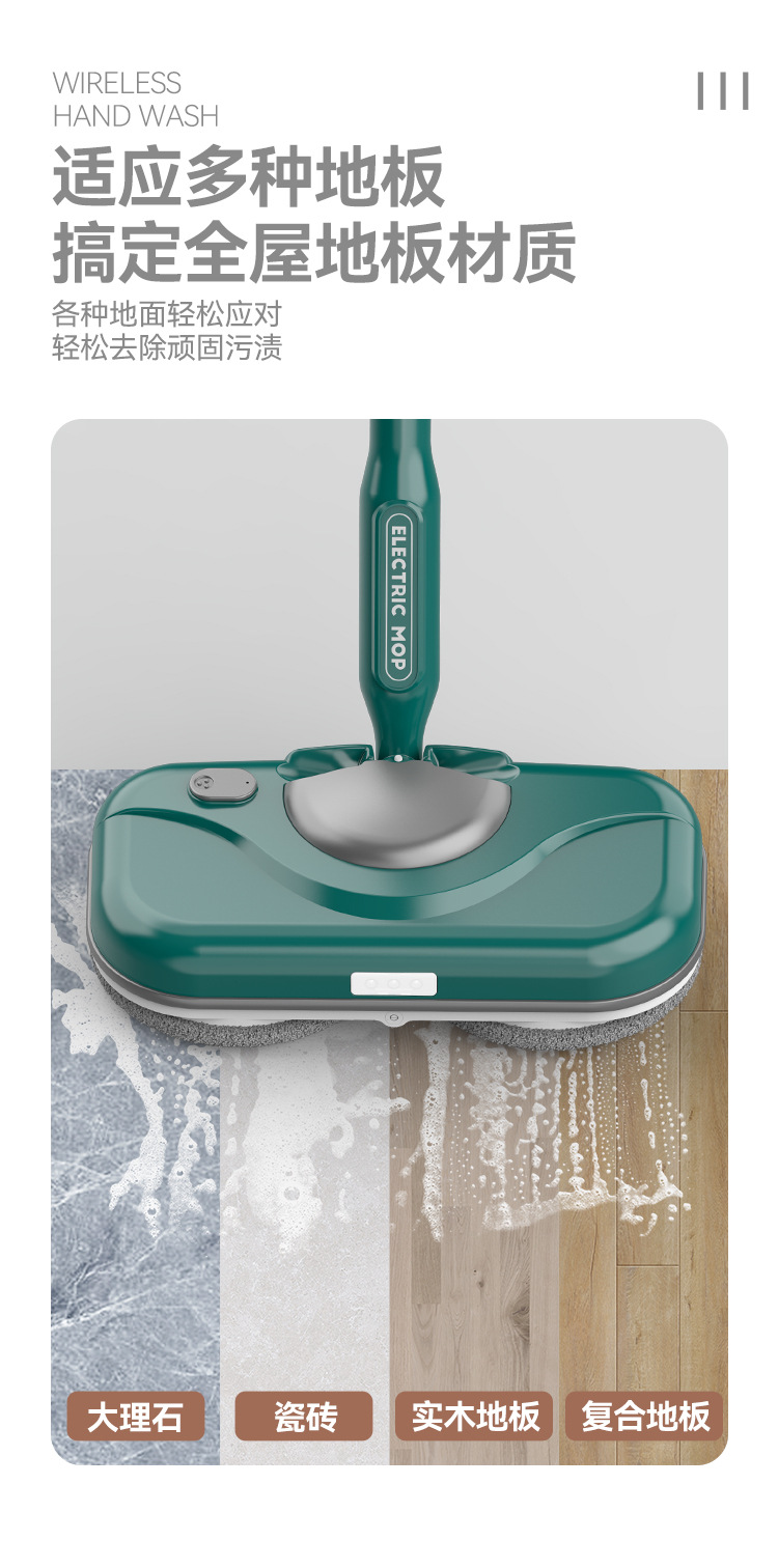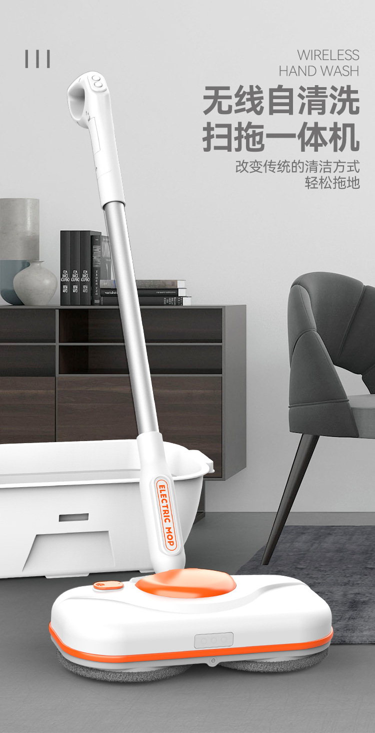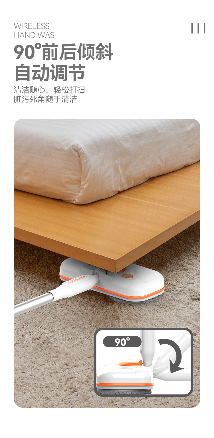 【智能电动无线便捷手持拖把】智能电动拖把,免手洗,干湿两用。水箱750ml,方便大水箱带来便利,自动调节90°。招式轻灵,生活便利。前后倾斜,懒人专属利器!