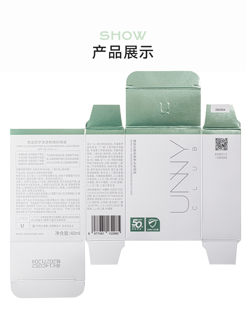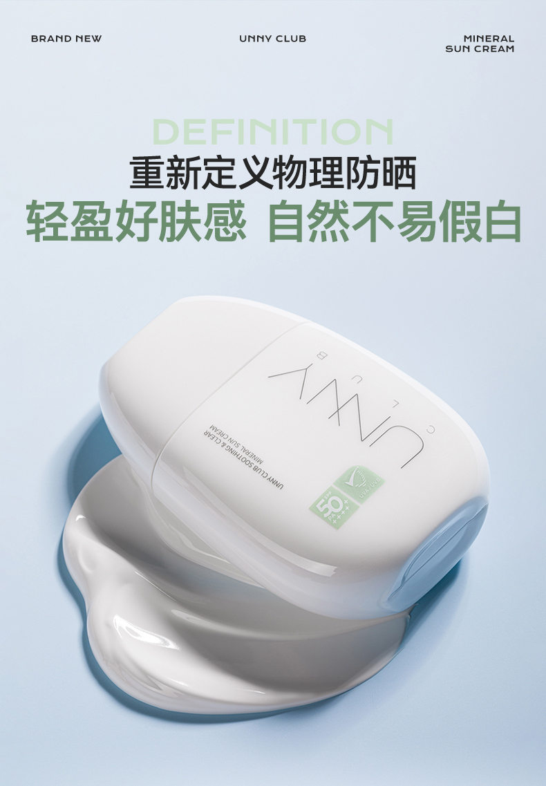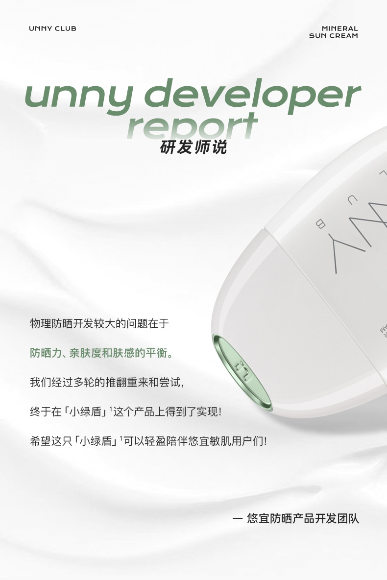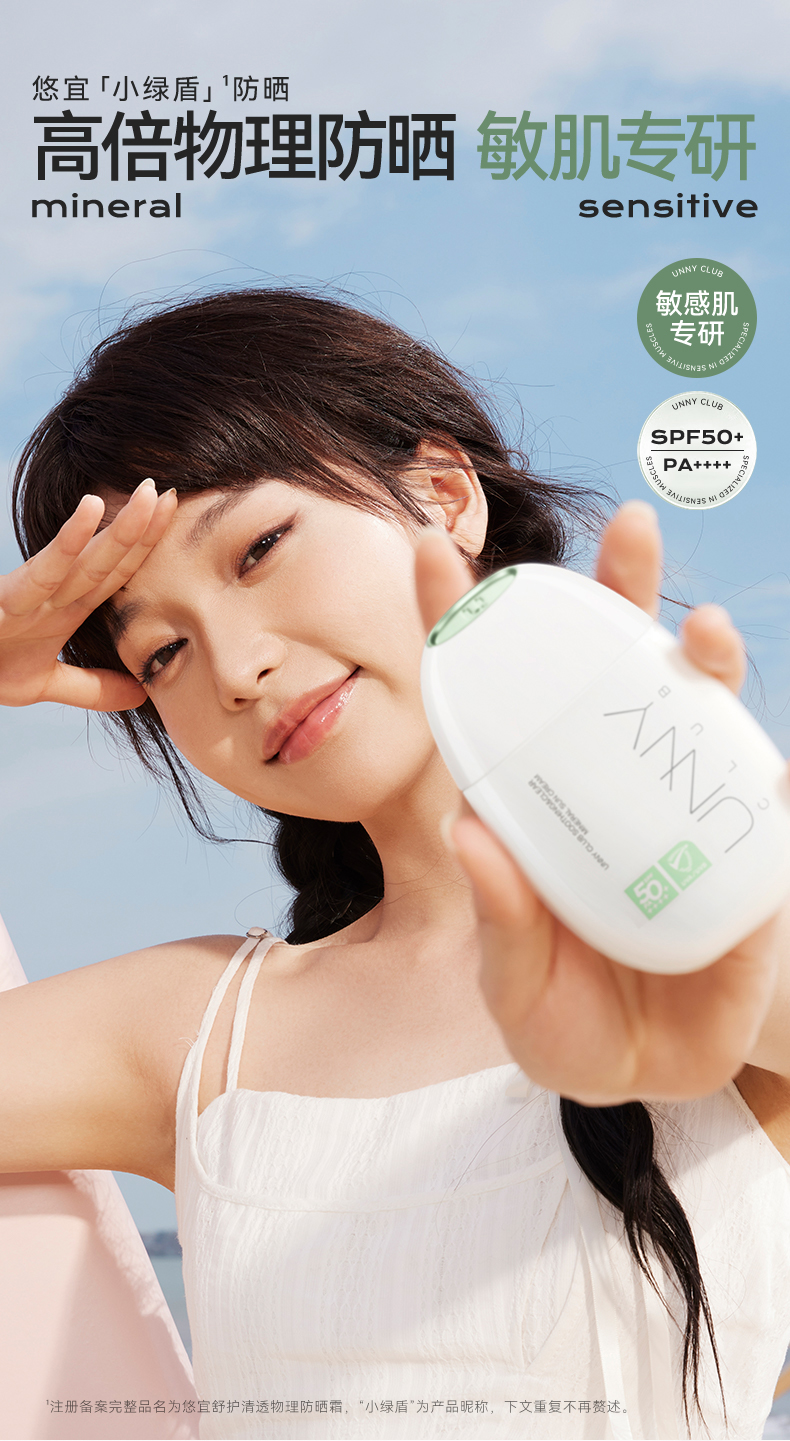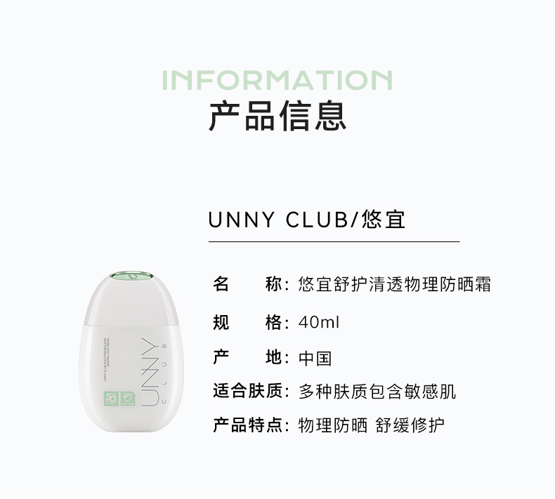 “老爸评测认可 ”UNNY 舒护清透物理防晒霜 敏肌专用(小绿盾)40ml/瓶