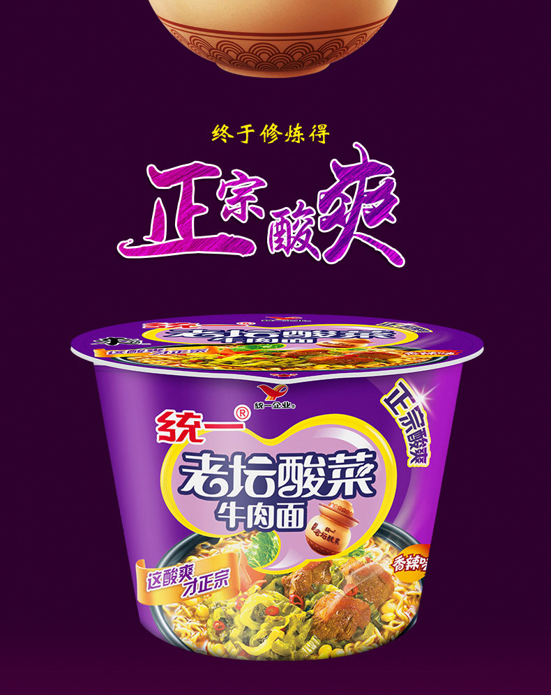 统一桶装方便面老坛酸菜牛肉面120g*12桶