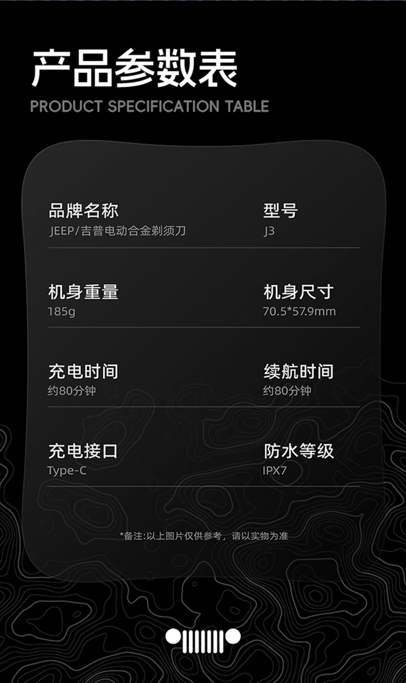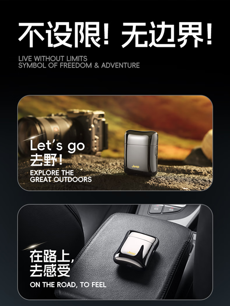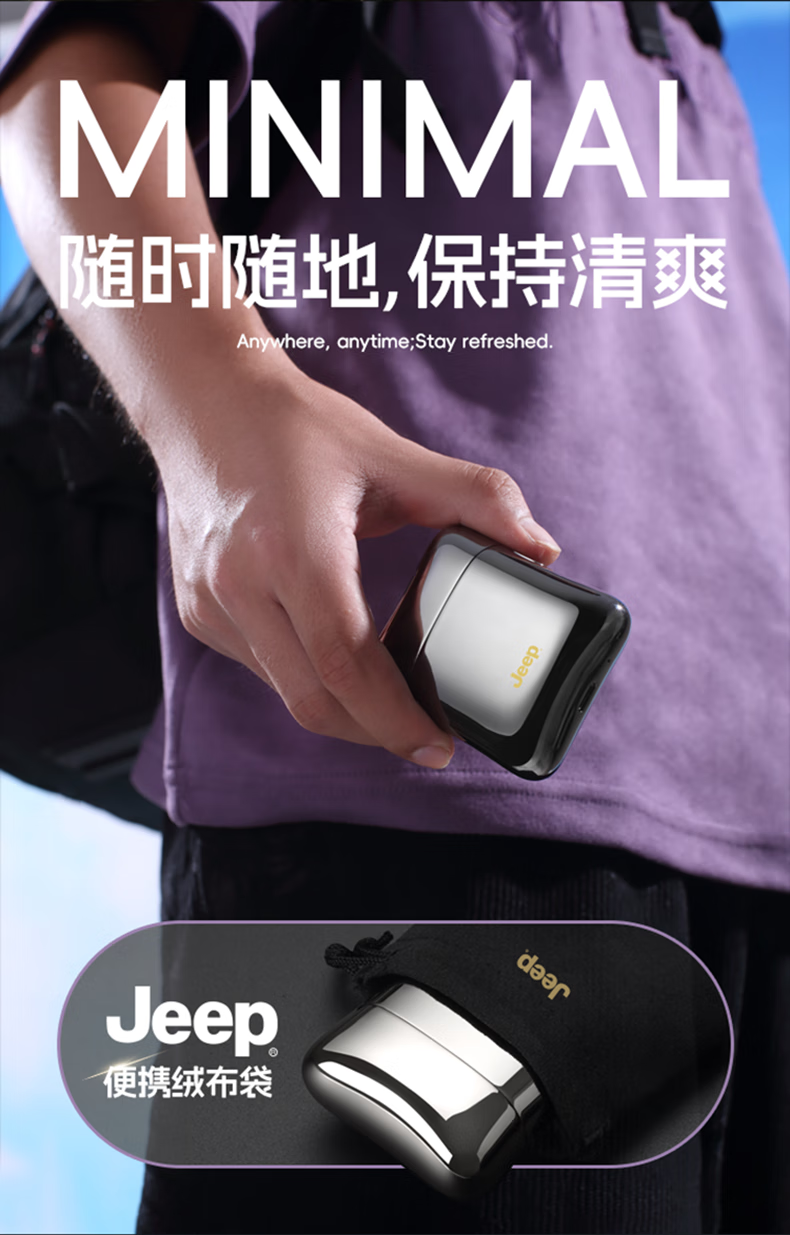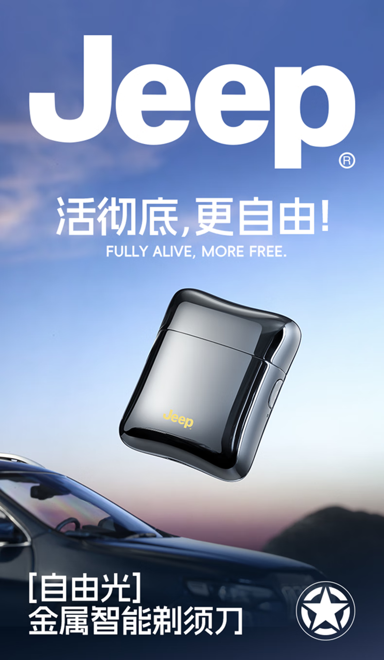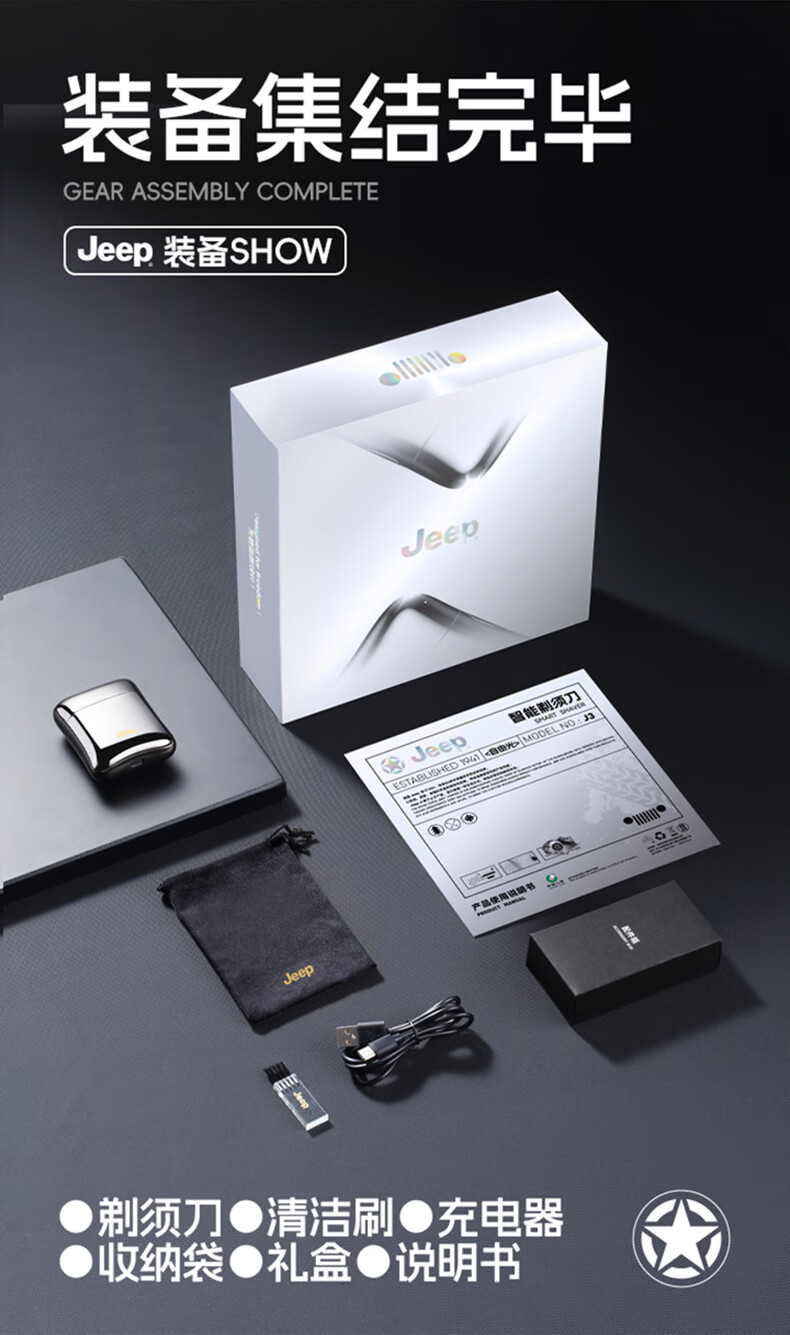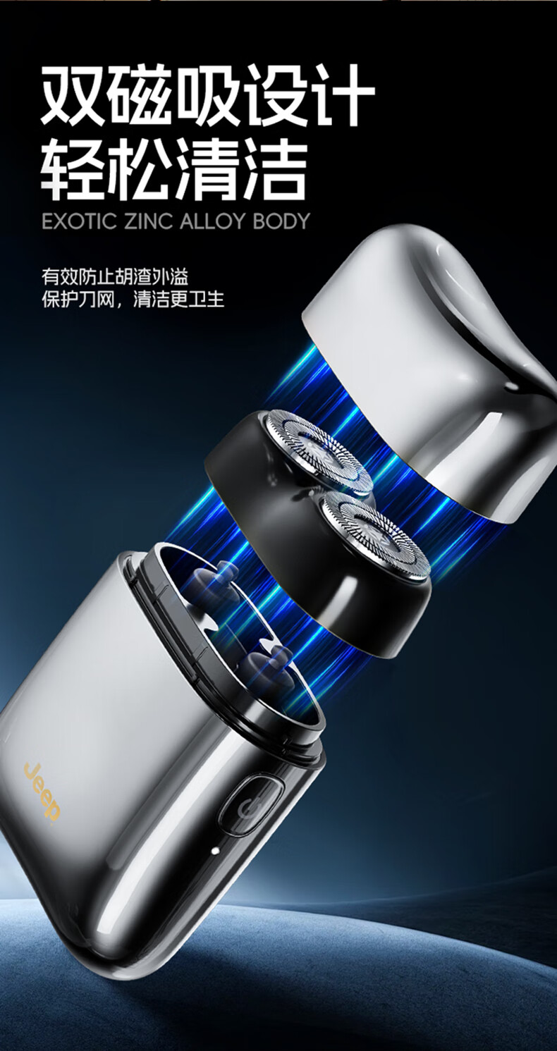 JEEP美国进口自由光电动剃须刀合金便携款 男士迷你旋转式刮胡刀全身水洗长续航
