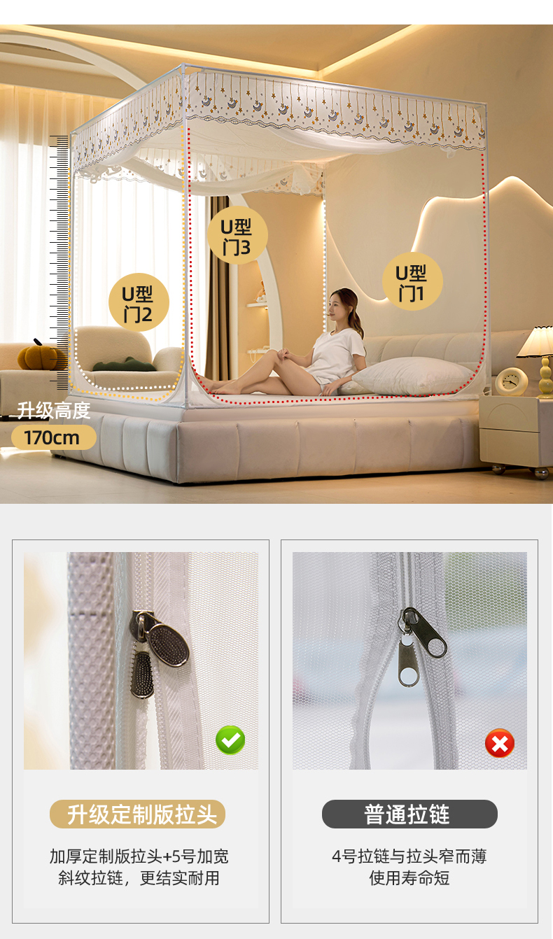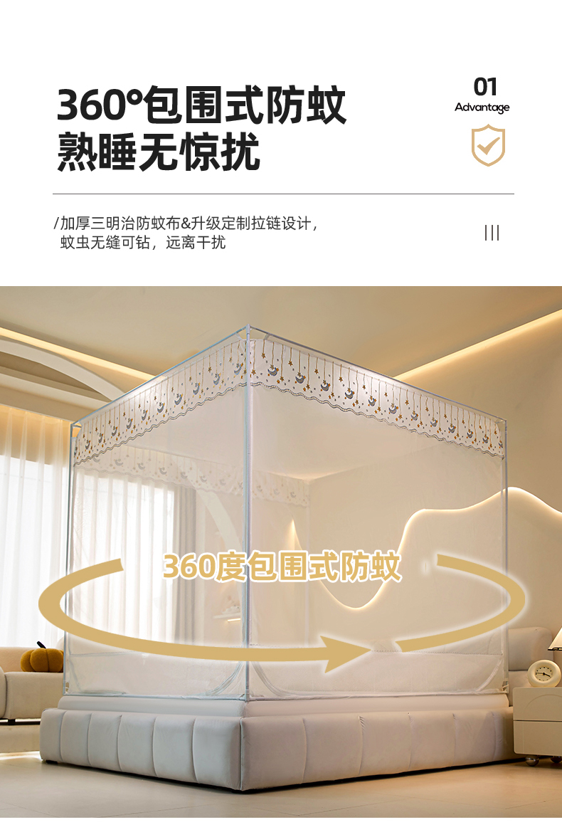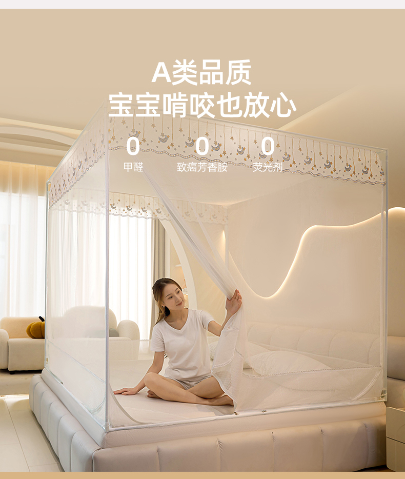 自然醒母婴级床帘蚊帐家用卧室遮光防摔一体式高级坐床2301HH