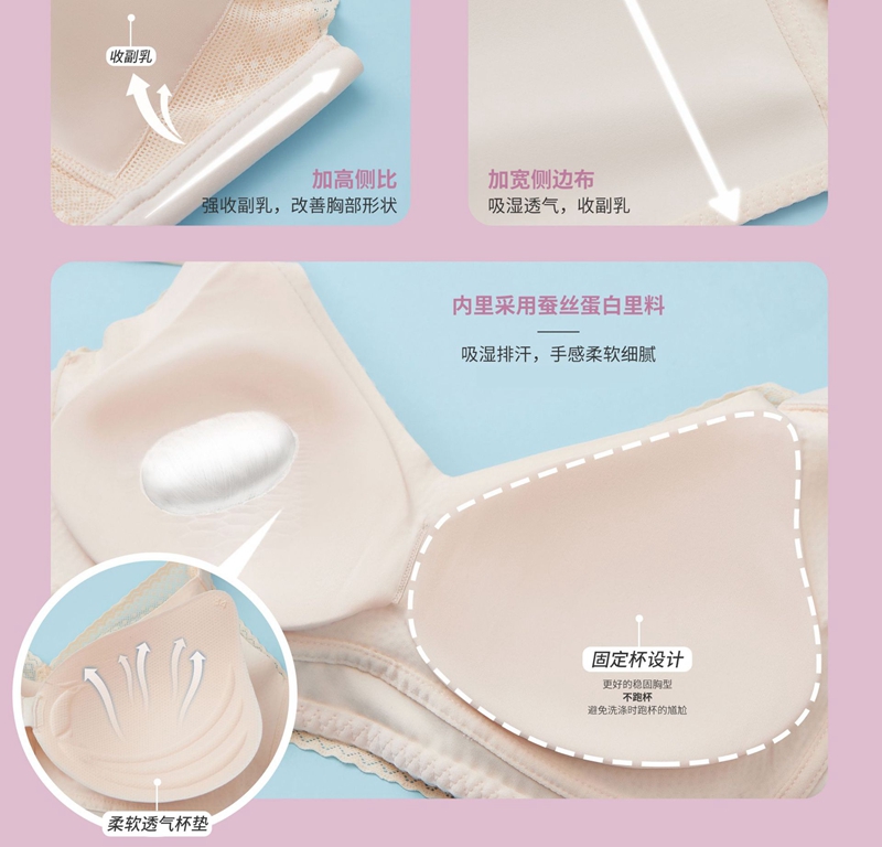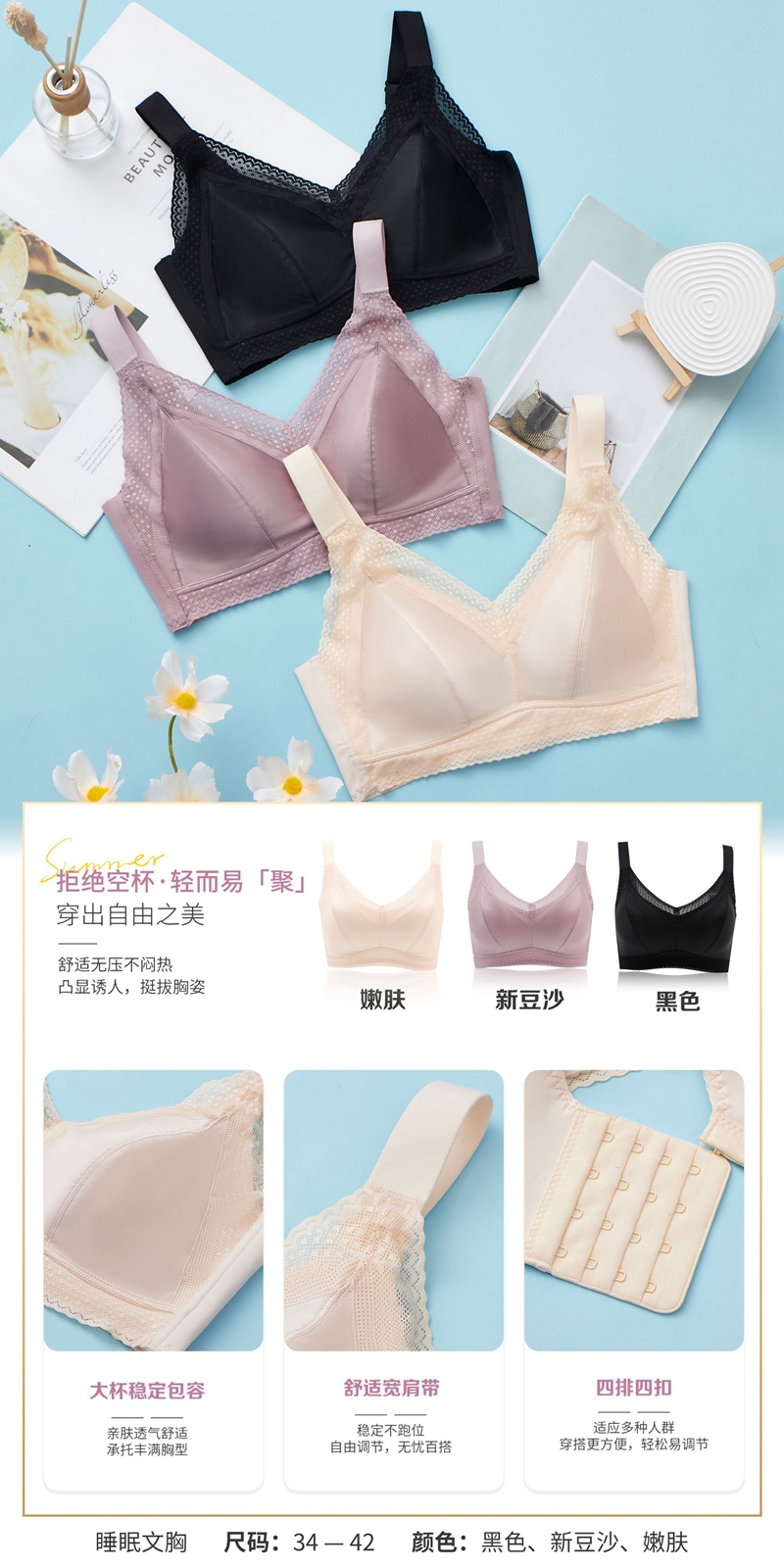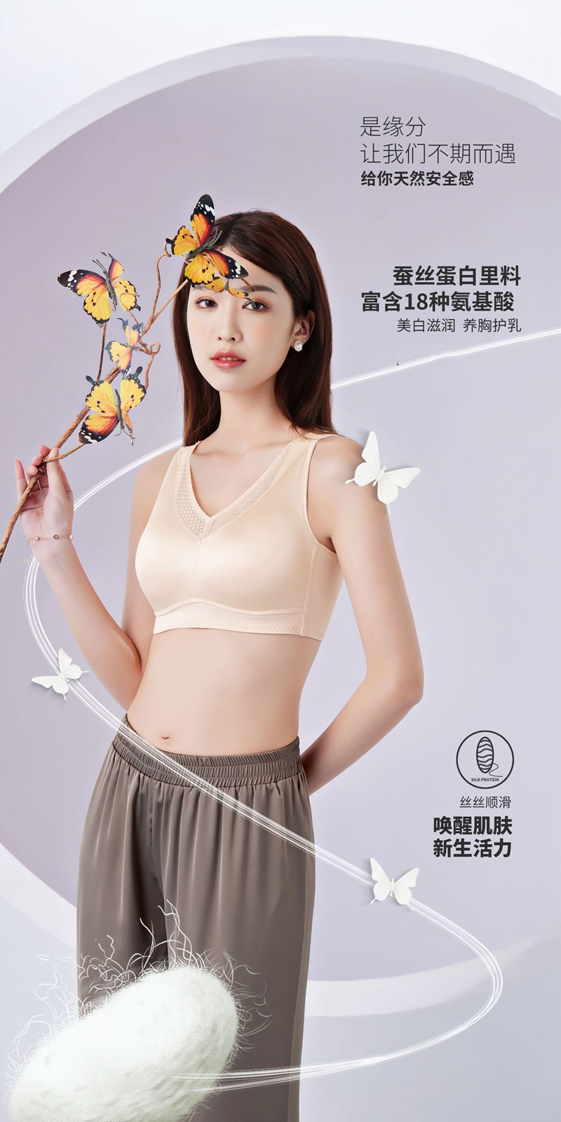 吊带/背心款天然蚕丝蛋白绸丝聚拢上托养护美背睡眠文胸
