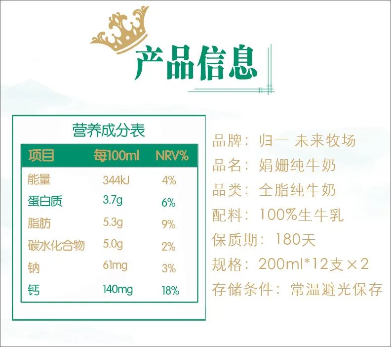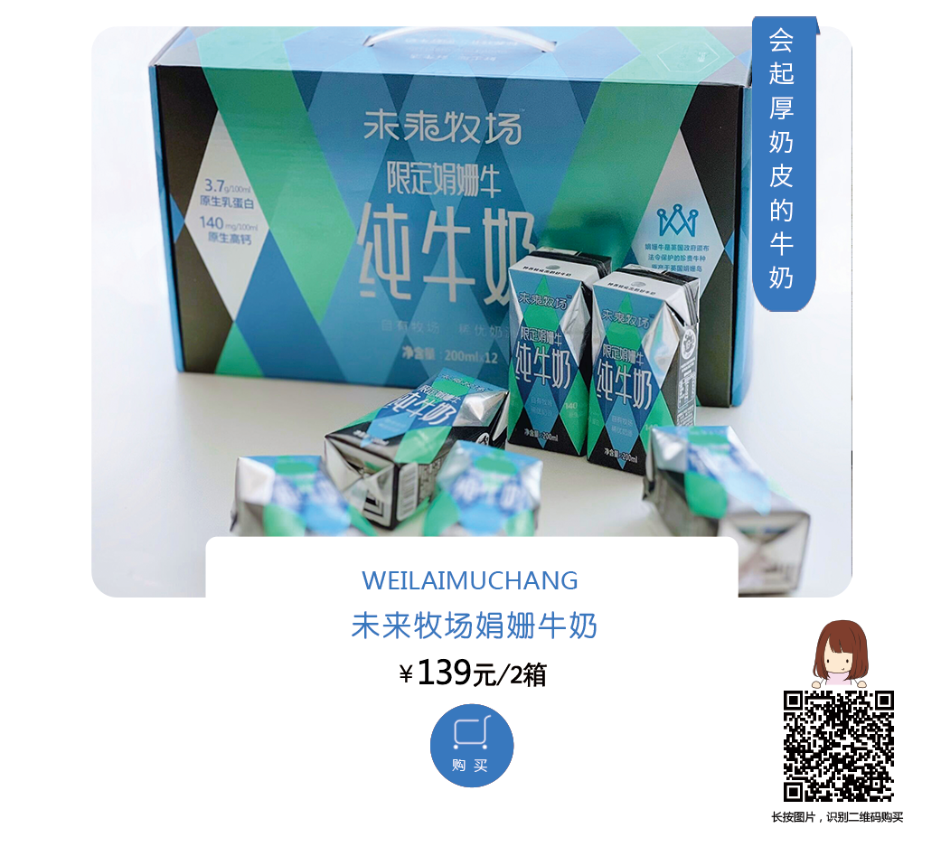 现在就感兴趣的妞,可以直接【长按下图,识别图中二维码】(进入页面后,文末的“避坑指南”,所有槽点都有进行罗列,务必看完再决定哈)除了上面提到的,它的总体情况和规格、保质期等细节,后面再一 一给你们说下。妞们到手就是这样包装的未来牧场娟姗牛奶,是12盒(200ML/盒)每箱的,都是一次一盒的小包装。我个人喜欢给孩子打开一次喝完这种容量规格的,不用担心新鲜度问题。考虑牛奶是家里的快消品,芊芊基本一个月2箱多的量,所以这次咱们是2箱起囤。保质期是6个月,我最近一次买的,生产日期是2023年4月生产的(批次给大家一个参考,以实物日期为准哈)。这个娟姗奶芊芊喝了半年多,我当时选主要看中这款奶的营养成分更优秀,尤其原生钙含量我目前没遇到比它更高的,口感也比普通奶出众,奶香足的同时,做到了没有明显奶腥味。但价格不是很贵,和普通奶相比略微贵一点点,但在同品类娟姗奶里面这款性价比更高。现在就感兴趣的妞,可以直接【长按下图,识别图中二维码】(进入页面后,文末的“避坑指南”,所有槽点都有进行罗列,务必看完再决定哈)