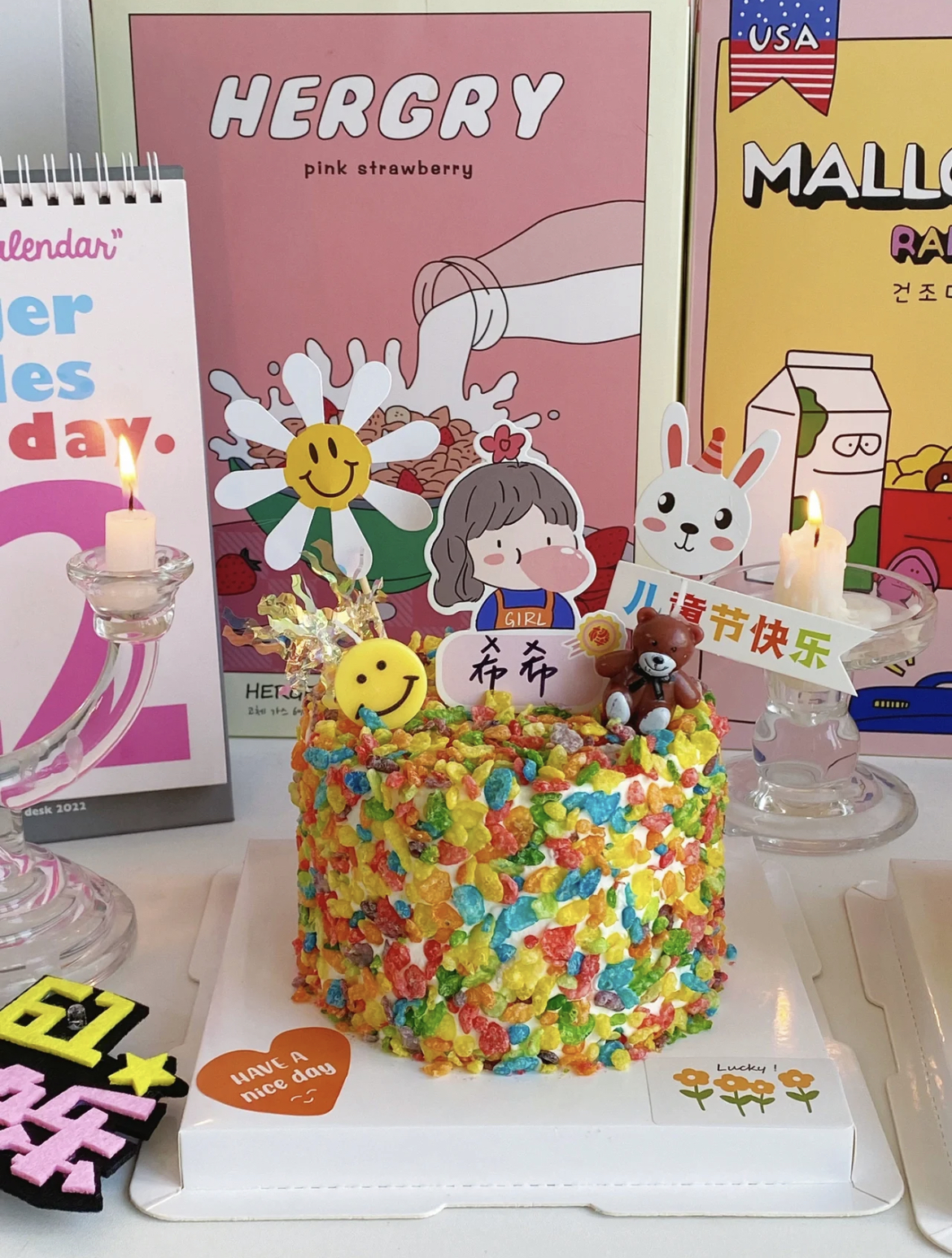 儿童五彩缤纷彩虹麦片男孩女孩周岁蛋糕