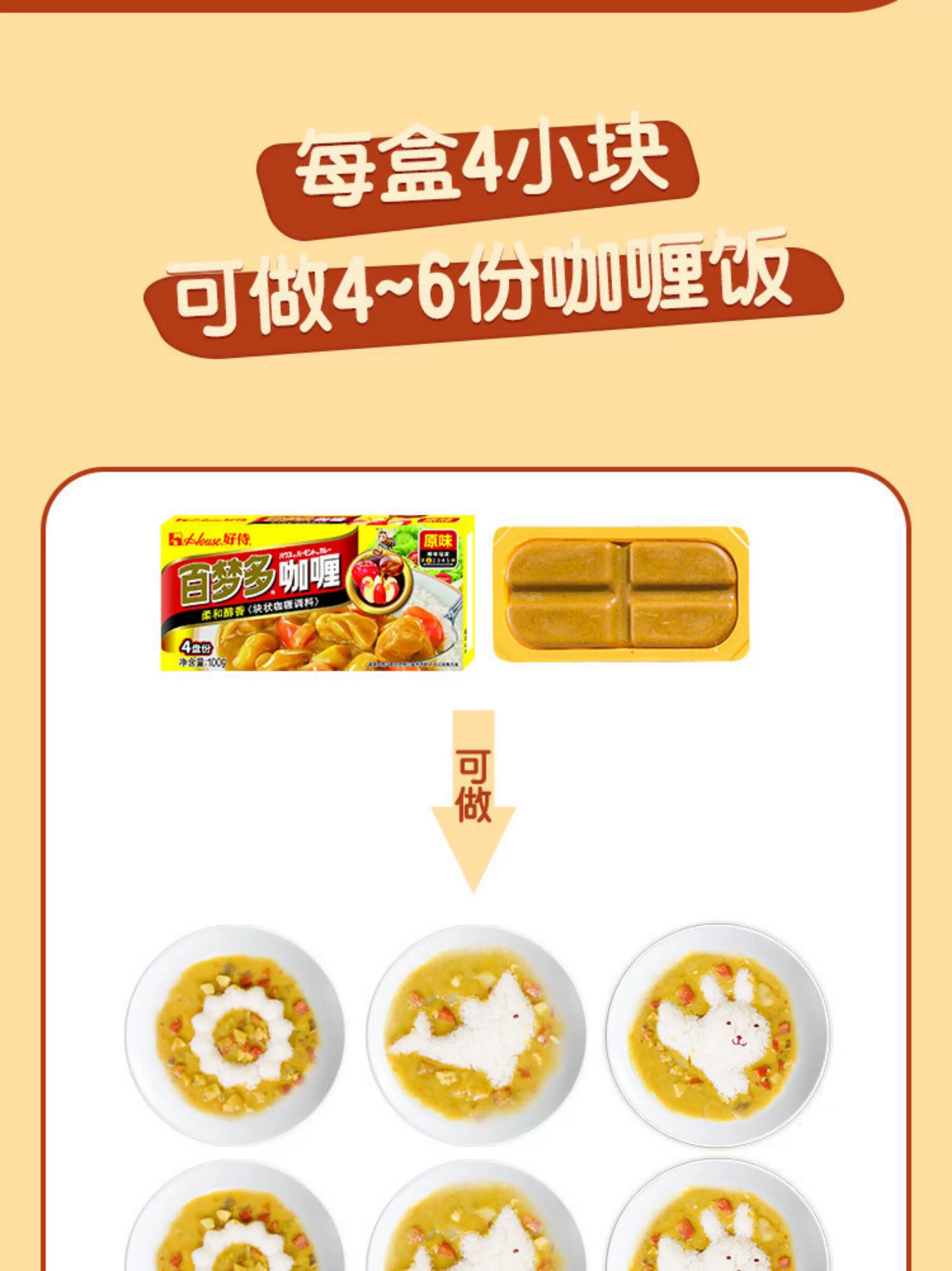 好侍百梦多咖喱块家用日式苹果咖喱拌饭酱鸡肉料理包儿童原味调料