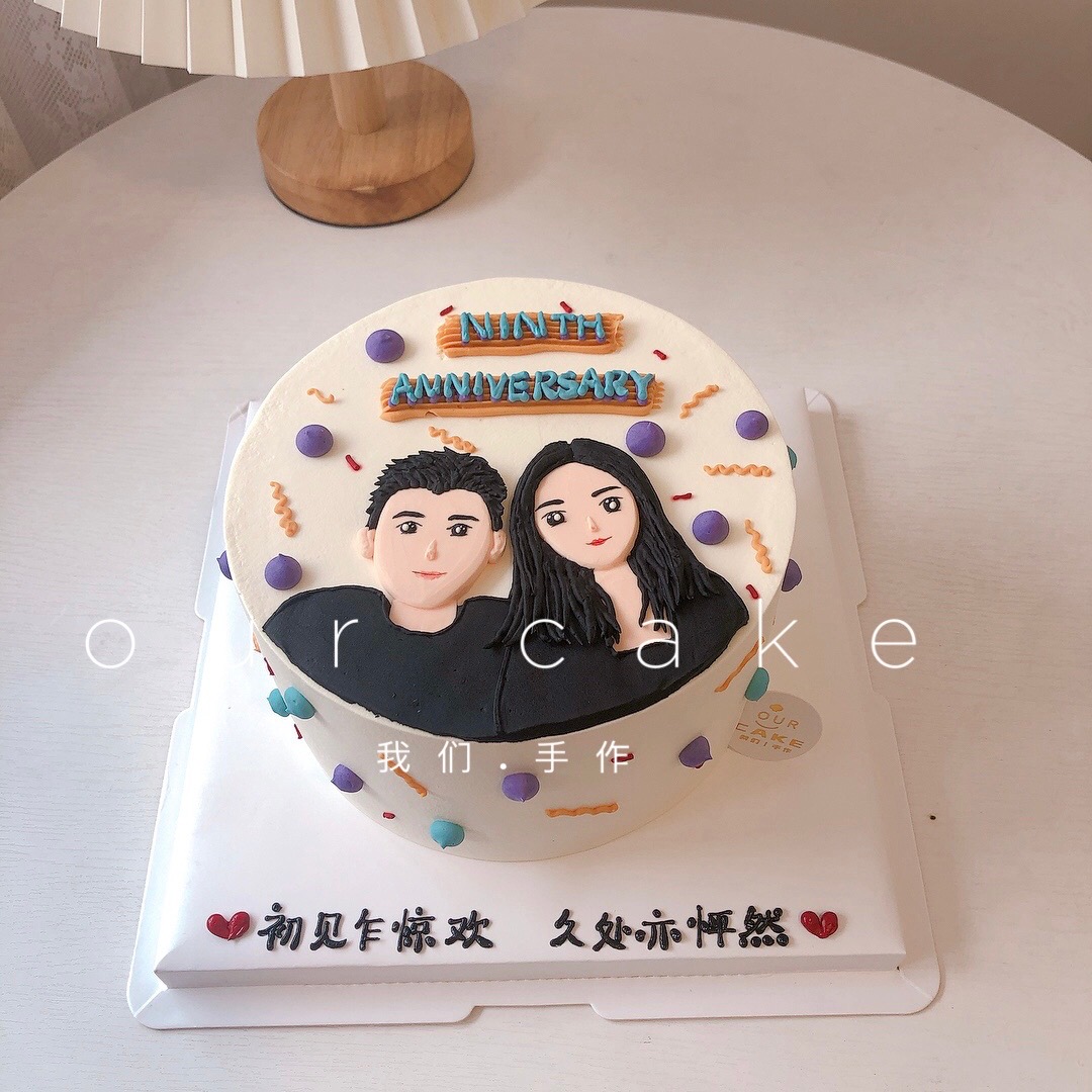情侣手绘纪念日蛋糕 -低糖处理无添加