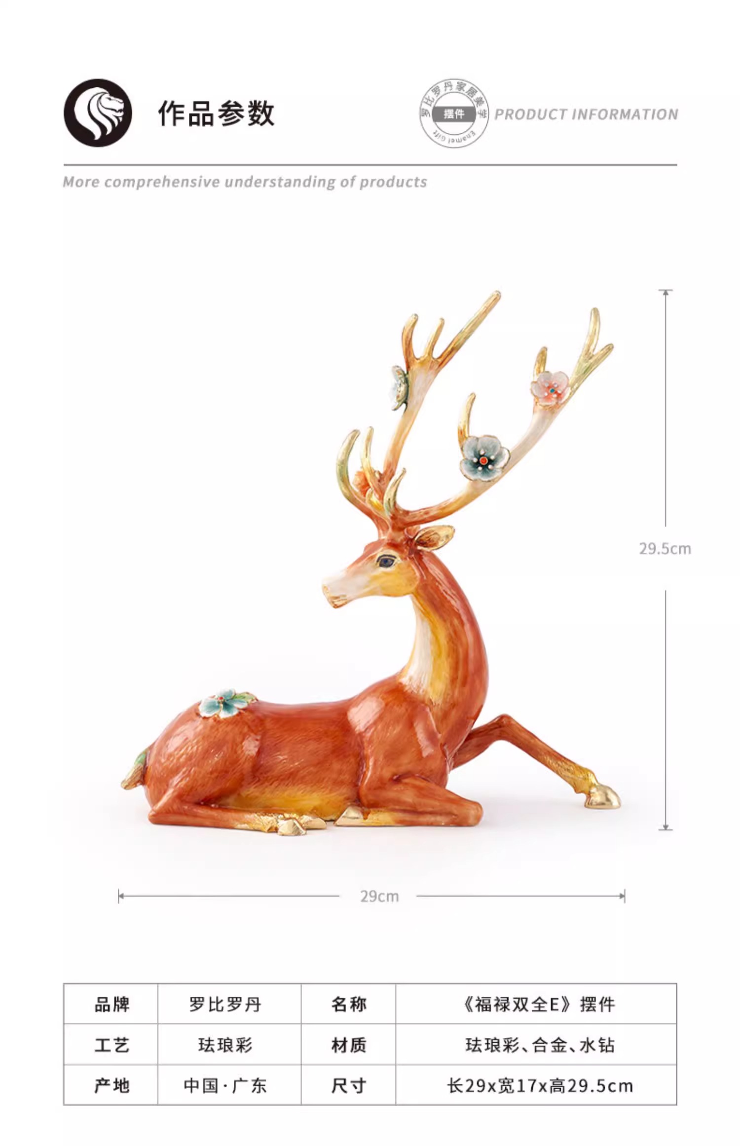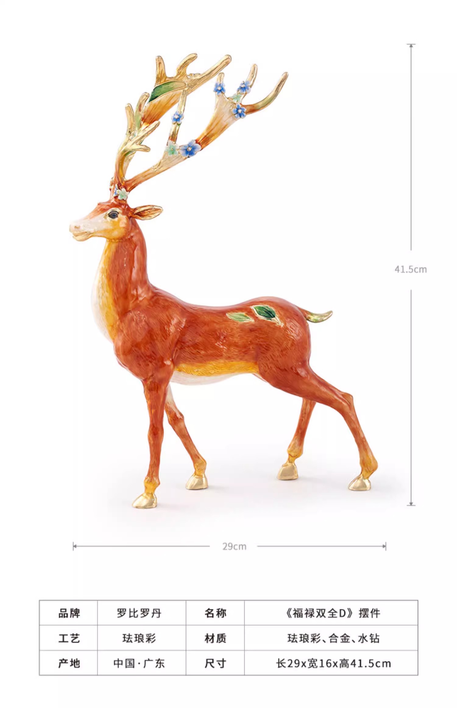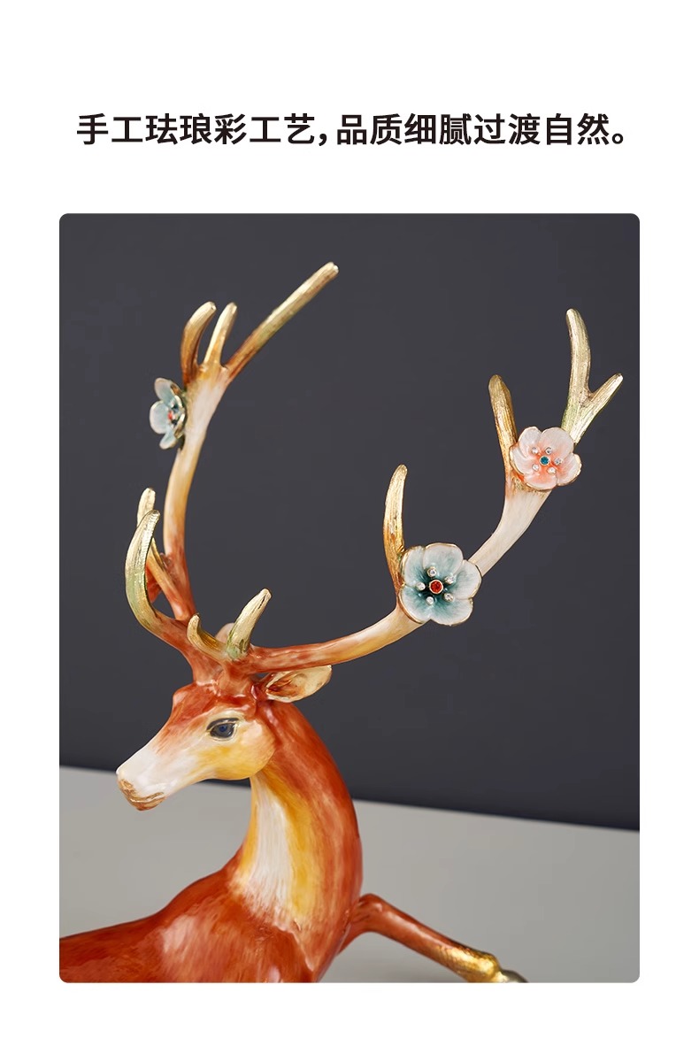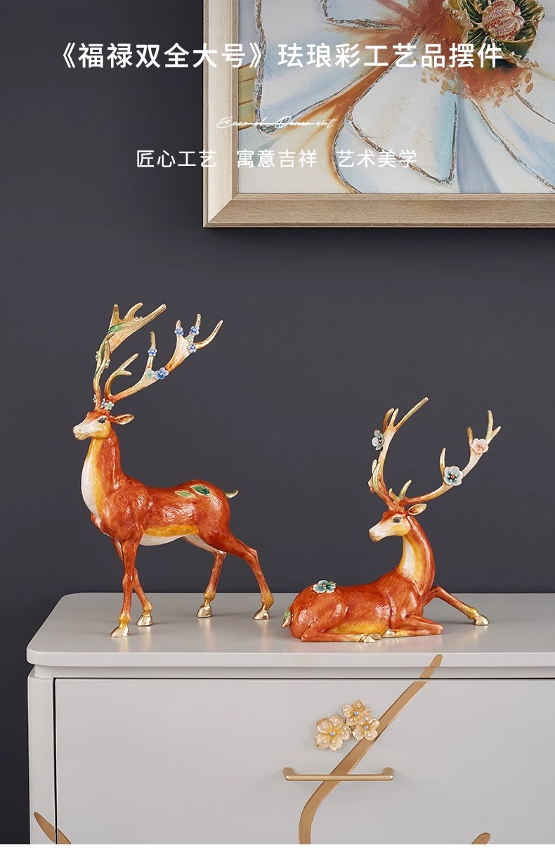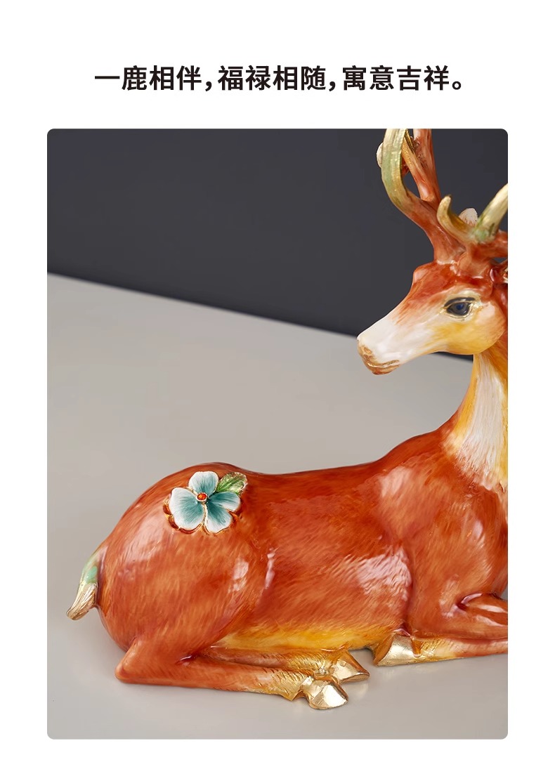 罗比罗丹大号福禄双全珐琅彩工艺鹿摆件创意乔迁礼物开业礼品罗比罗丹摆件(福禄双全)