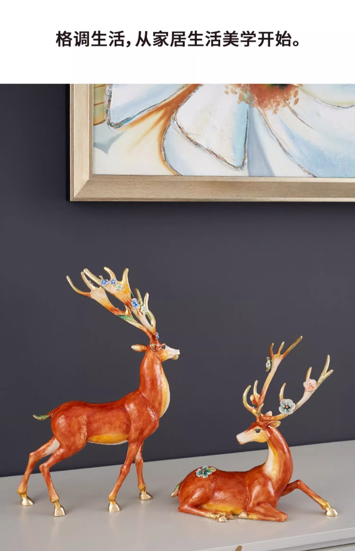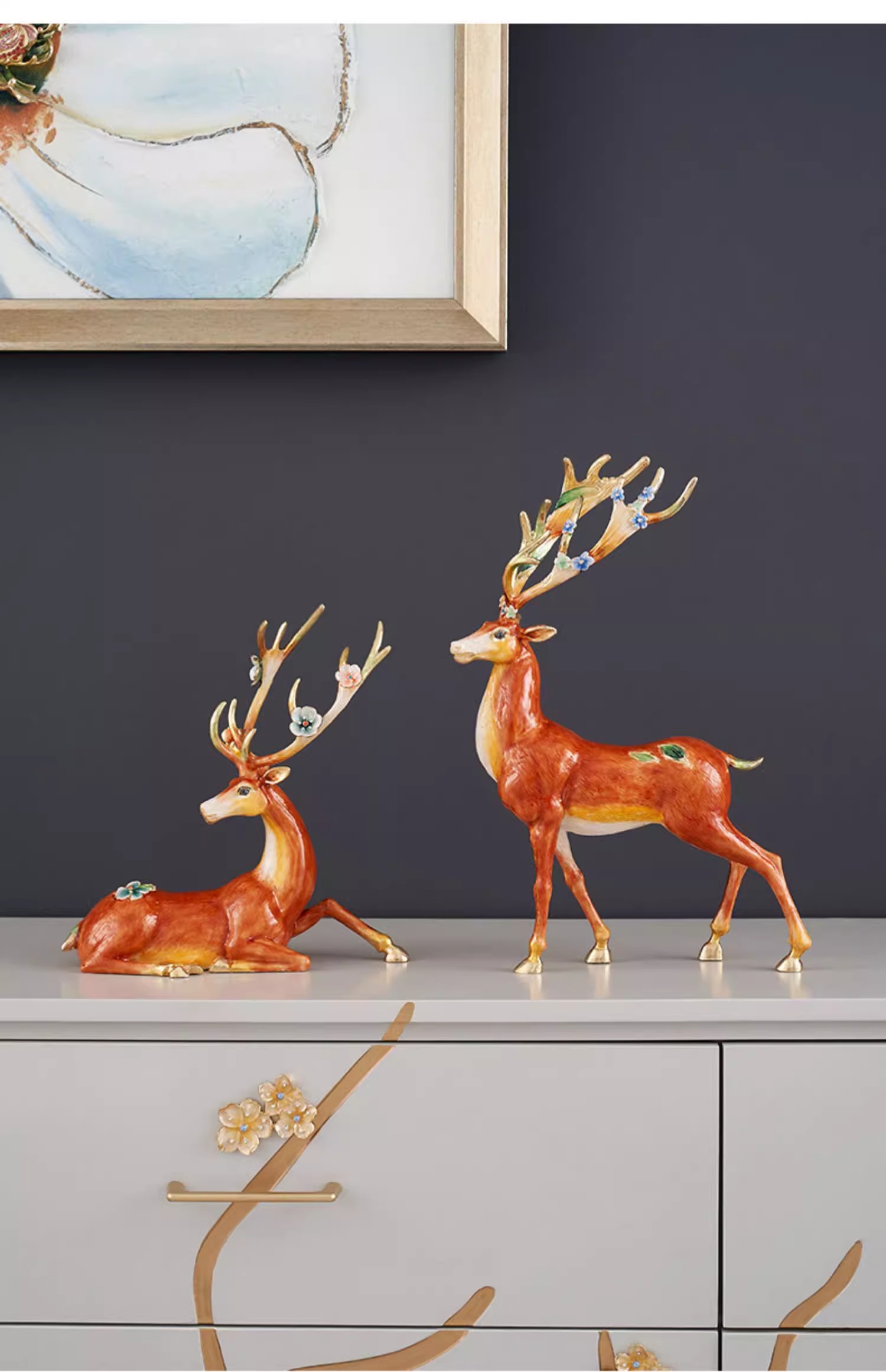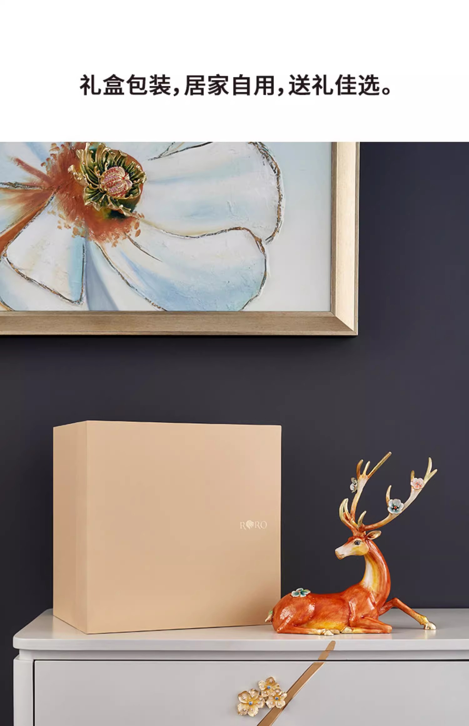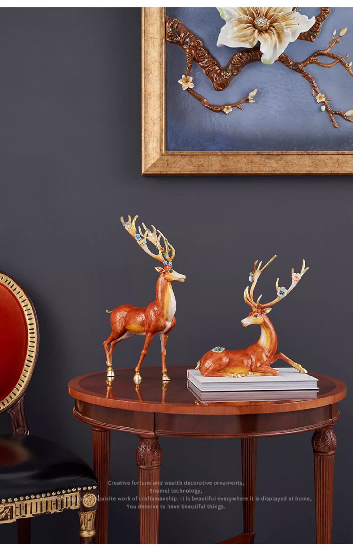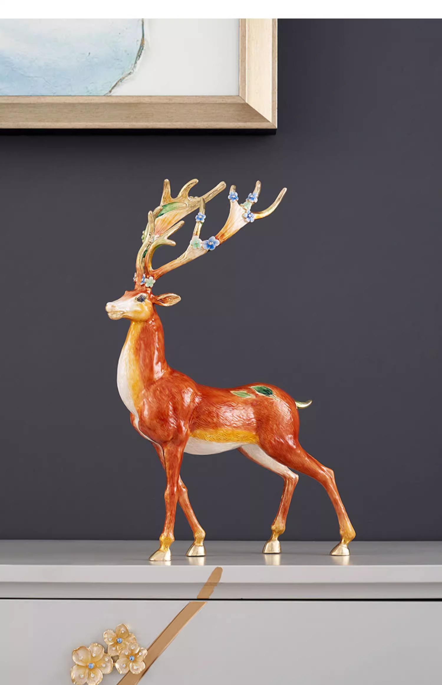 罗比罗丹大号福禄双全珐琅彩工艺鹿摆件创意乔迁礼物开业礼品罗比罗丹摆件(福禄双全)