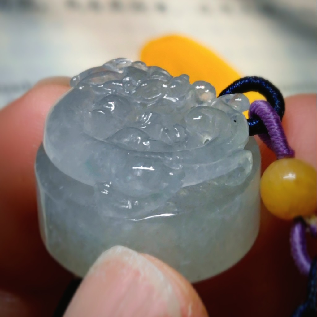 糯冰种结构的圆形小印章,即可以把玩,又可以当做挂件,或包挂。一物多用哦!