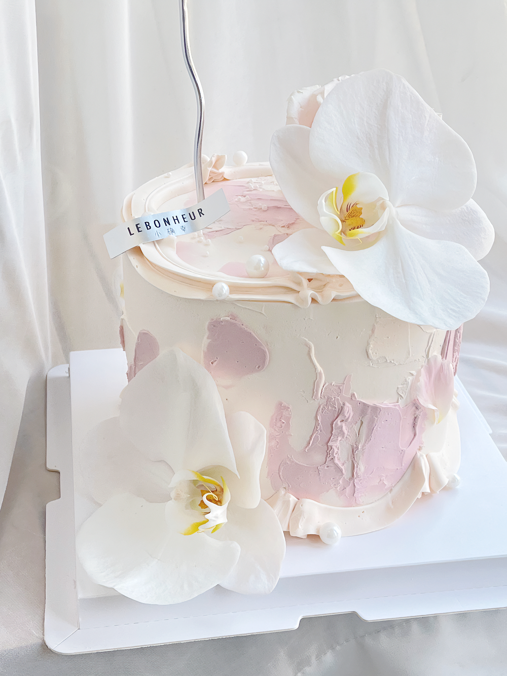 白色蝴蝶兰搭配简约风格奶油蛋糕