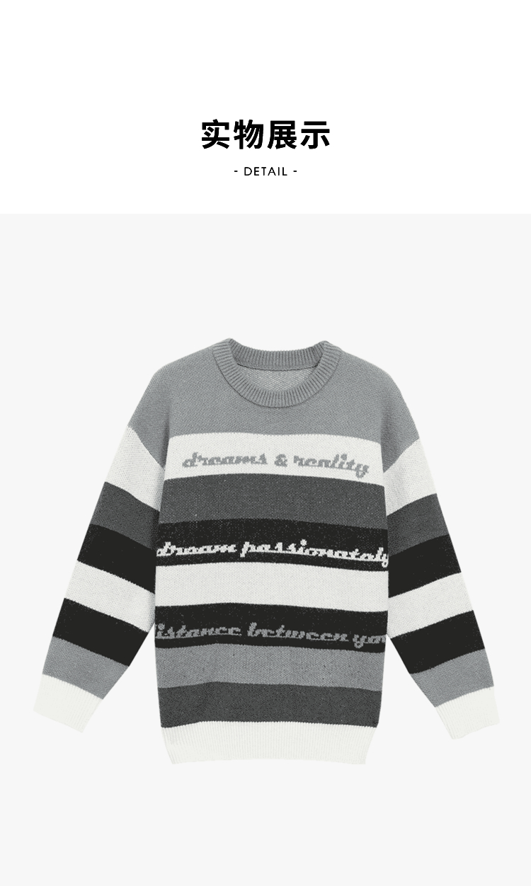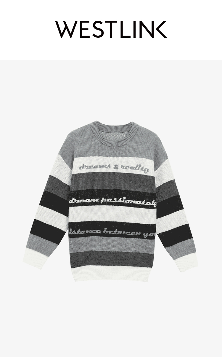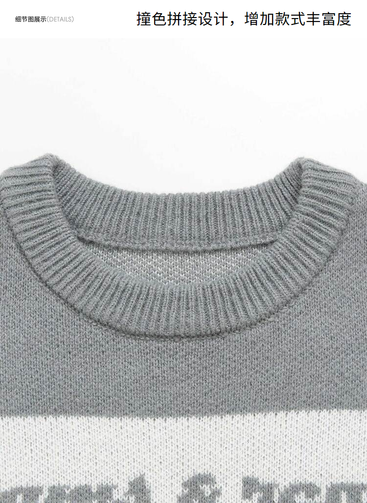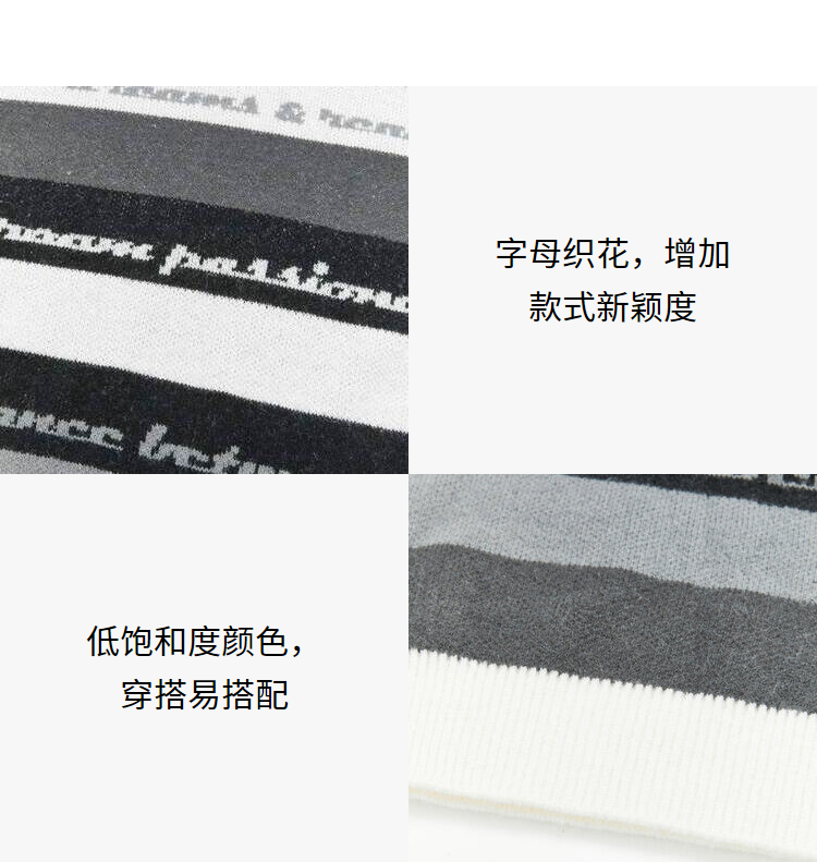 西遇条纹长袖针织衫男2023年冬季新款拼接撞色柔软保暖毛衣上衣12022430