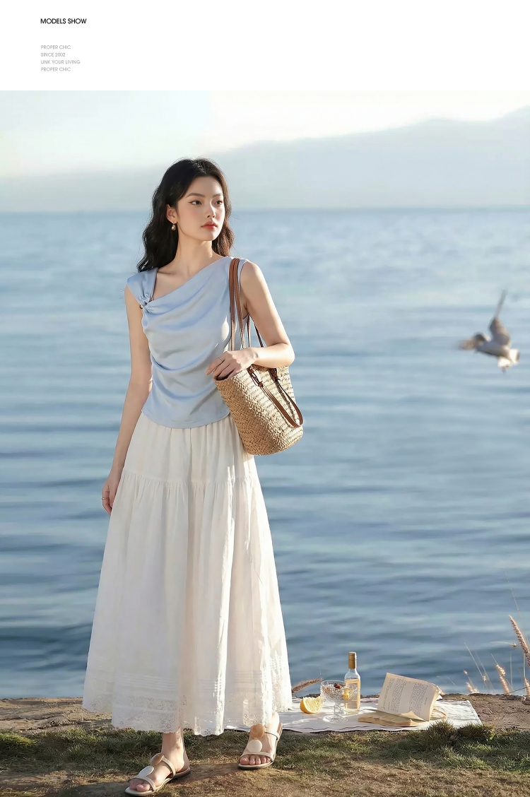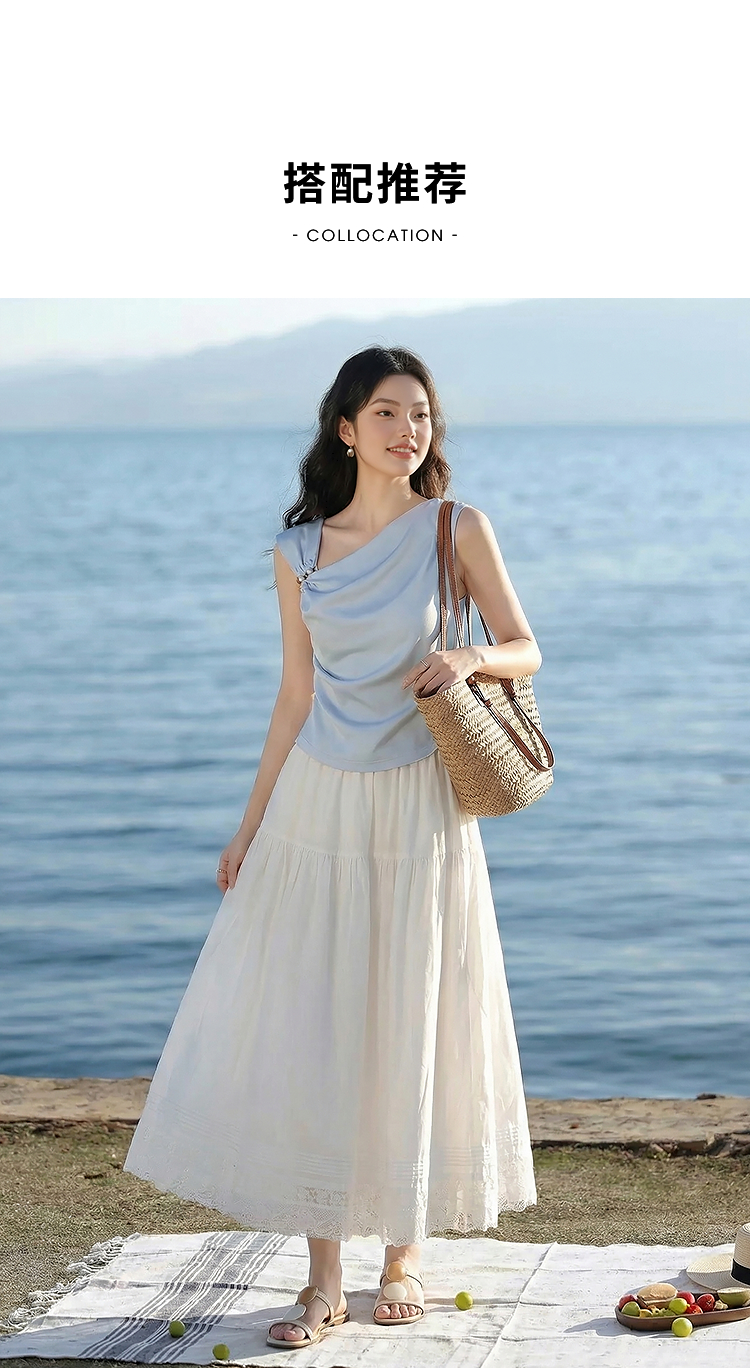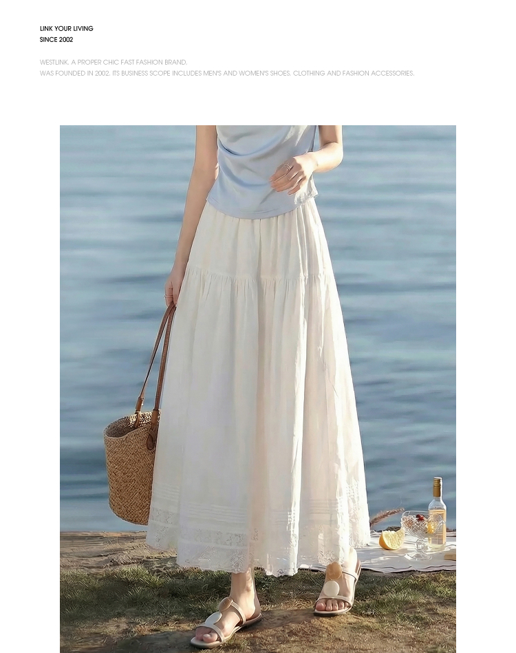 西遇白色蕾丝半身裙女2026年春季新款松紧腰设计感中长款A字裙E0060186