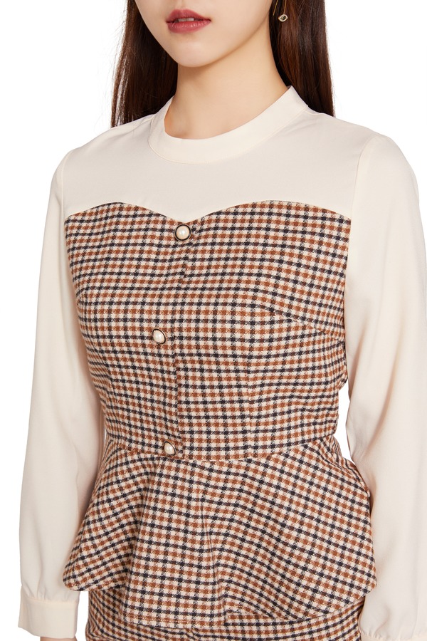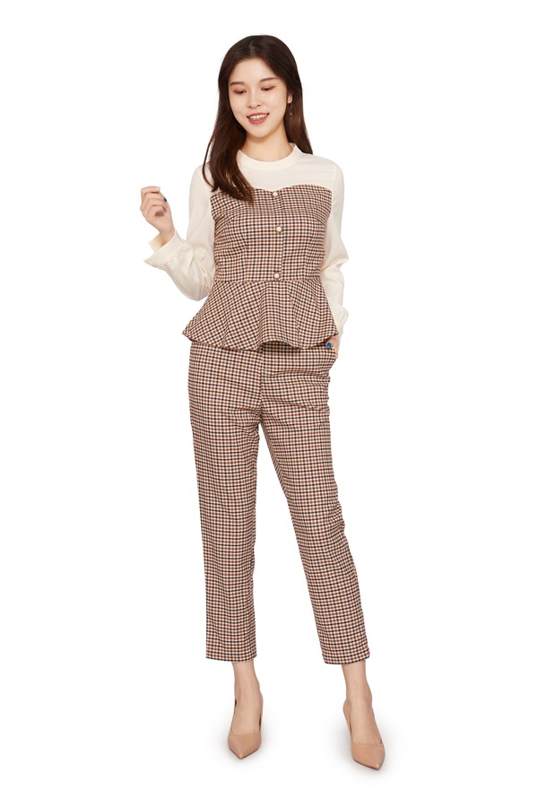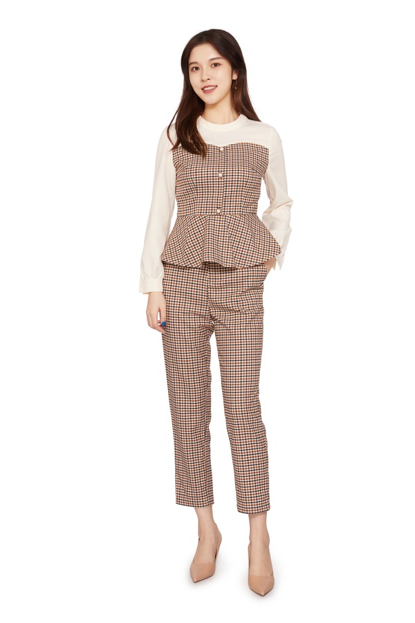 Le Malene 复古小香风格纹拼接式裤套装 10231