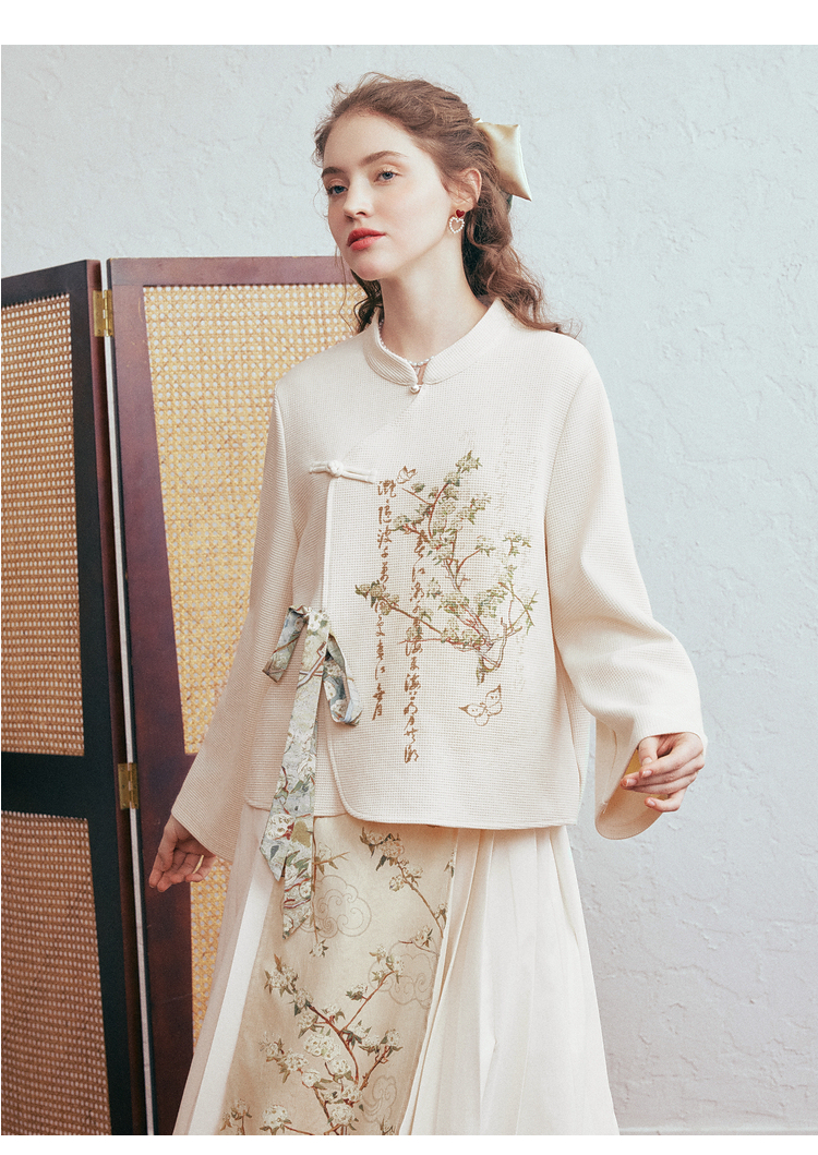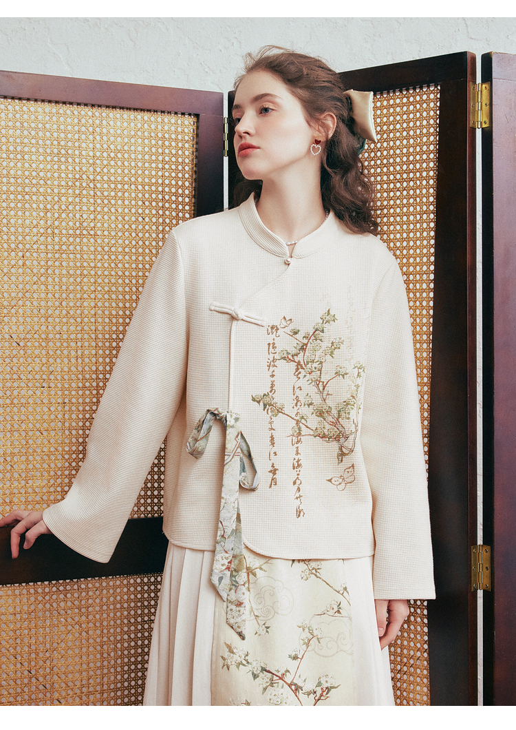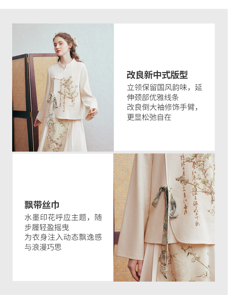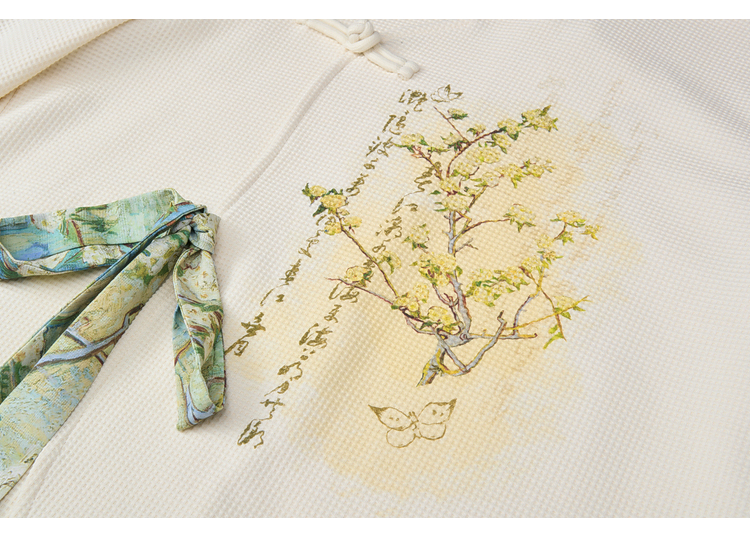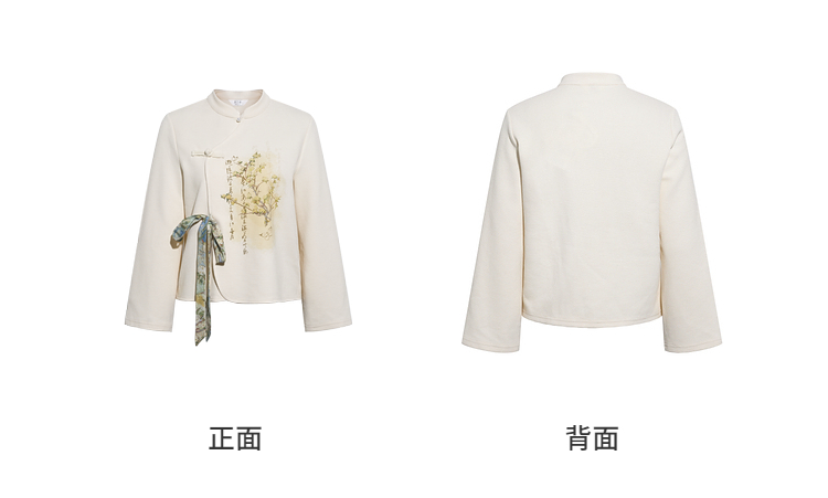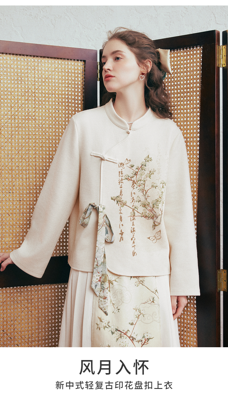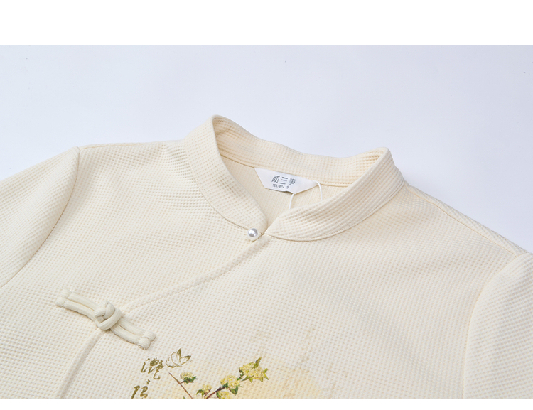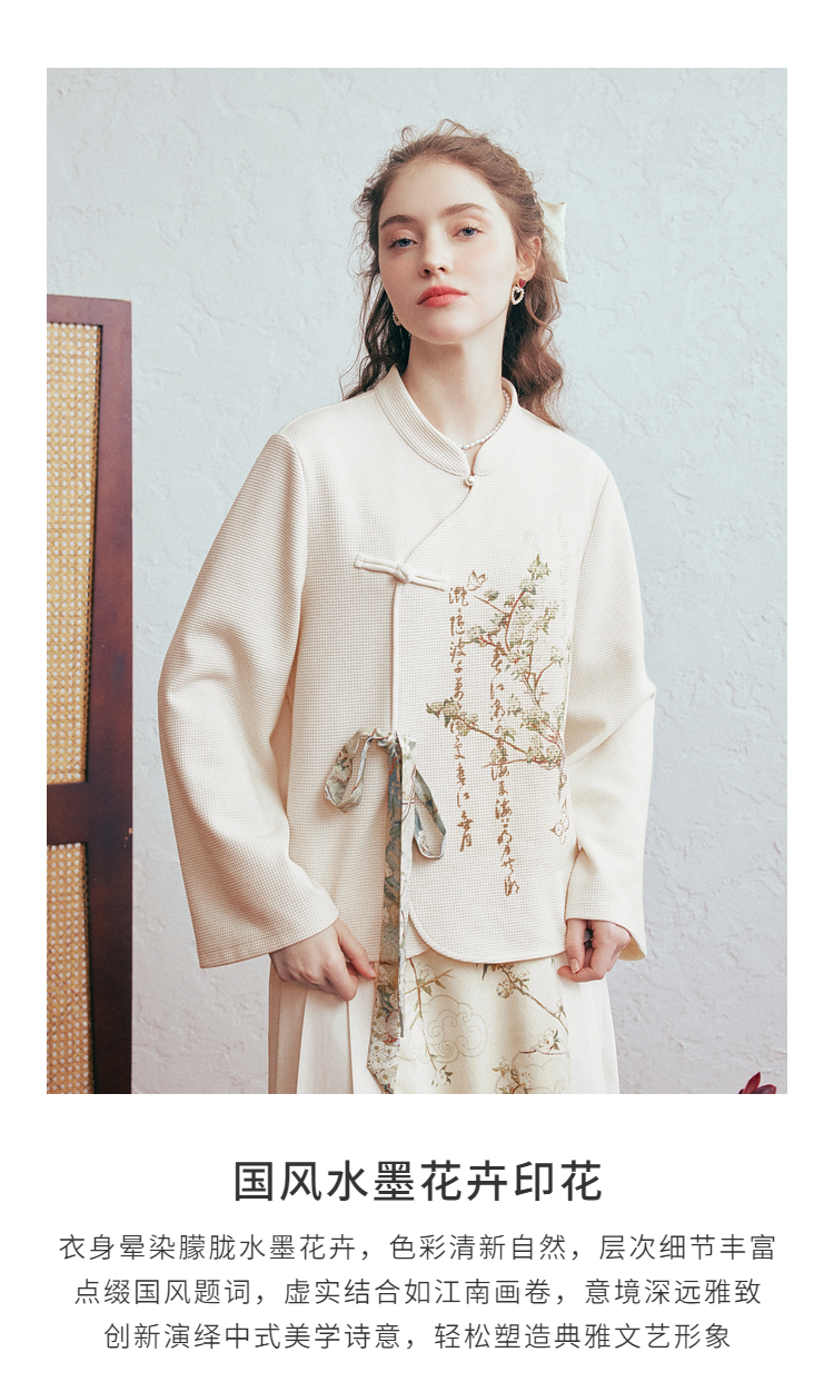两三事 风月入怀 2026春季新款新中式立领盘扣印花绑带绑带t恤女