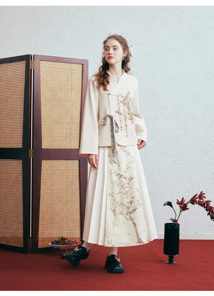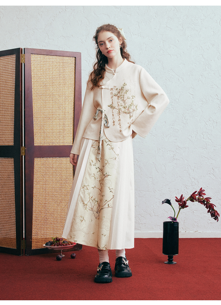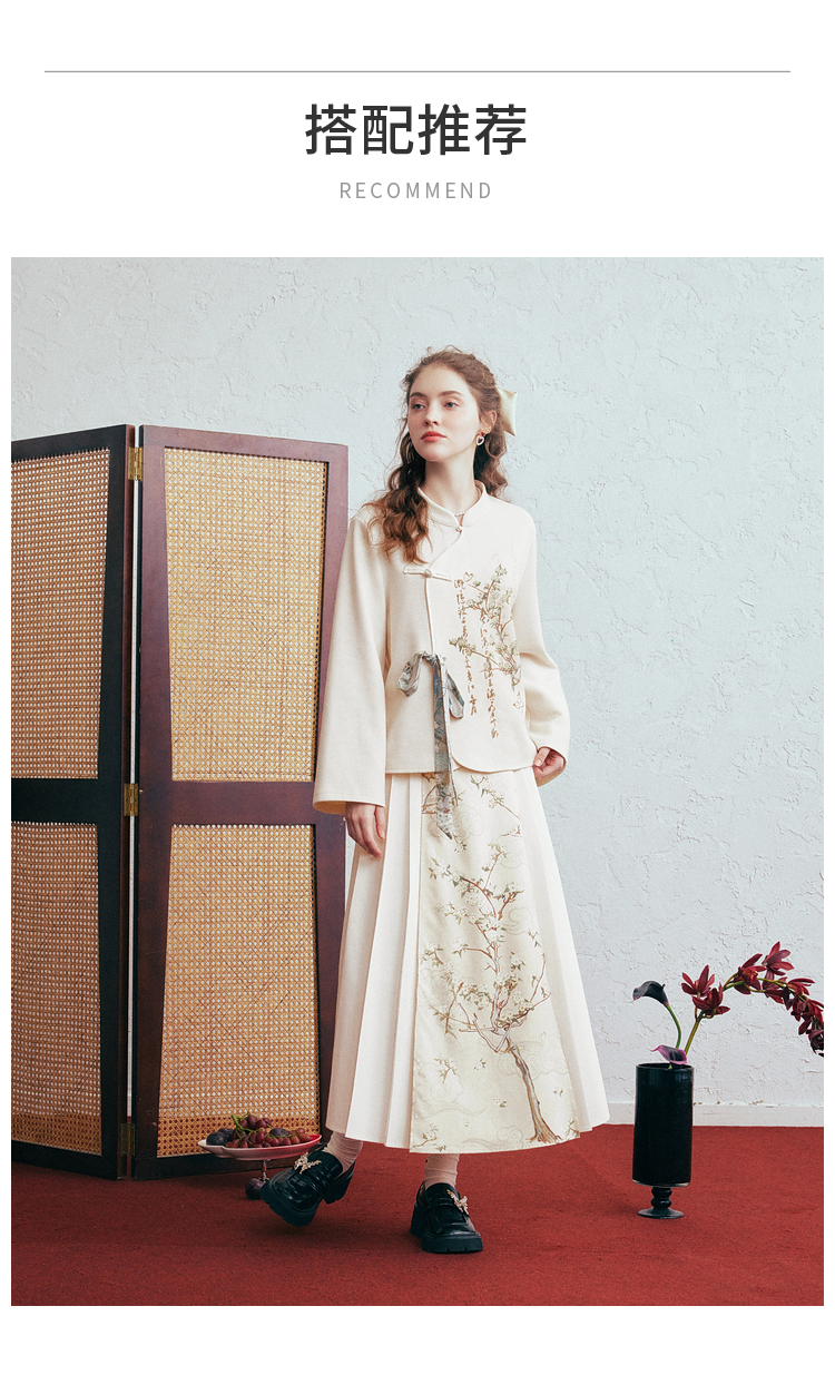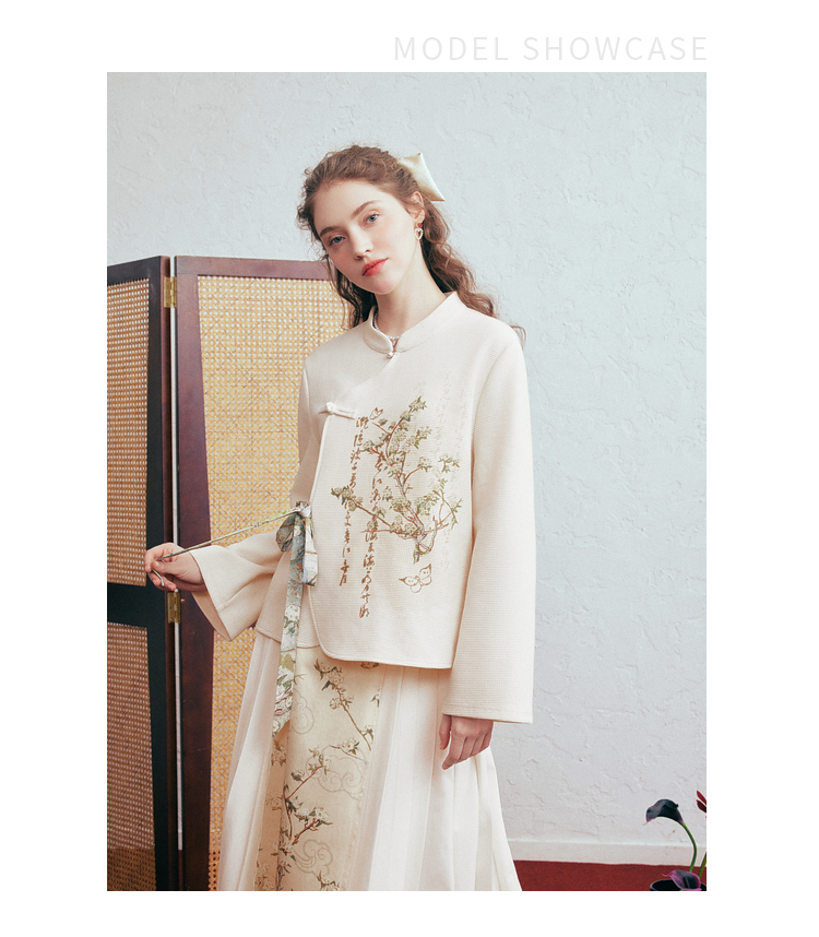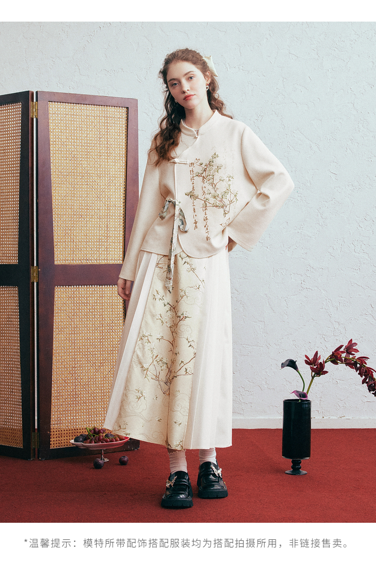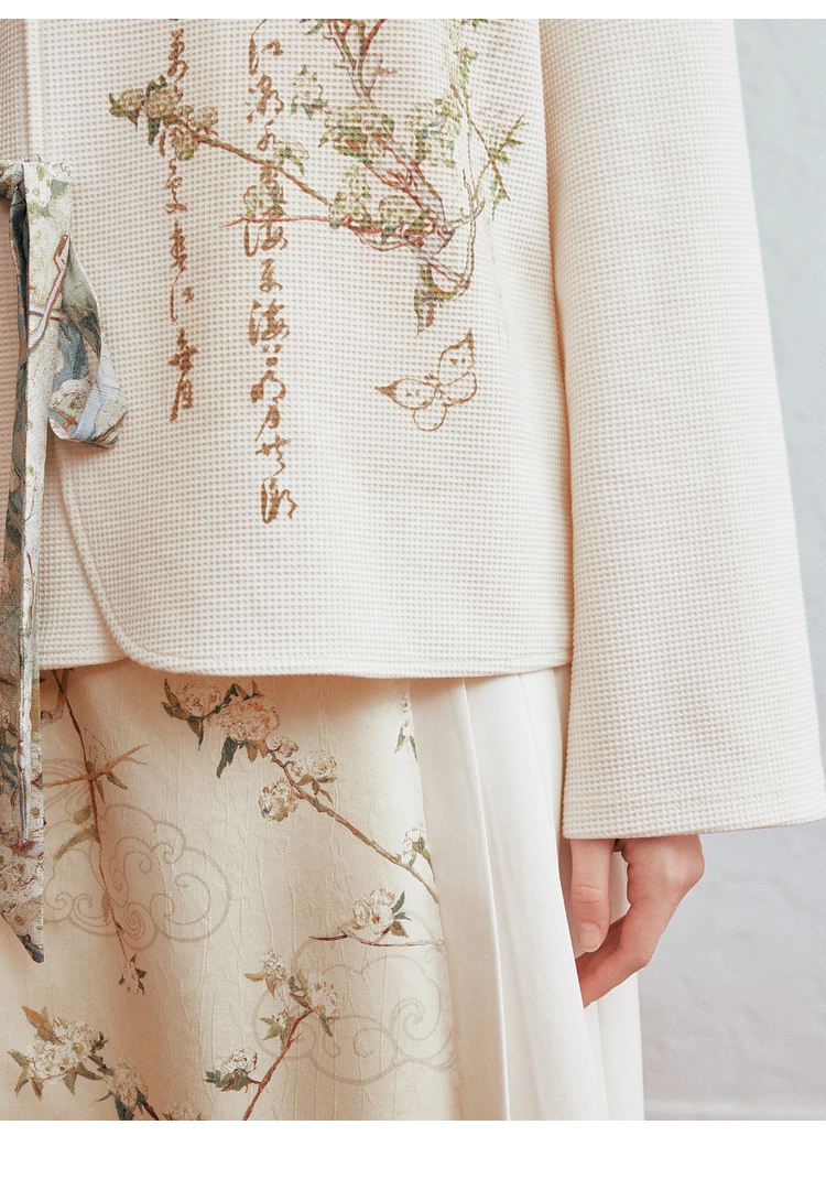两三事 风月入怀 2026春季新款新中式立领盘扣印花绑带绑带t恤女