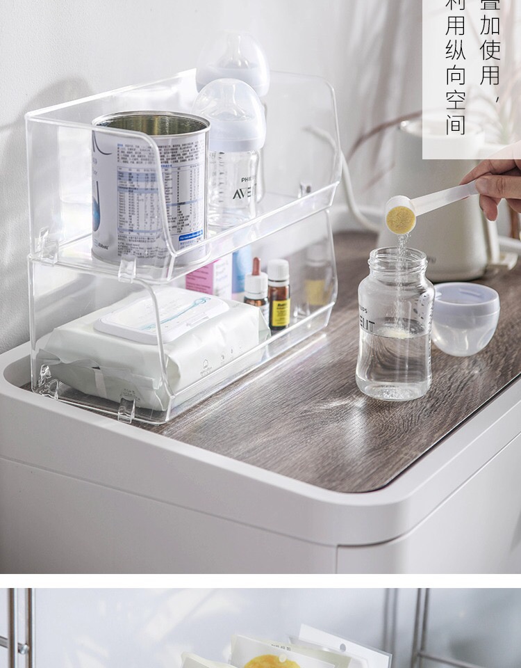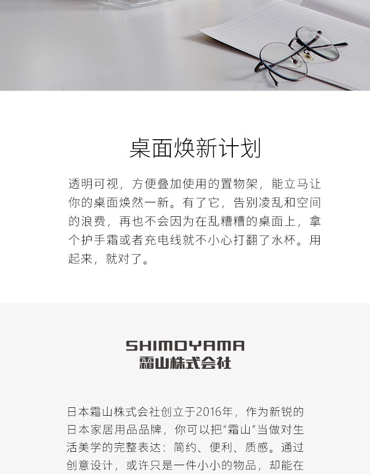 日本霜山透明桌面置物架省空间ins化妆品收纳架子塑料零食收纳盒