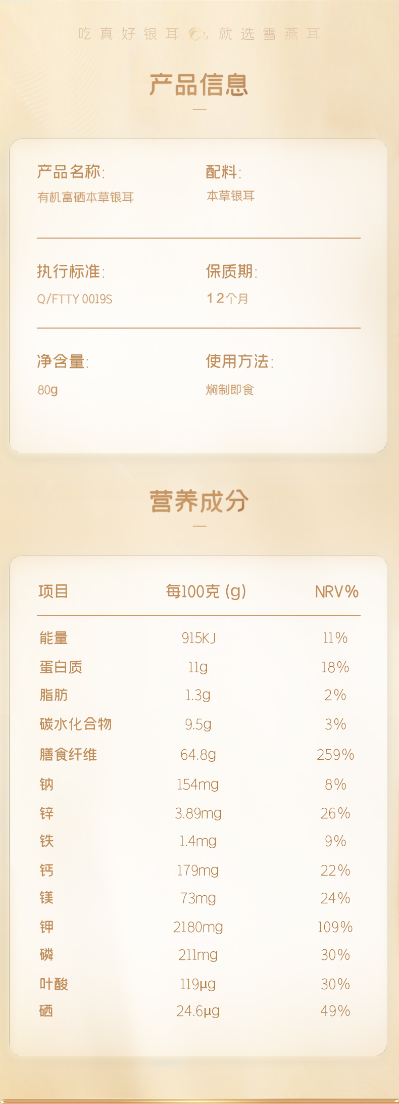 雪燕耳双有机本草银耳80g冲泡即食银耳羹伴侣免煮特级干货送礼