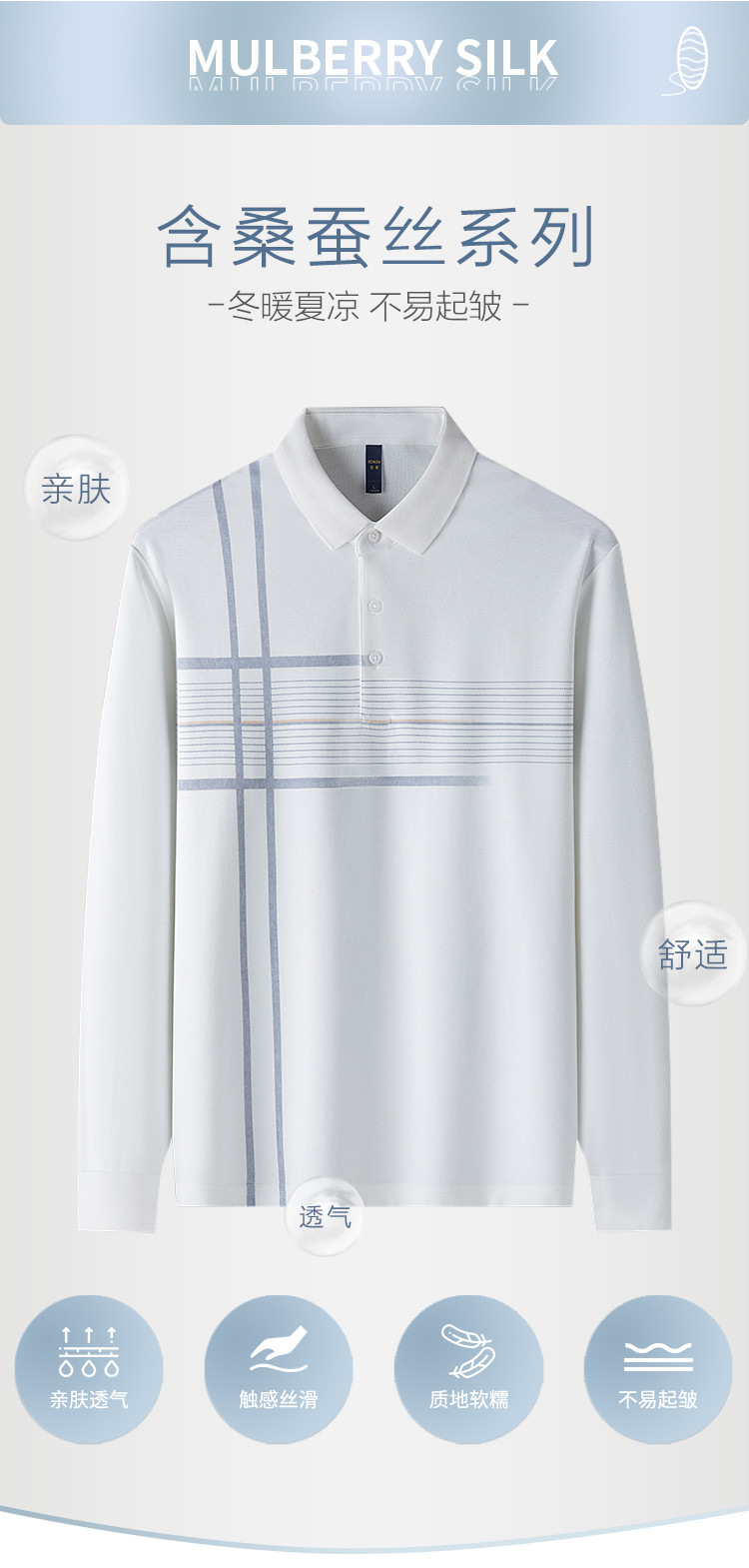 【福利款】罗蒙男士春秋含桑蚕丝莫代尔polo衫男长袖男士polo衫长袖