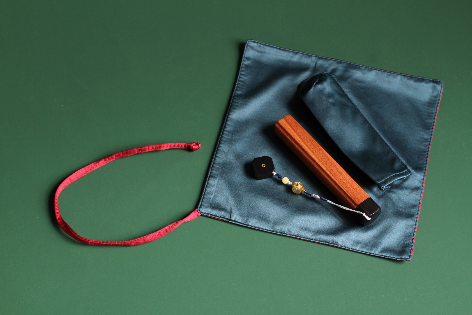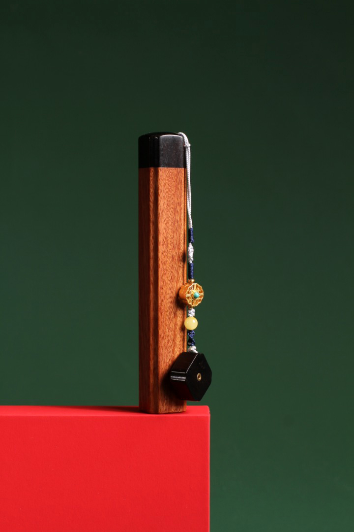 配件:非洲酸枝制作窗棂香筒,紫光檀香插,24k祥云背云南红+绿松,蜜蜡。