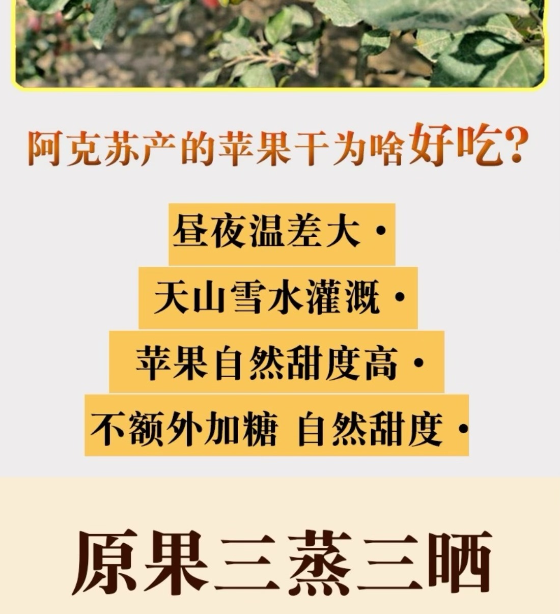 1、精选优质原料,阿克苏冰糖心苹果;