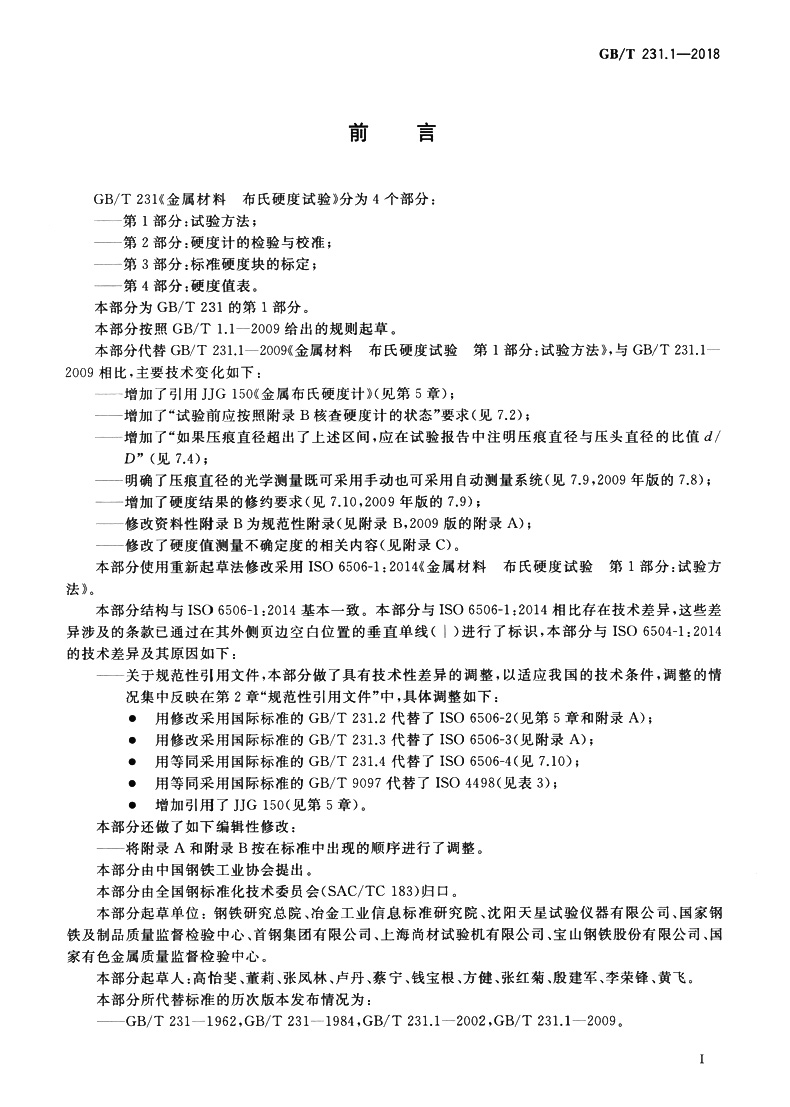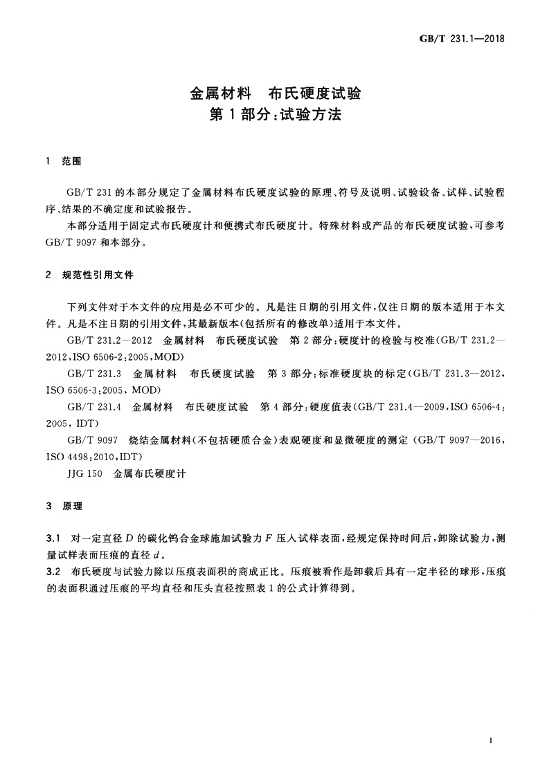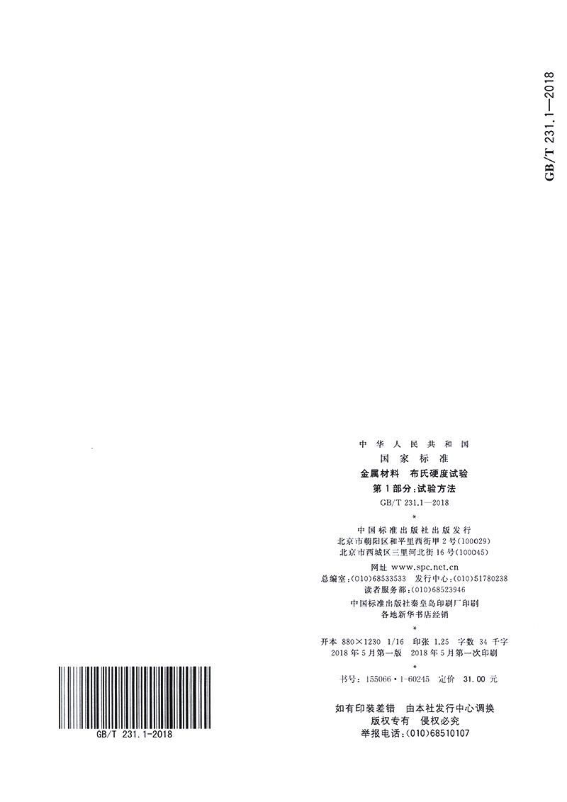 书名:GB/T 231.1-2018【国家标准】 金属材料 布氏硬度试验 第1部分:试验方法