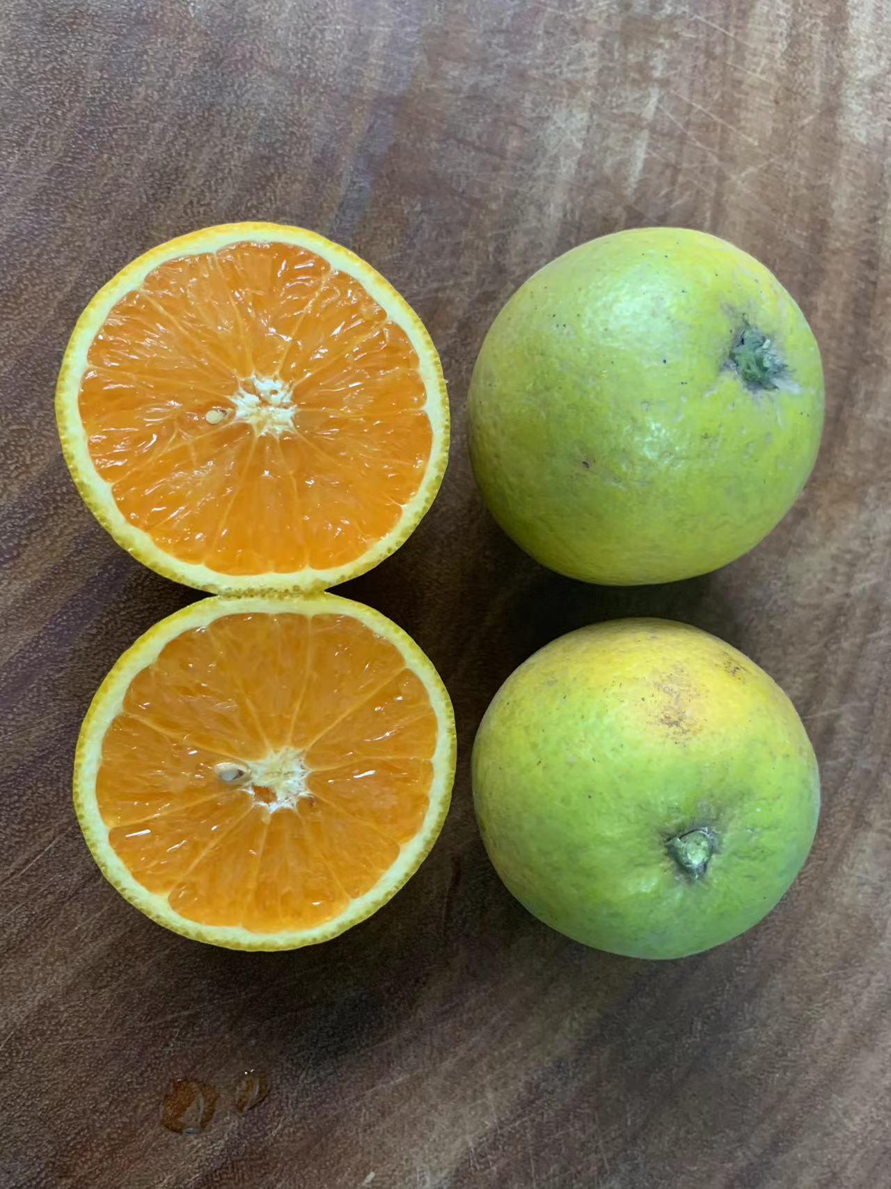 九月红是秋橙,有果冻橙的美誉,成熟时果皮由青色变色橙红色,橙子皮薄水分足,手感拿起来不硬,沉甸甸的,口感甜中带酸,质地细嫩,化渣,果汁含量多。