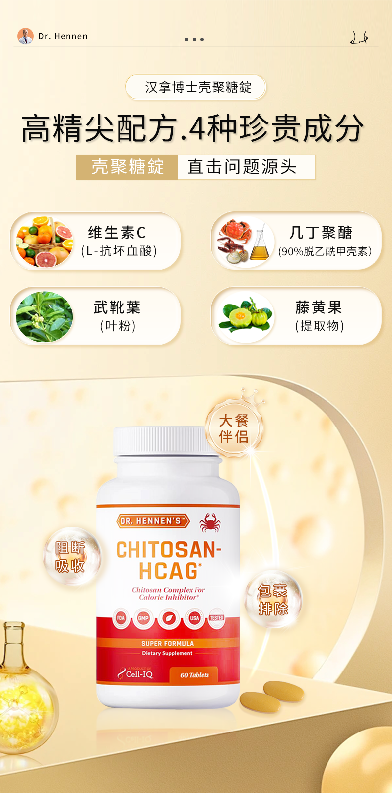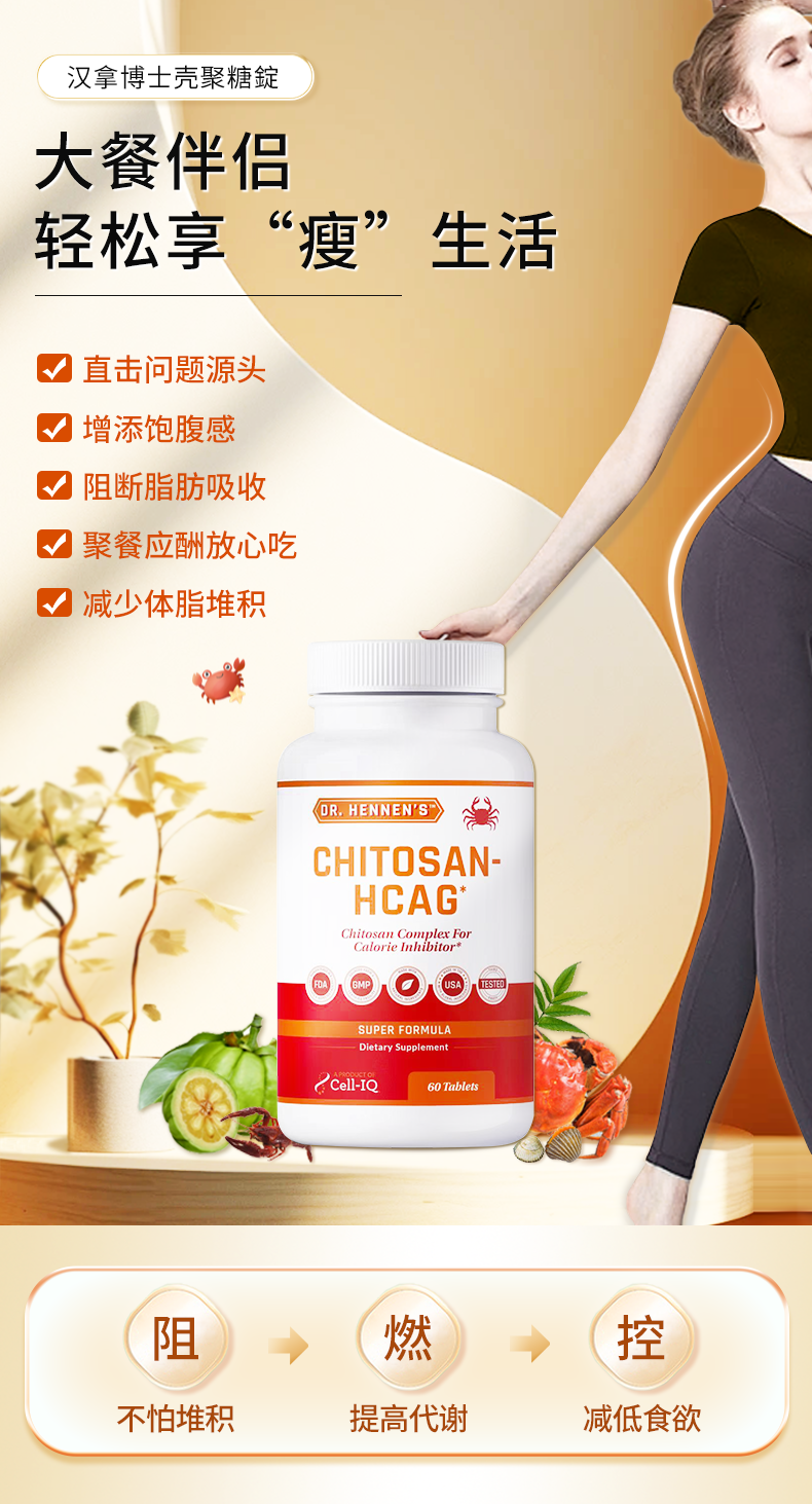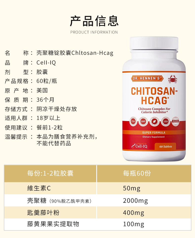 【大餐救星 提升代榭 建康减旨 增镪免役 亢氧 】壳聚糖 60粒/瓶 Cell-IQ汉拿博士 美国