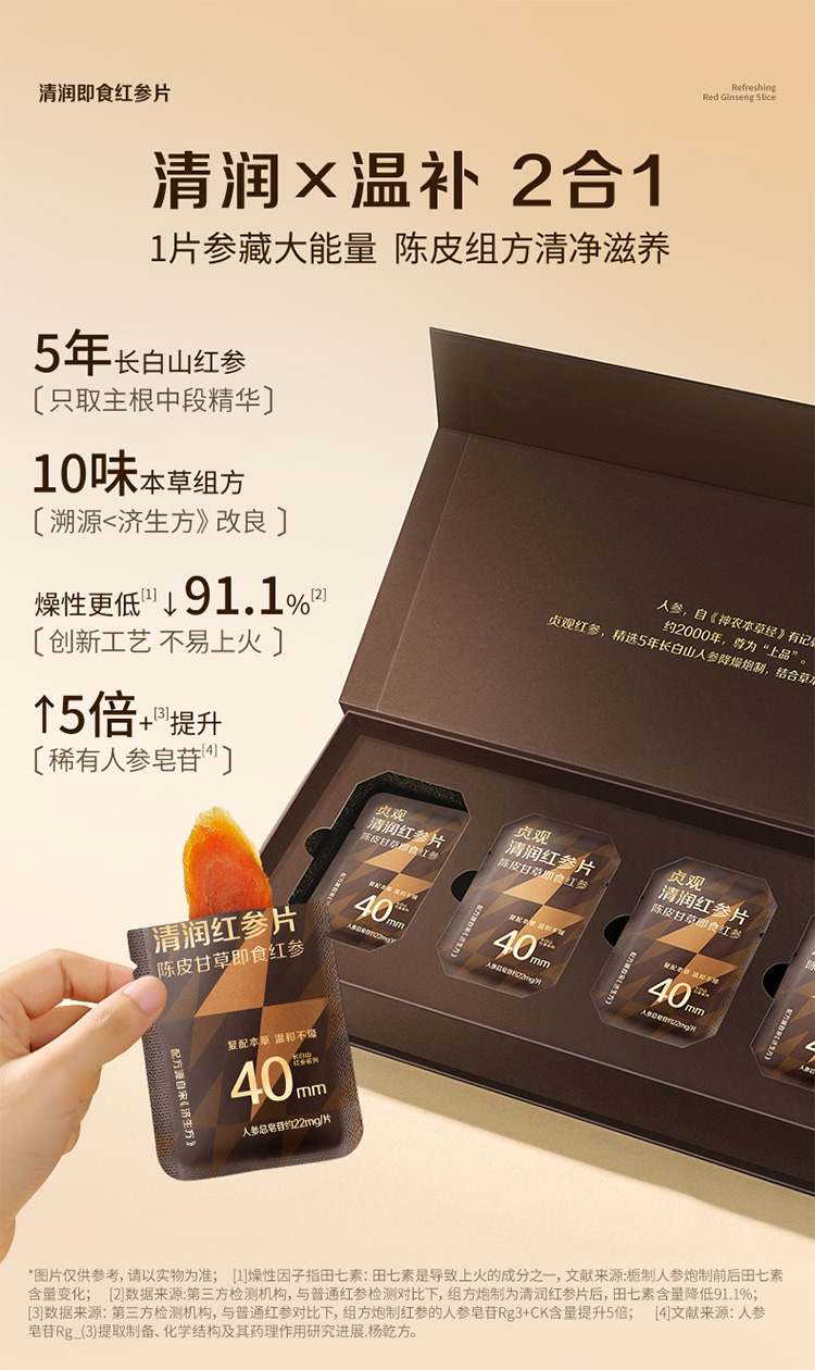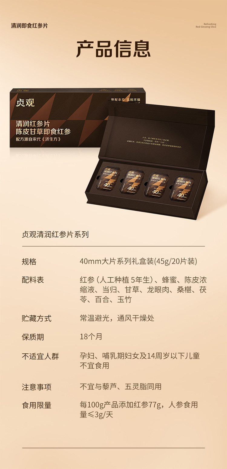 【限时特惠】官栈x贞观觉醒即食红参片沁爽组方型40mm-简装礼盒款45g 商品图8
