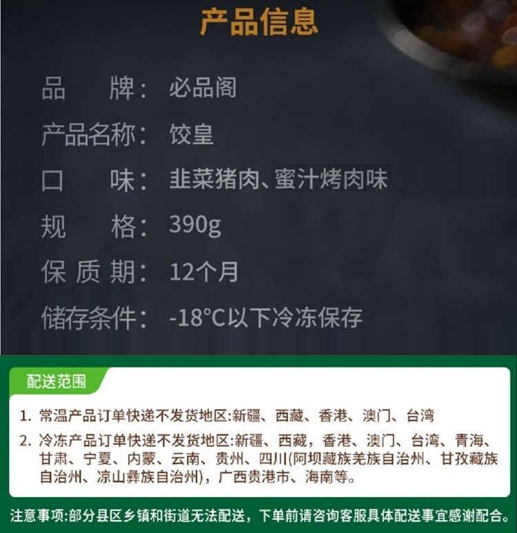 必品阁饺皇390g*6【韭菜*3+烤肉*3】