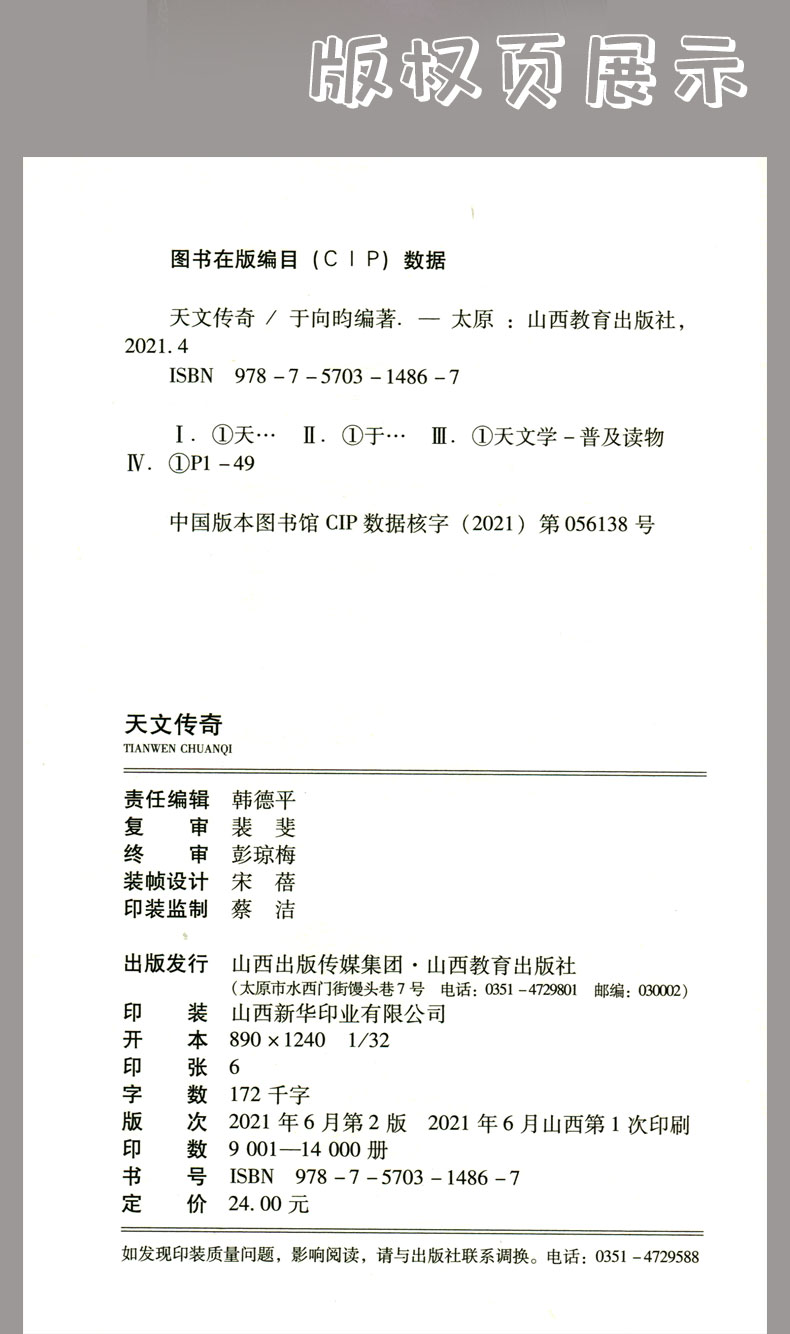 天文传奇 天文学 普及读物 山西教育出版社 于向昀编著