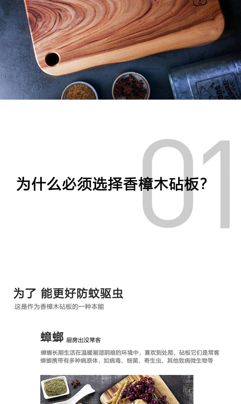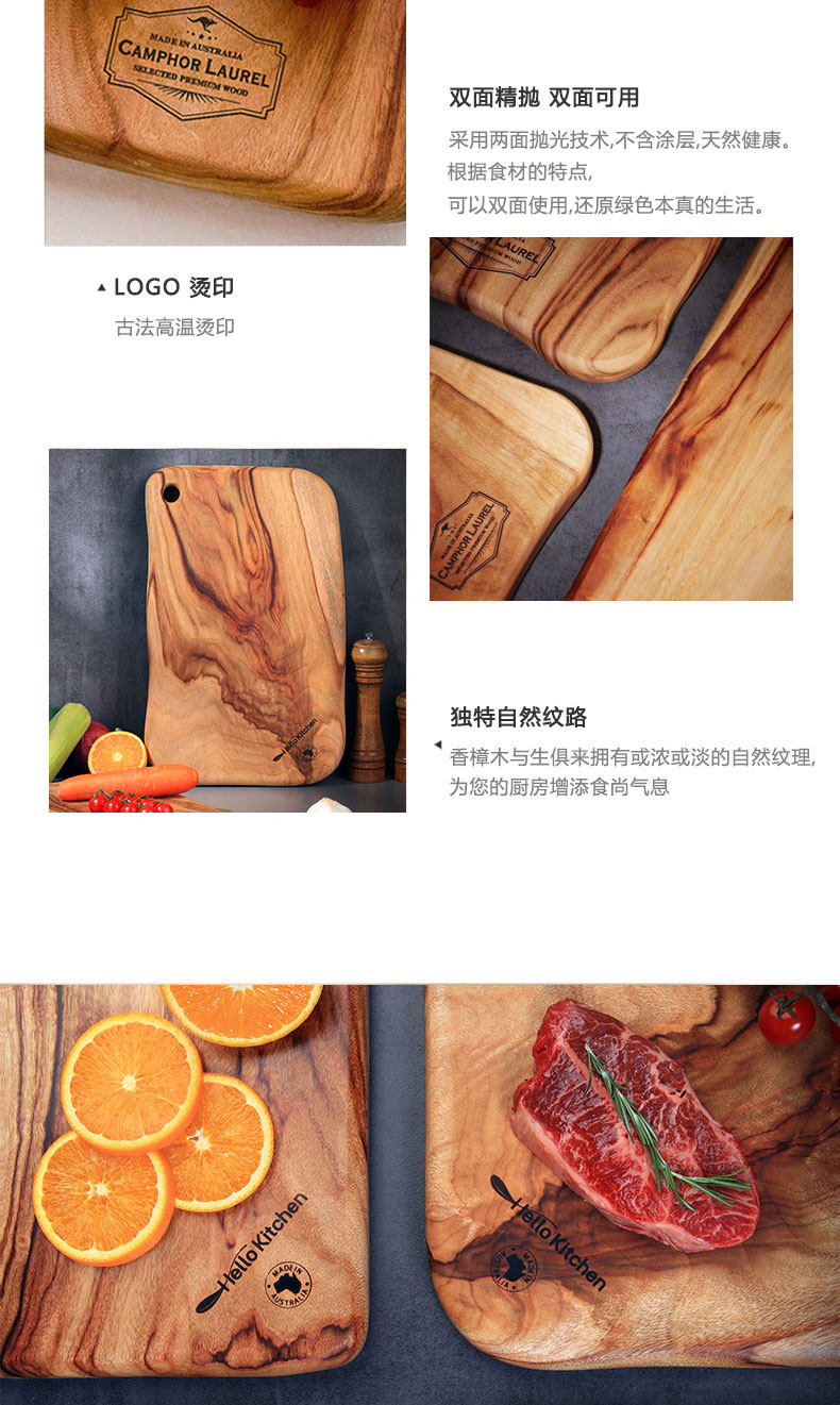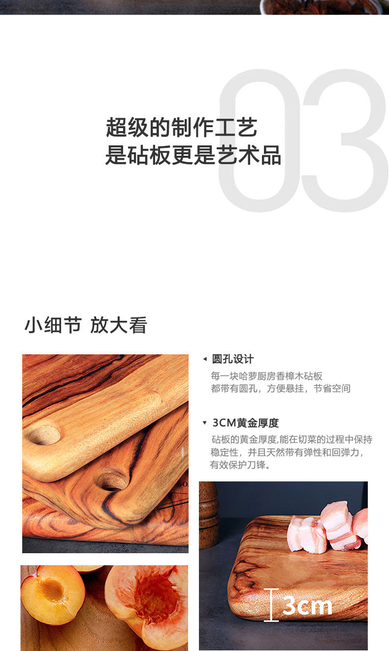 哈萝厨房高端菜板抗菌防霉实木家用整木无拼接香樟木砧板切板进口-YHD