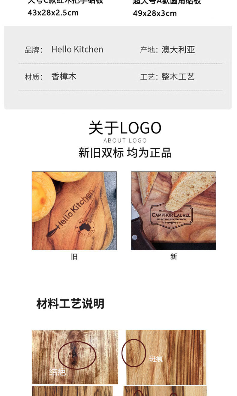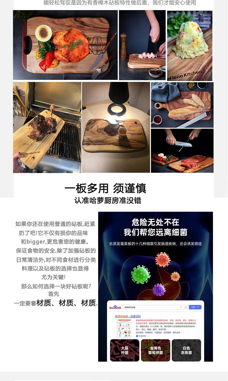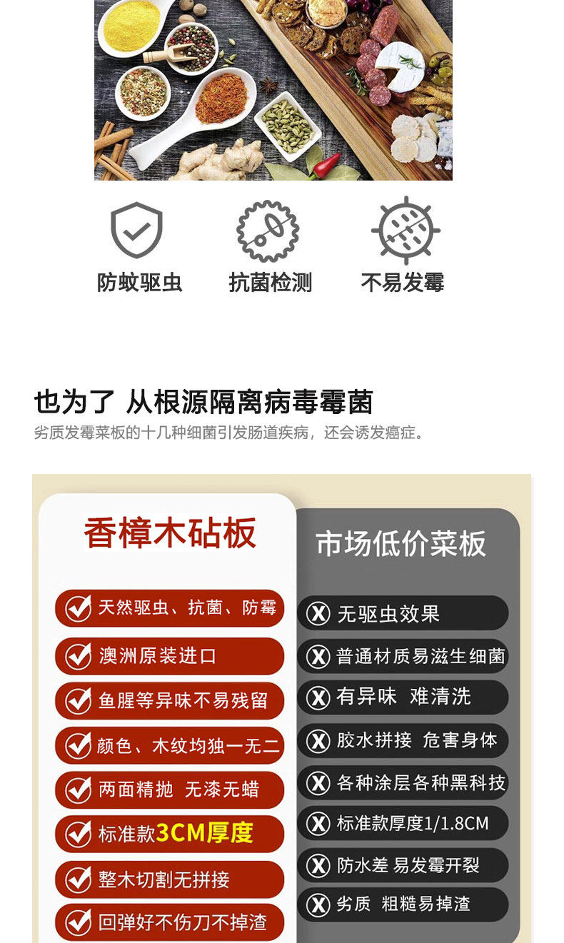 哈萝厨房高端菜板抗菌防霉实木家用整木无拼接香樟木砧板切板进口-YHD