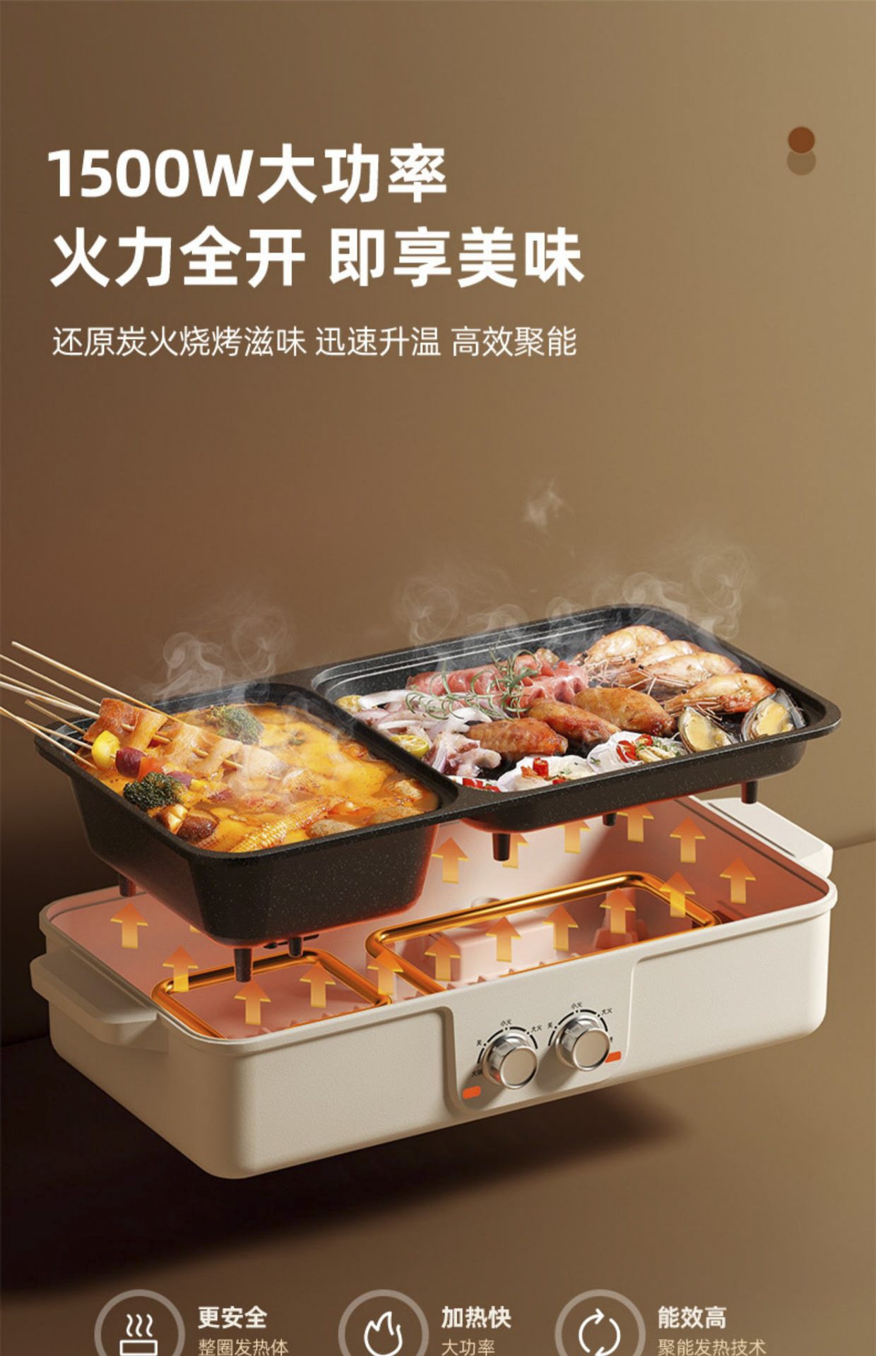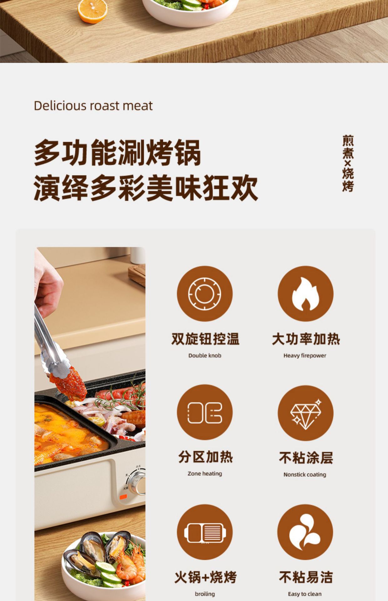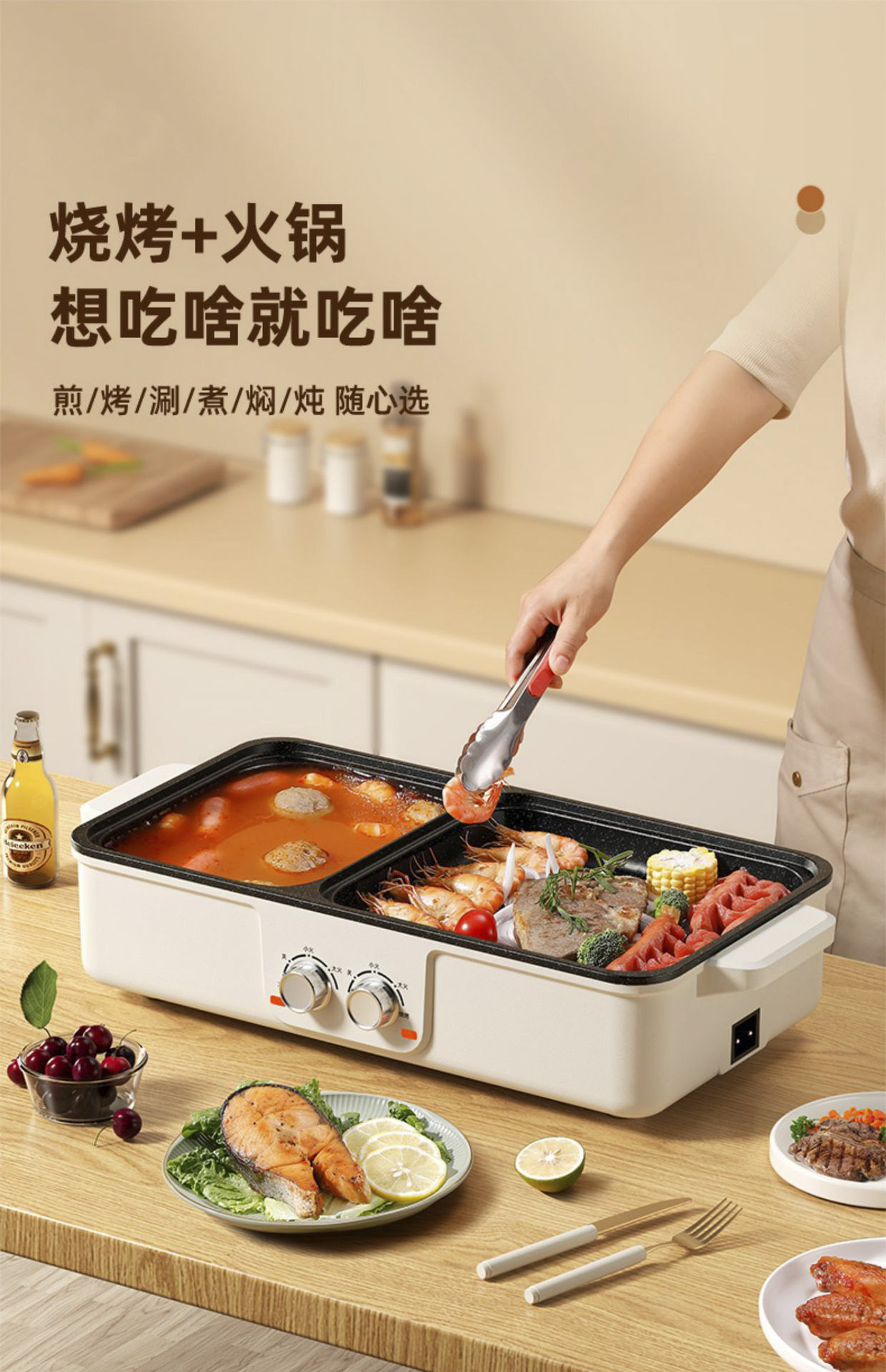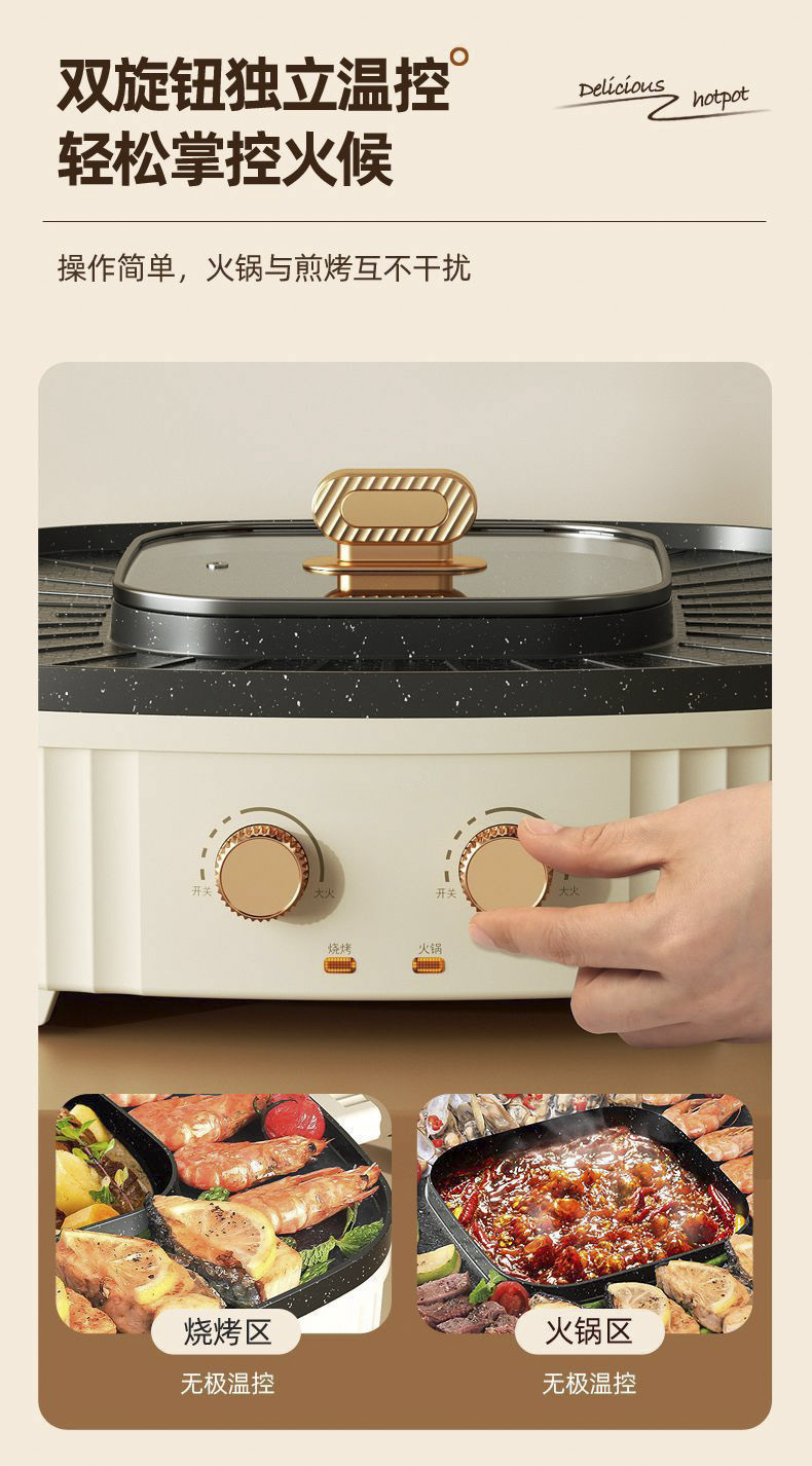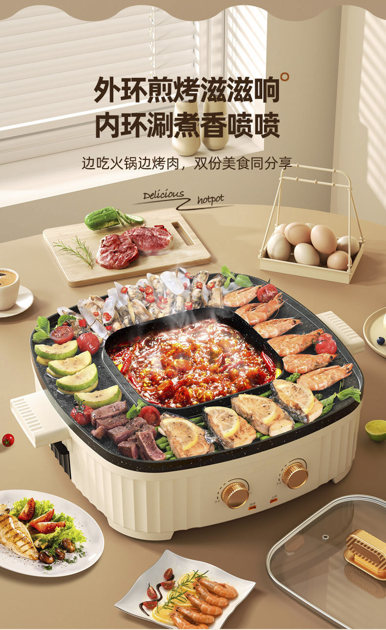 新款多功能涮烤一体家用电烤盘烤肉锅 烤肉盘电烤炉涮烤一体锅