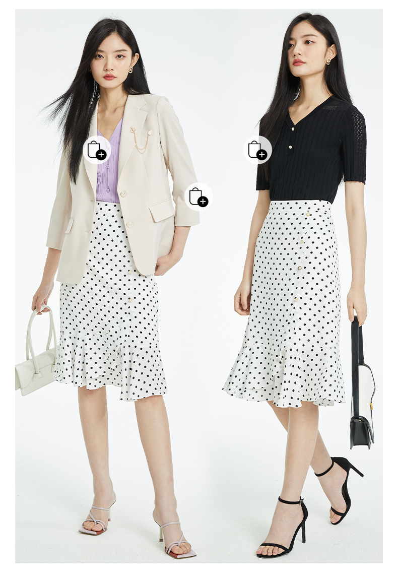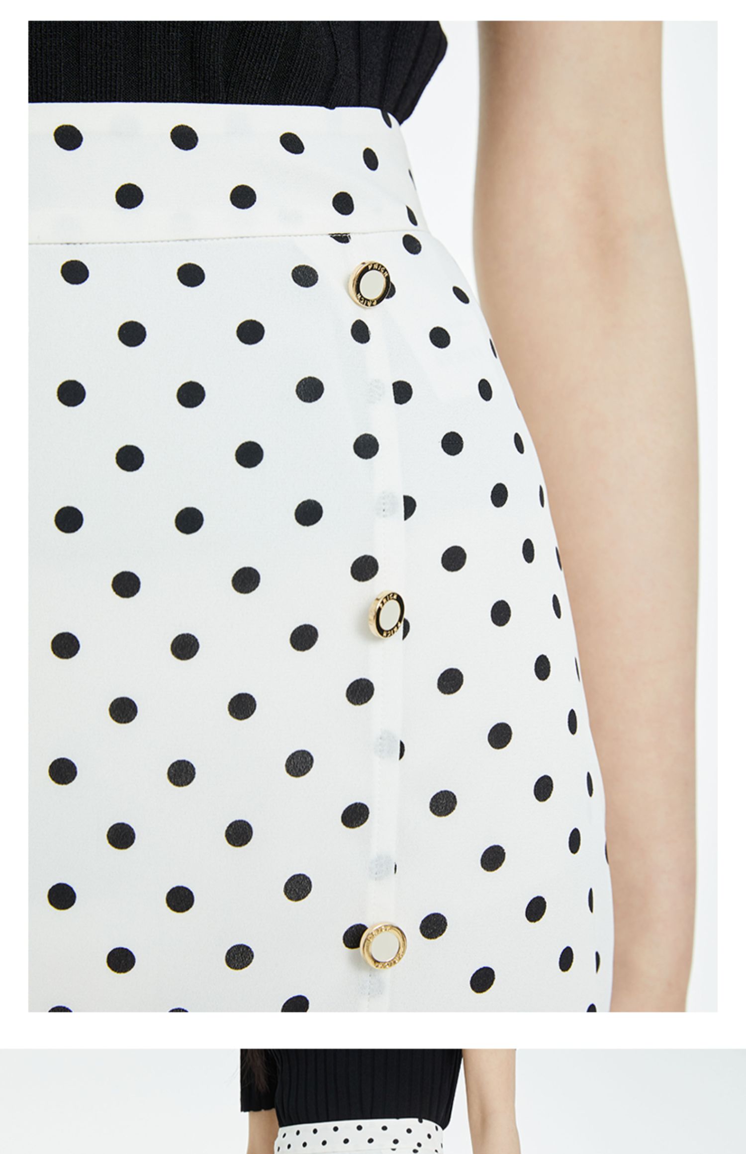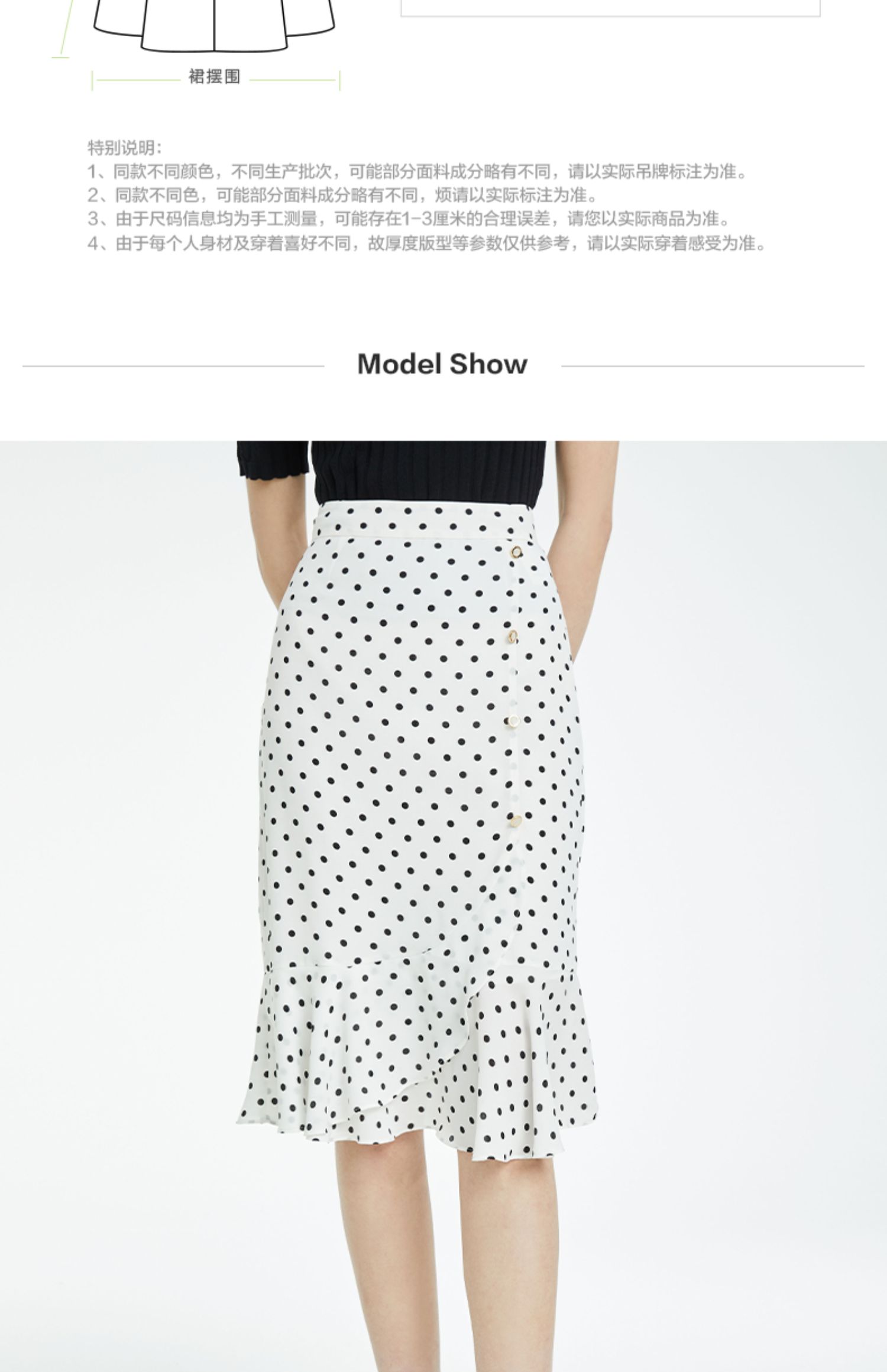 PRICH2022年夏季新款气质高腰A字职场通勤波点中长款鱼尾半身裙PRWHC6401X