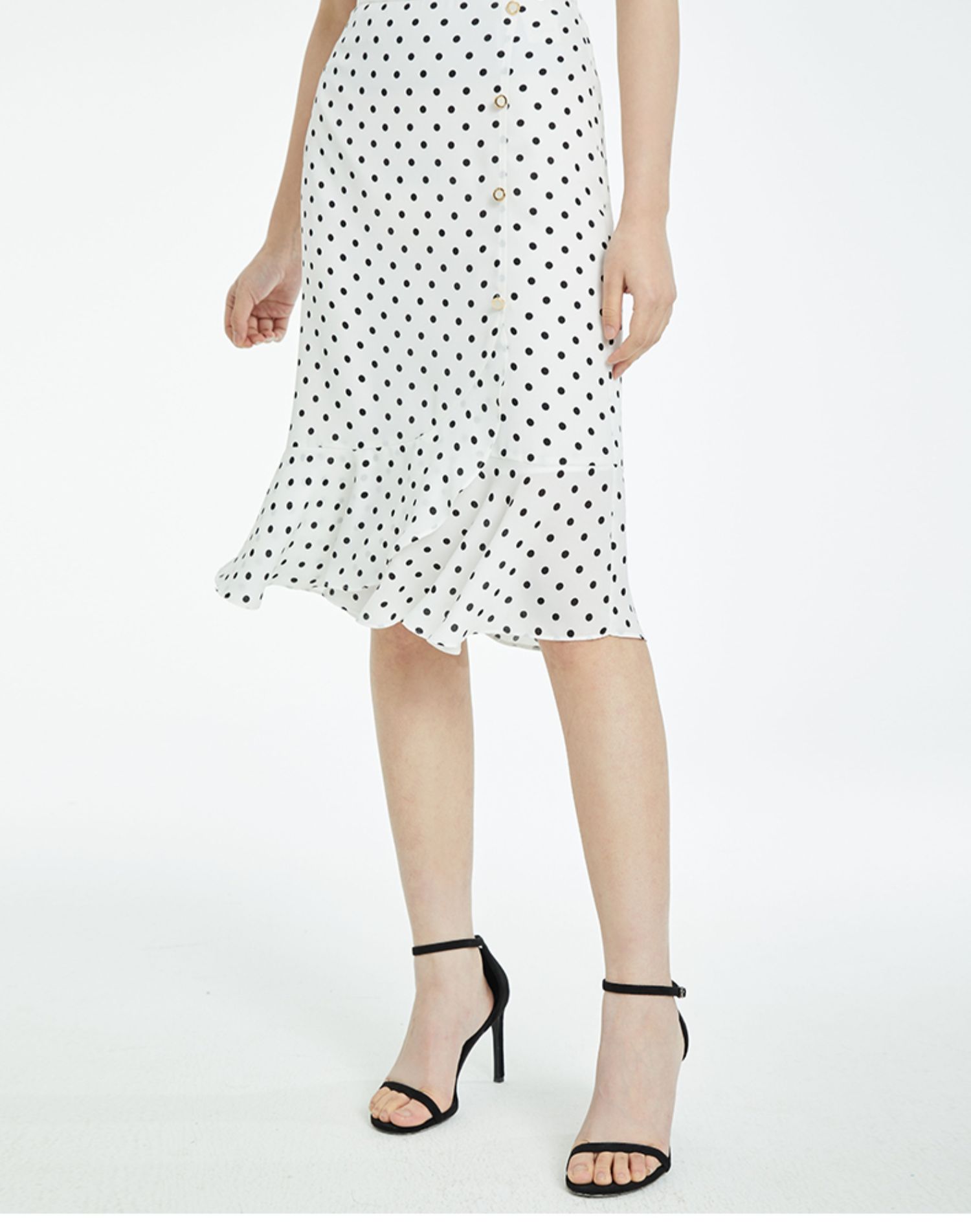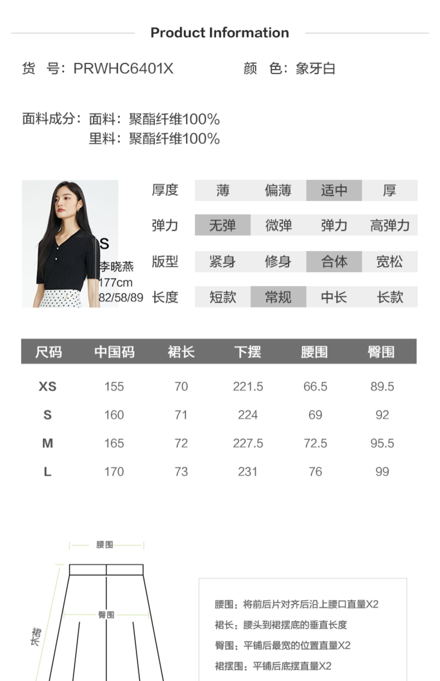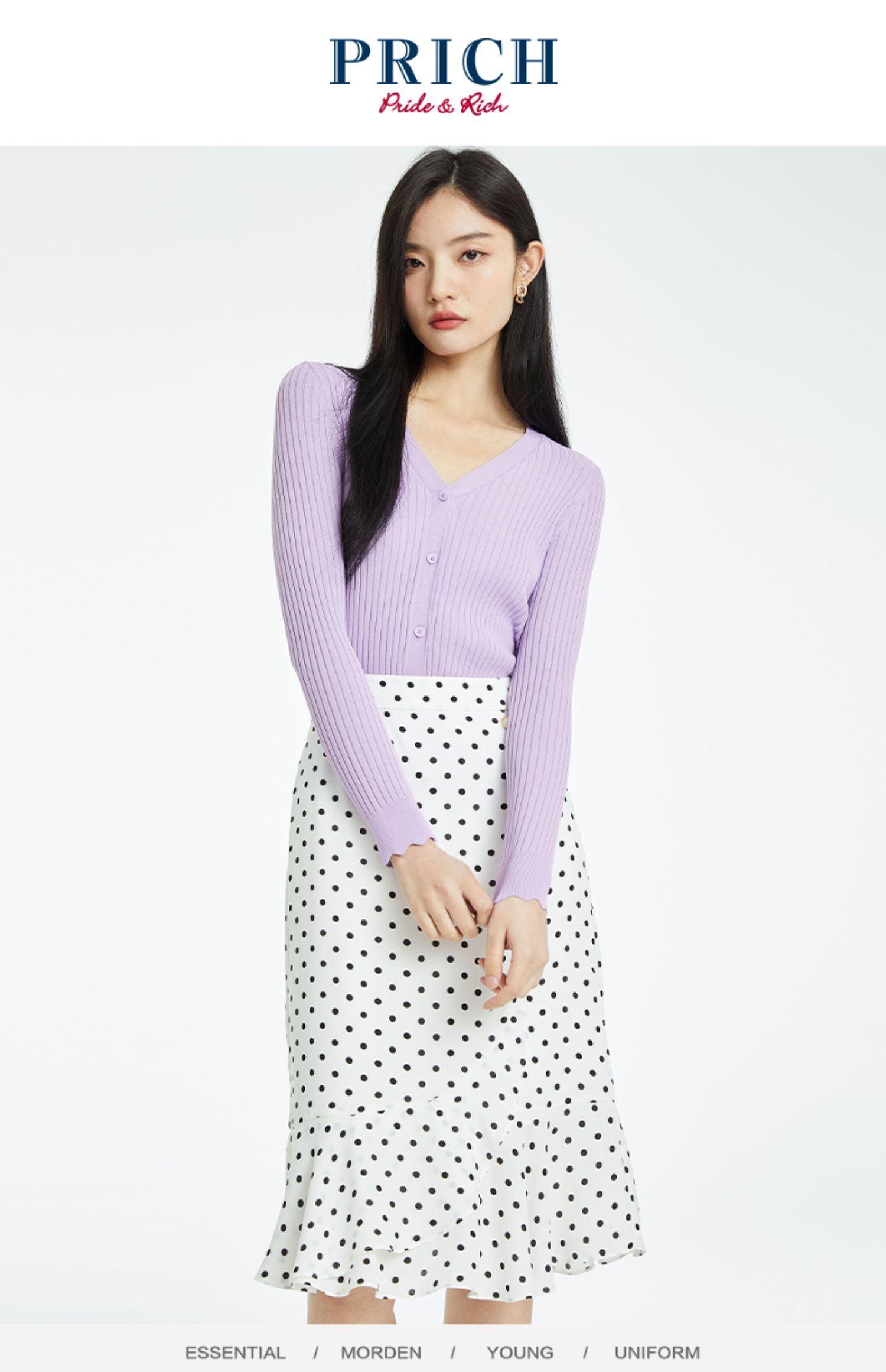PRICH2022年夏季新款气质高腰A字职场通勤波点中长款鱼尾半身裙PRWHC6401X