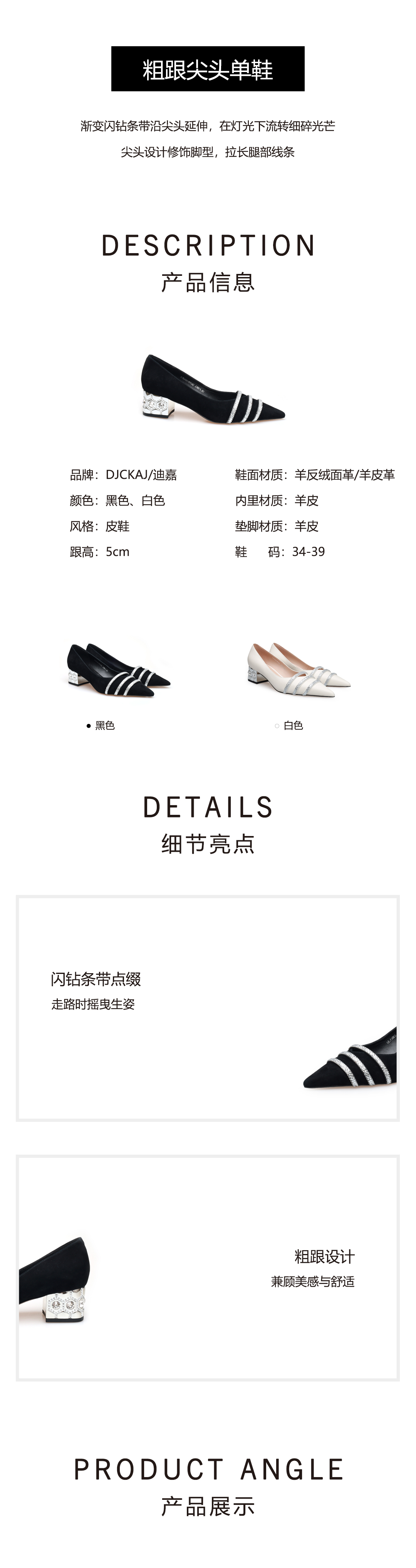 豪麟名鞋迪嘉女鞋皮鞋羊反绒面革DJKDA61WP002黑色
