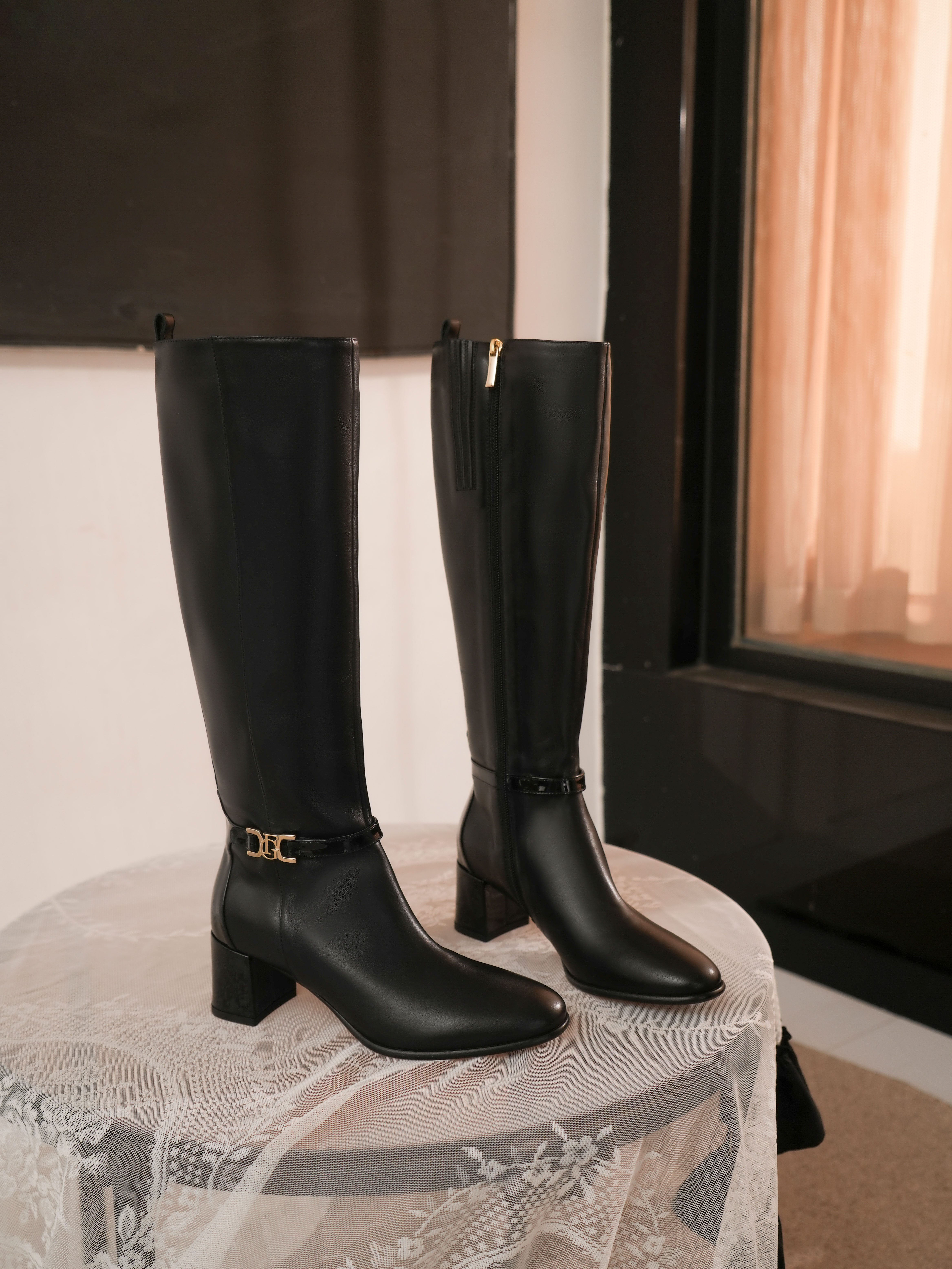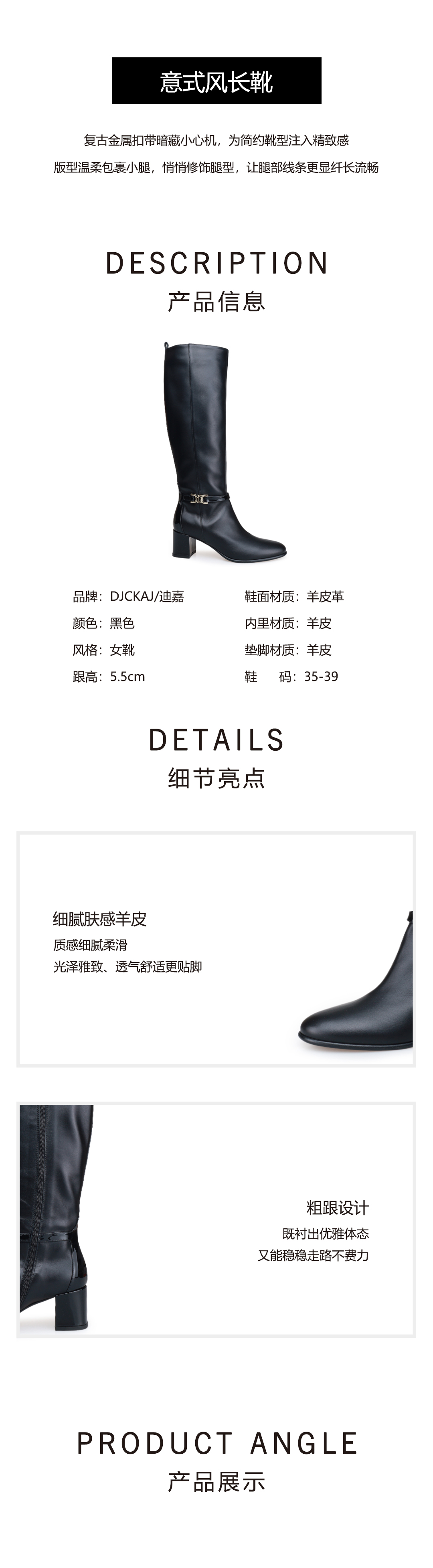 豪麟名鞋进口迪嘉女鞋长靴羊皮革W25270黑色