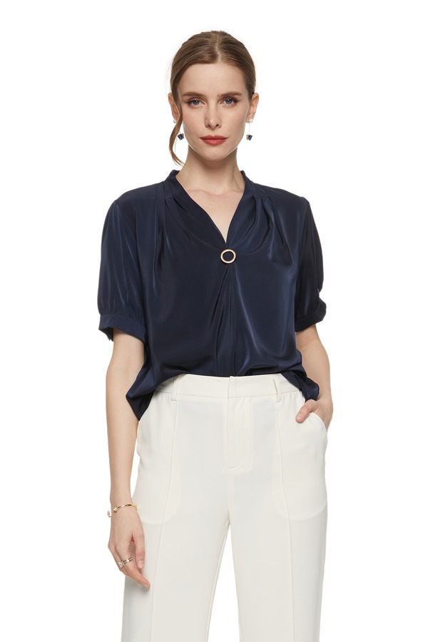 J+C 环扣饰海军蓝V领上衣 7559