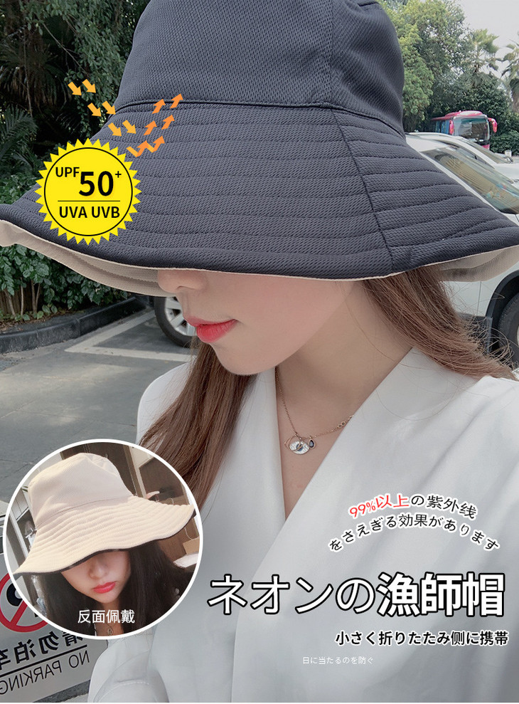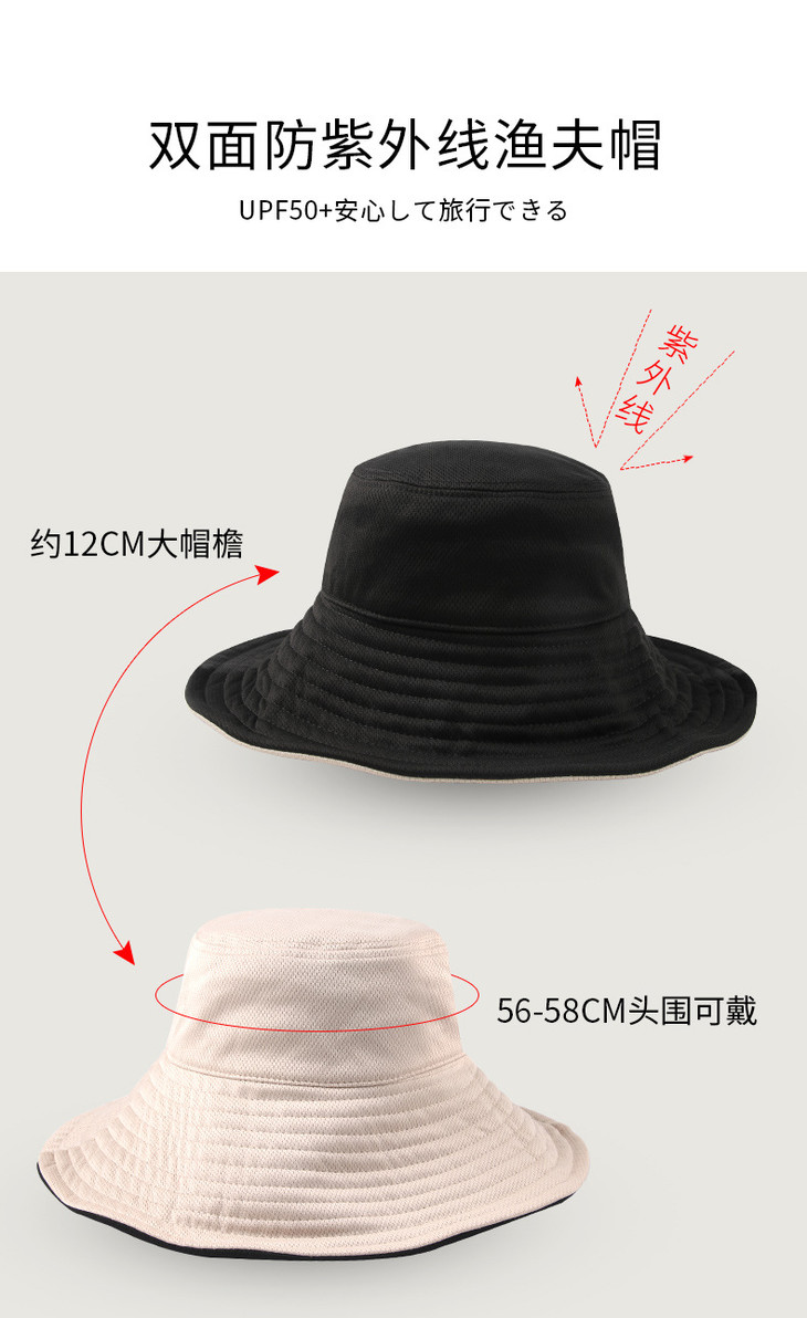 「日系uvcover渔夫帽!看得见的品质」uvcover双面渔夫帽 女防紫外线双面遮阳防晒帽户外太阳帽配饰