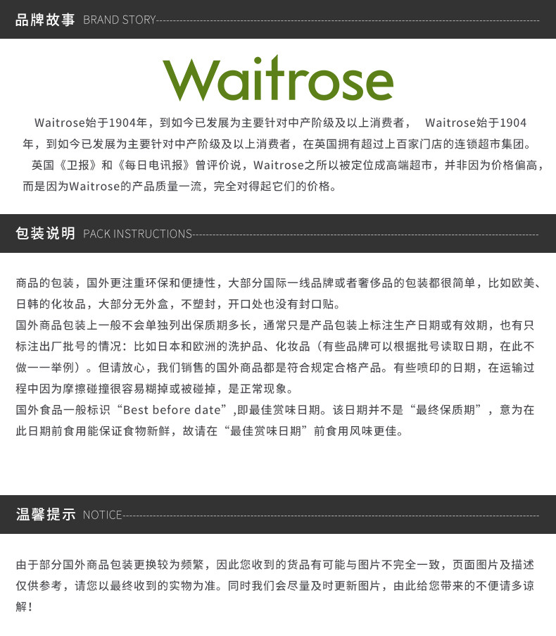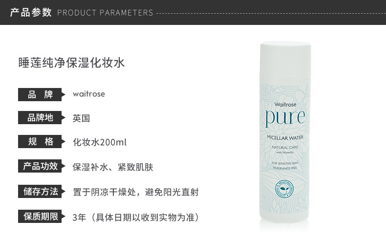 WAITROSE 纯净爽肤水 200ML 英国