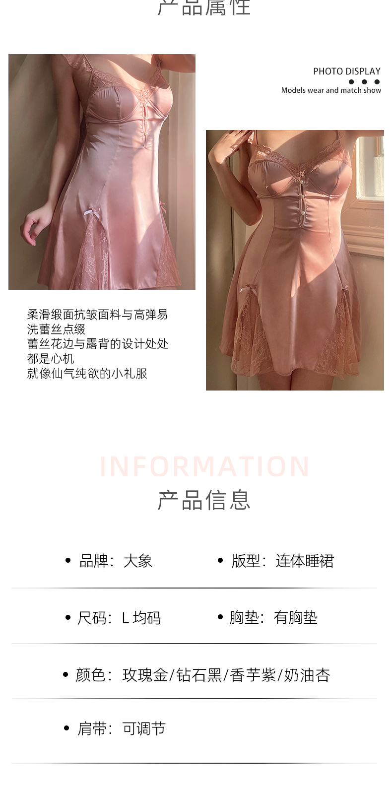 【双旦狂欢·钜惠来袭】【轻奢情趣内衣】大象轻奢蕾丝睡裙 低领深V 亲肤柔软 惹火露背