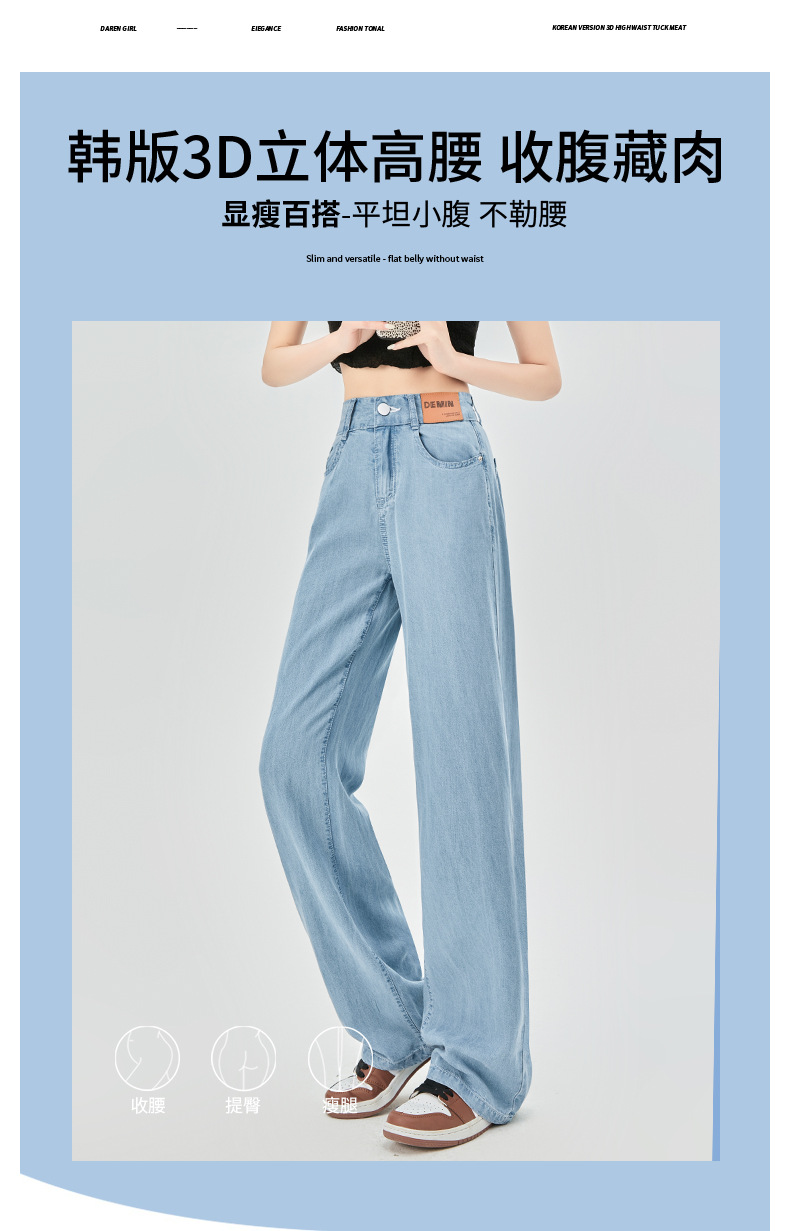 「冰爽天丝拖地裤!数款可选」天丝牛仔裤女2023新款夏季高腰显瘦小个子直筒垂感冰丝窄版阔腿裤