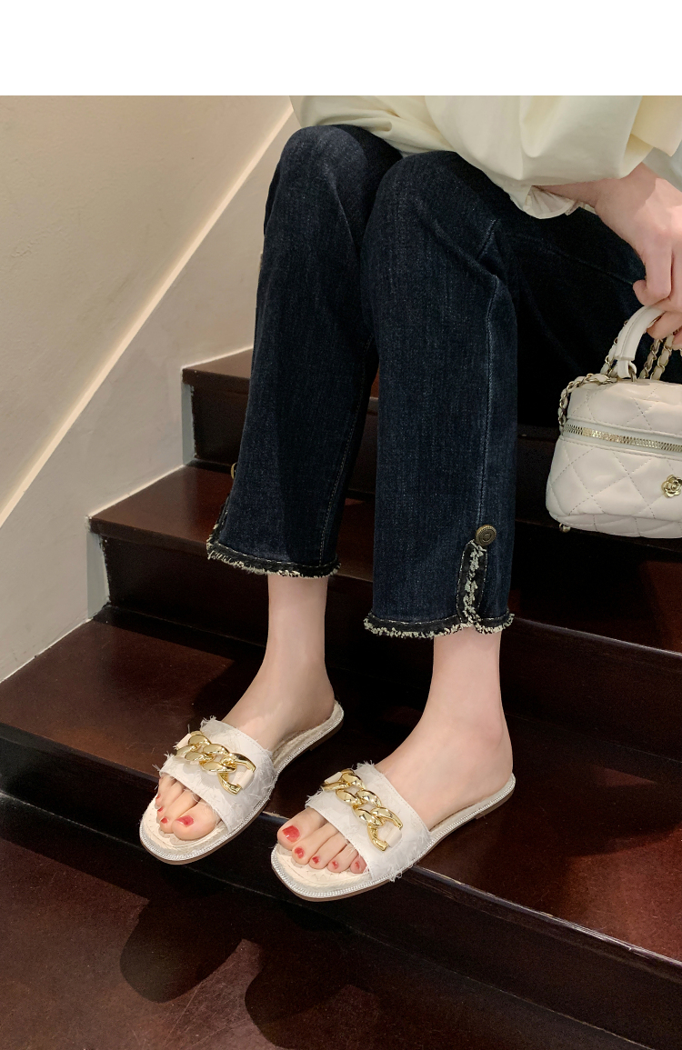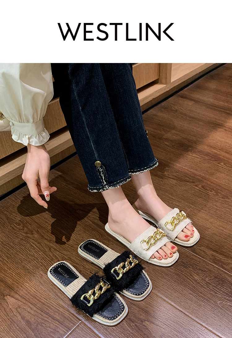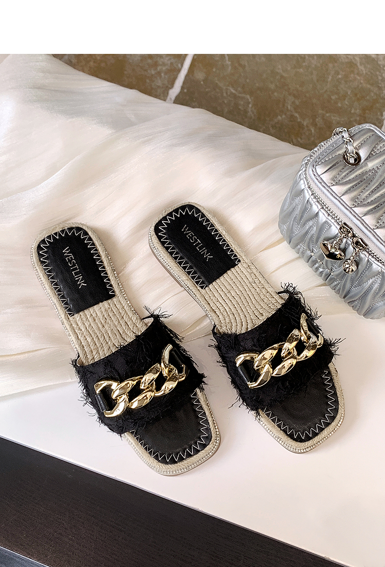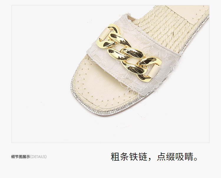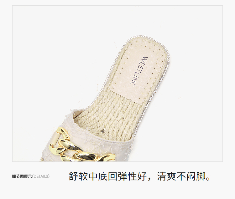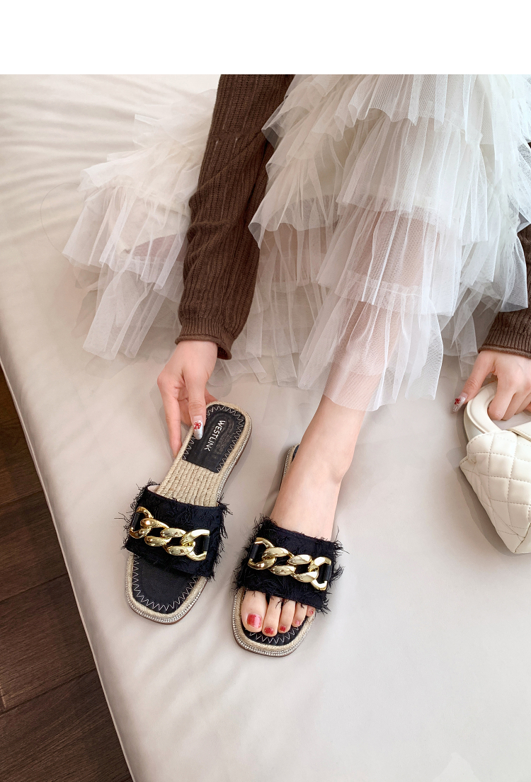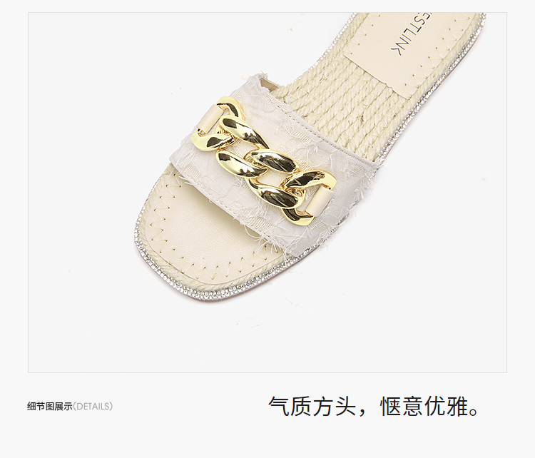 西遇超火外穿凉拖鞋女新款夏季百搭高级感法式草编平底一字拖V0056563