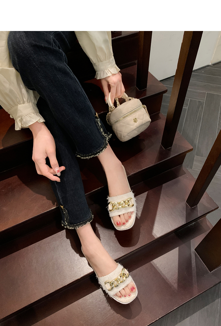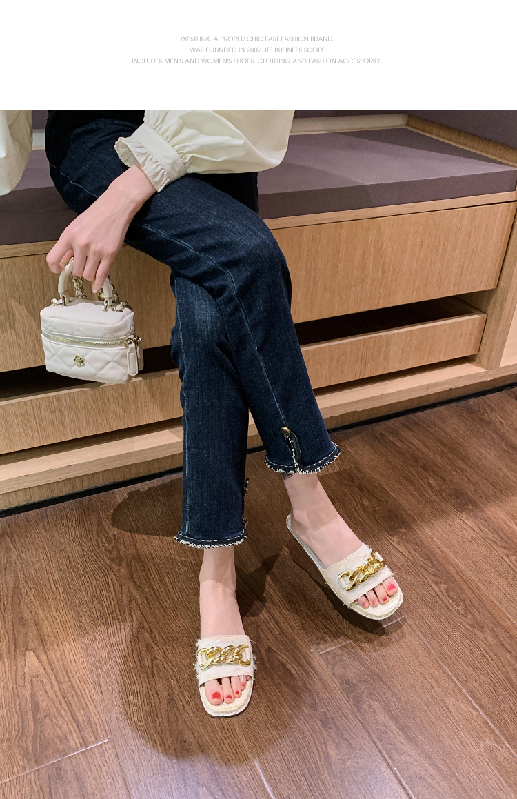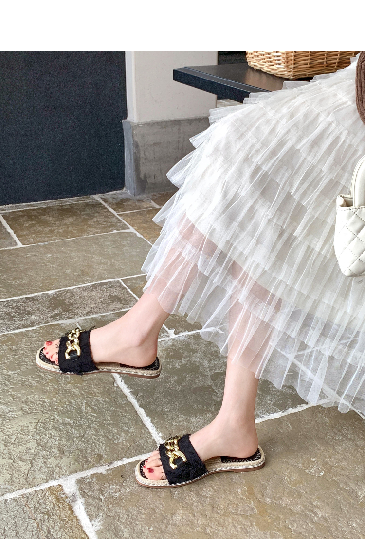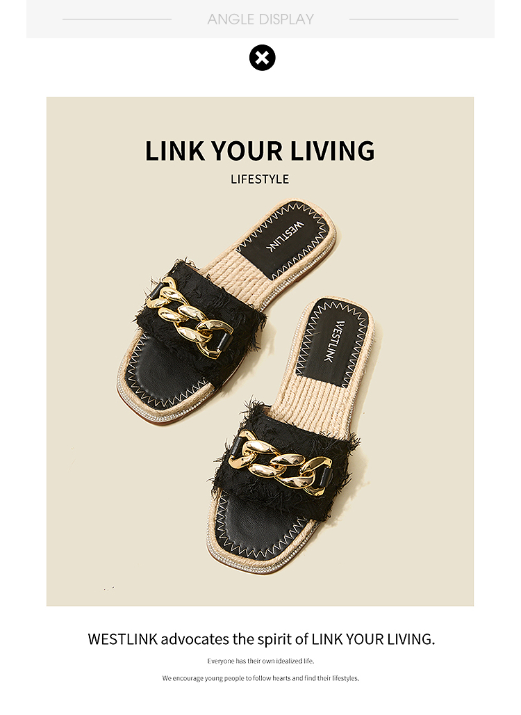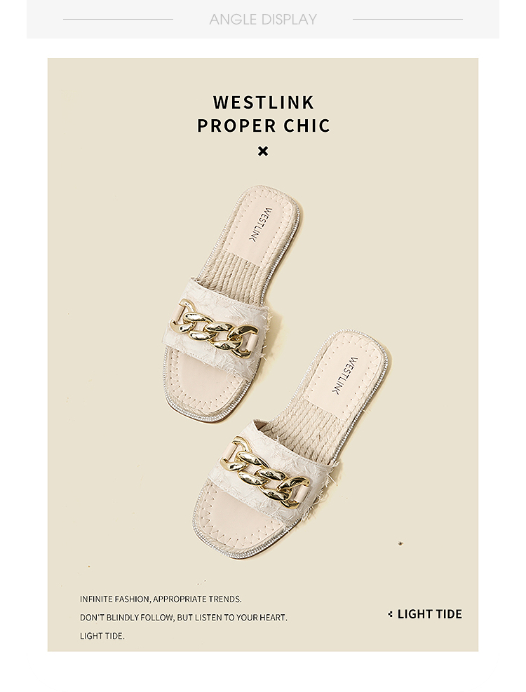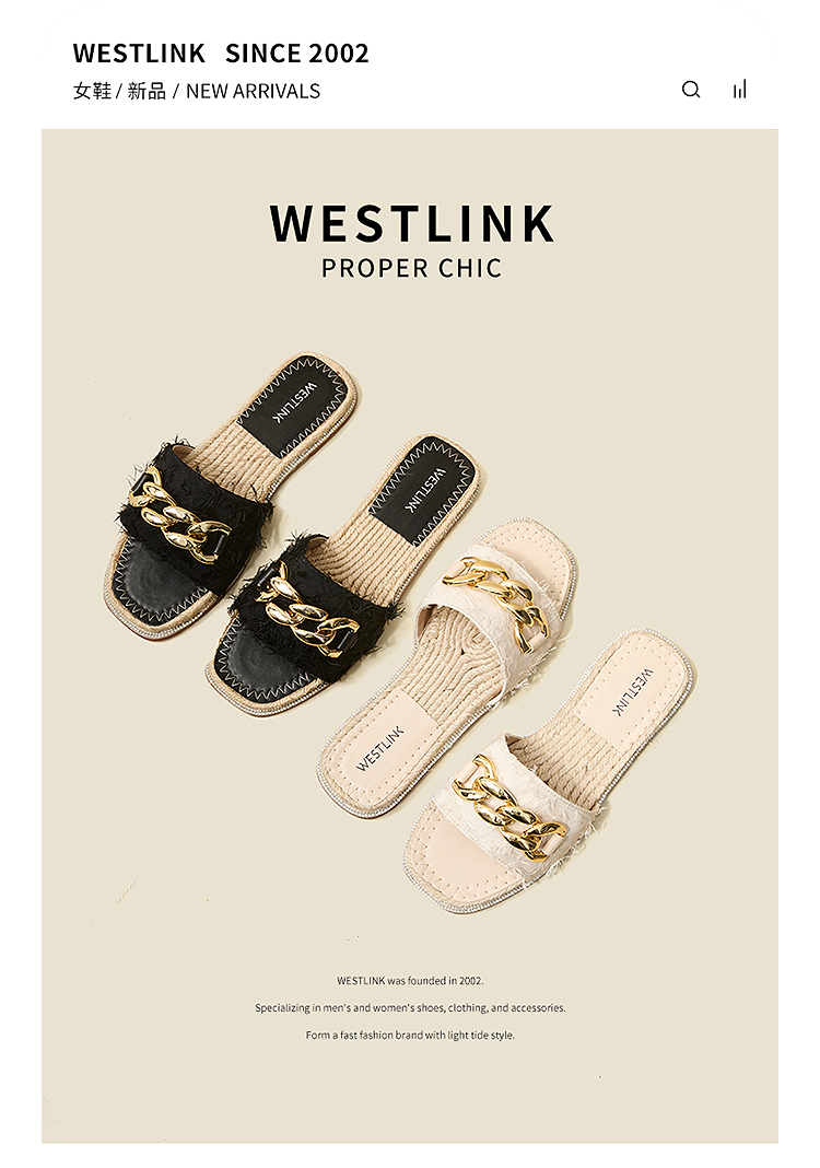 西遇超火外穿凉拖鞋女新款夏季百搭高级感法式草编平底一字拖V0056563