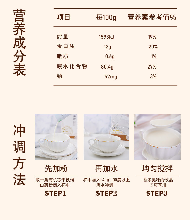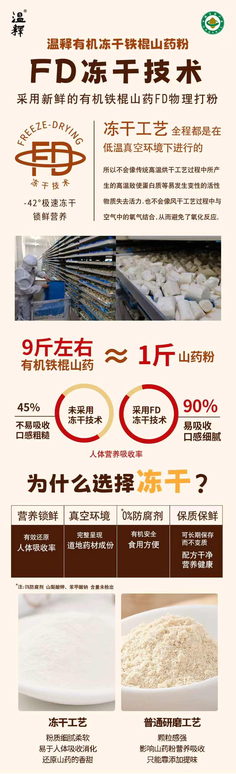有机铁棍山药粉(冻干粉) 180克/盒(18克*10条)